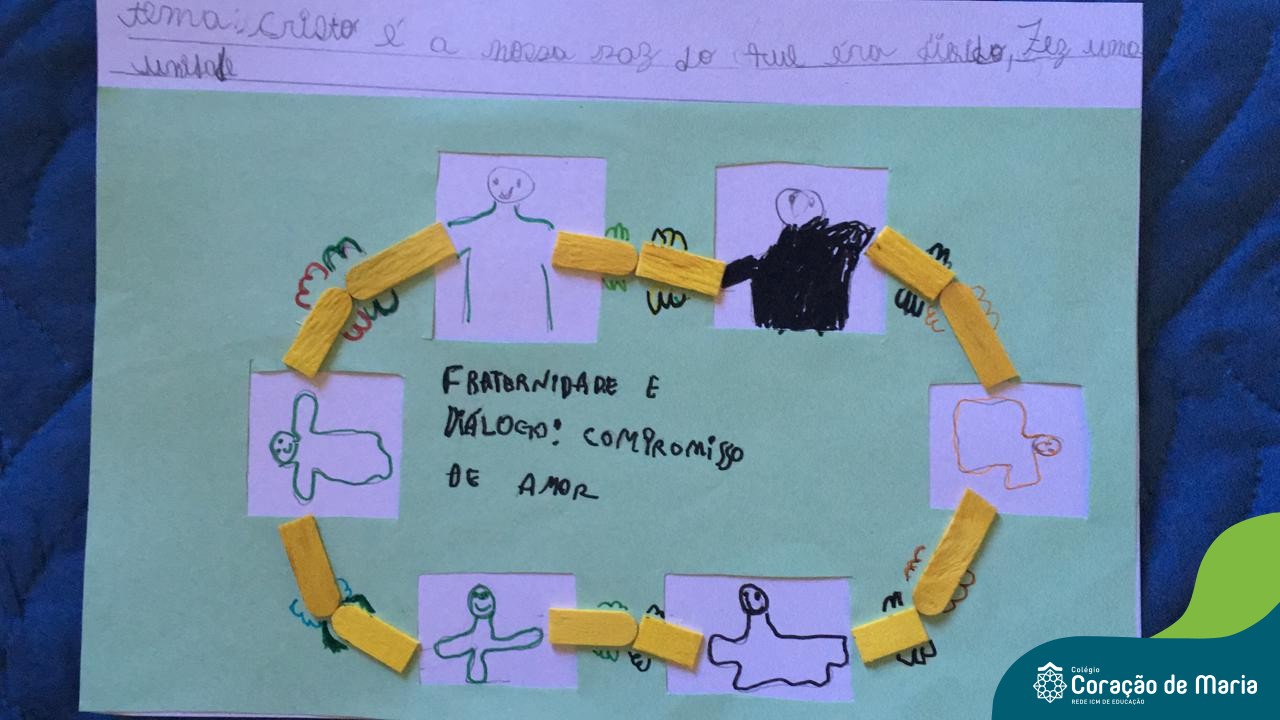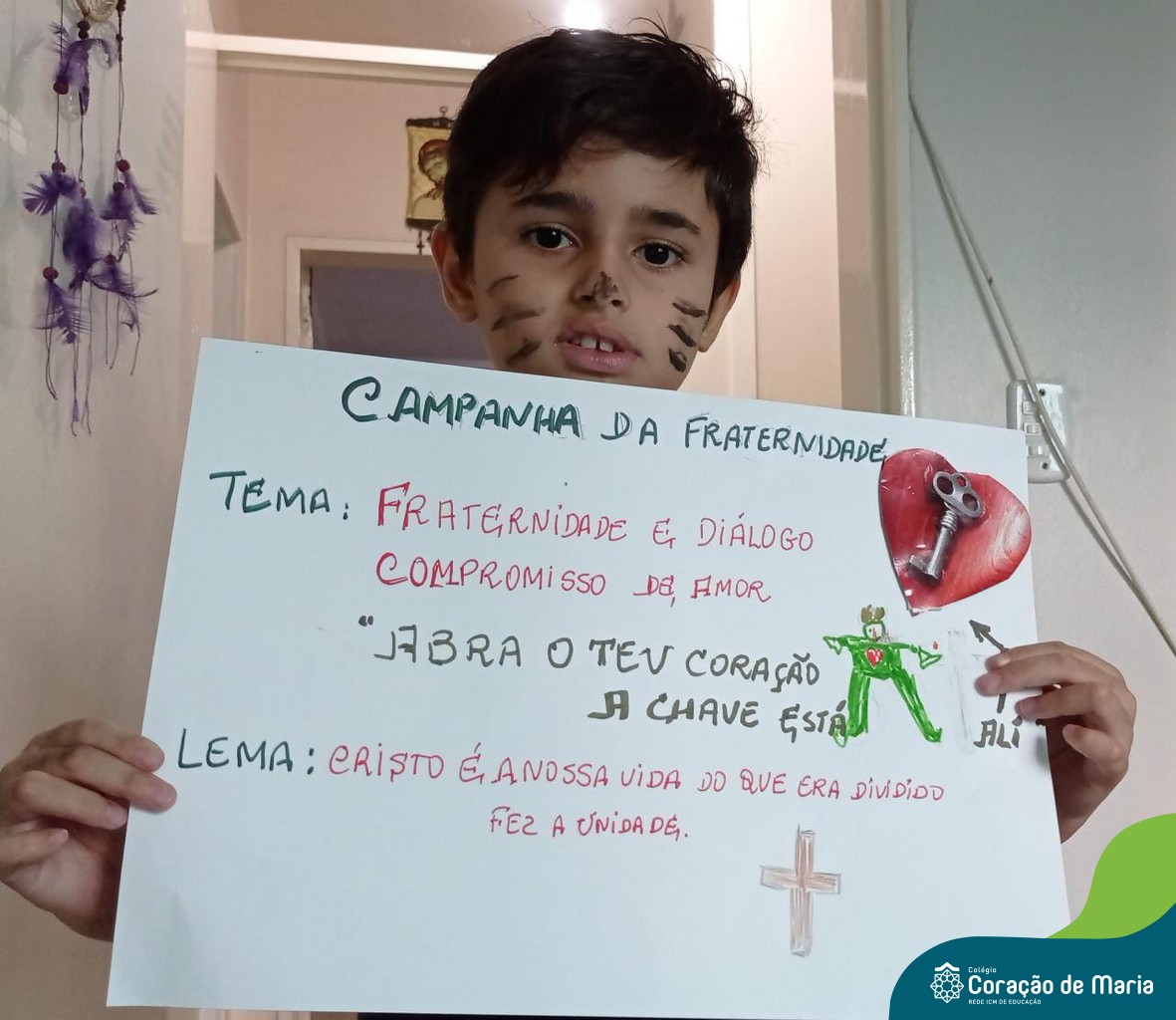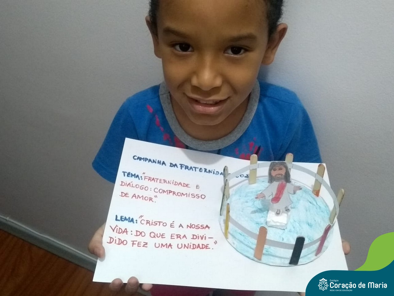 A Campanha da Fraternidade nos faz um convite desafiador: viver o diálogo como compromisso de amor. Os pequenos dos terceiros anos, em busca de mudanças reais e práticas no mundo, refletiram nas aulas sobre a CFE-2021 e a preservação da água como bem de todos. Confira os registros da releitura do cartaz da Campanha da Fraternidade e um trabalho com gelatina para ilustrar as águas do nosso Planeta Azul.