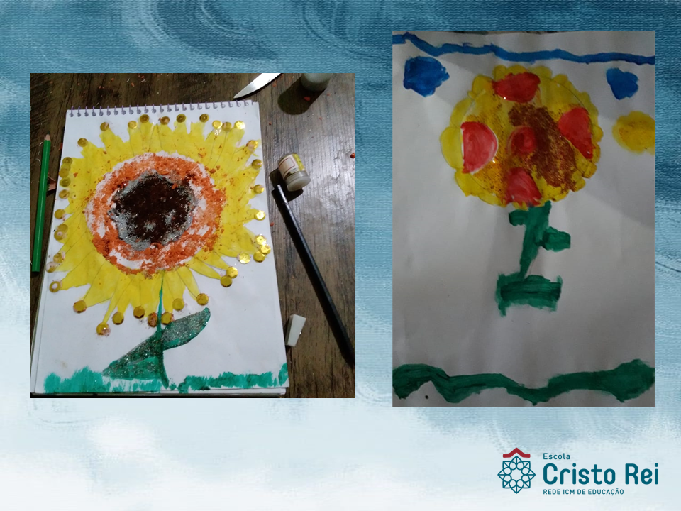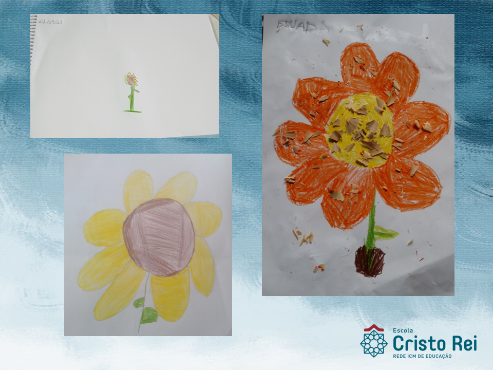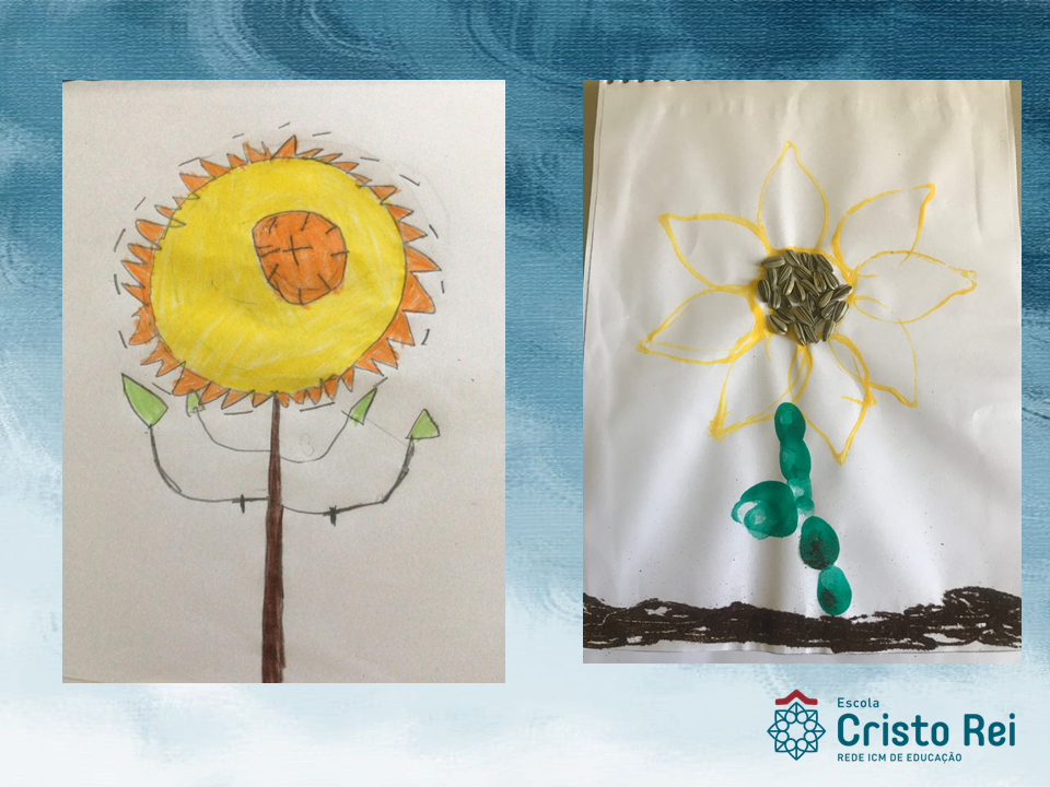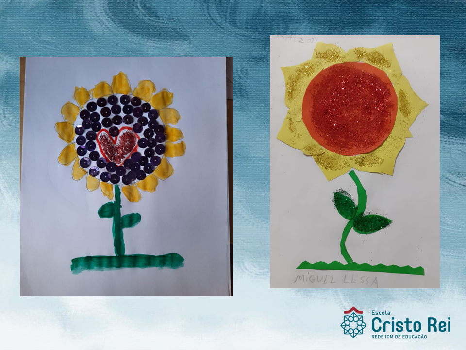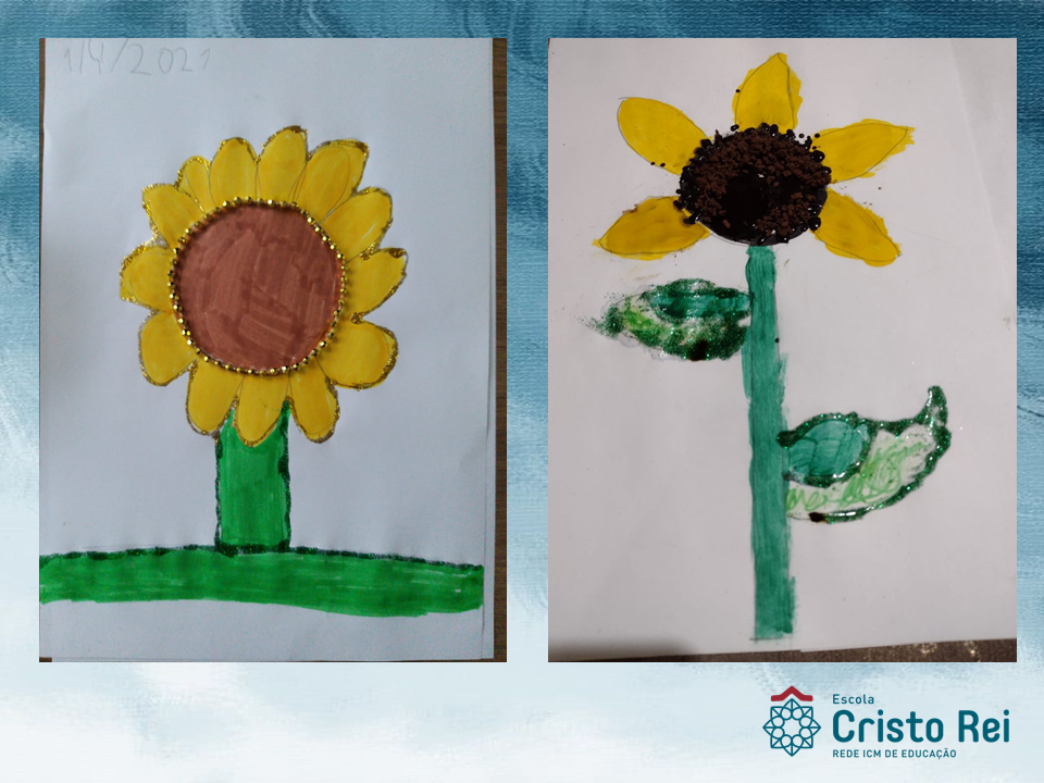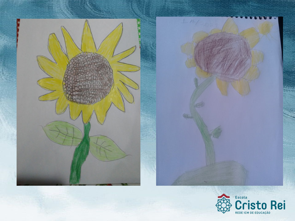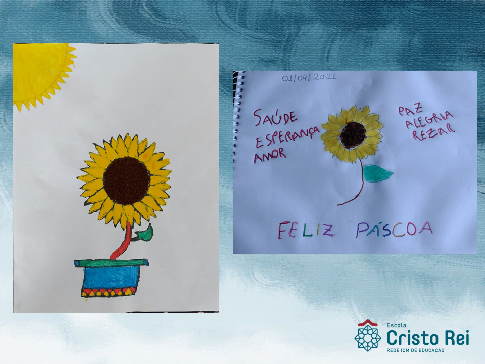 Após trabalhar o verdadeiro significado da Páscoa , os alunos do 2° ano desenharam um dos símbolos dessa data. O girassol representa a busca da luz que é Jesus.😍🙏