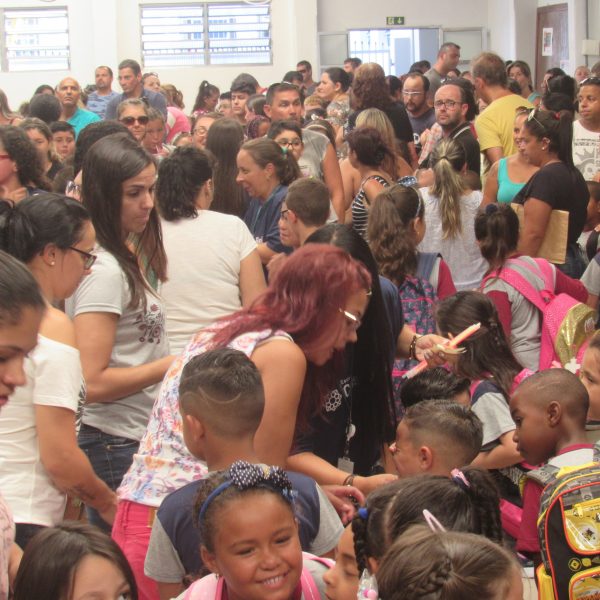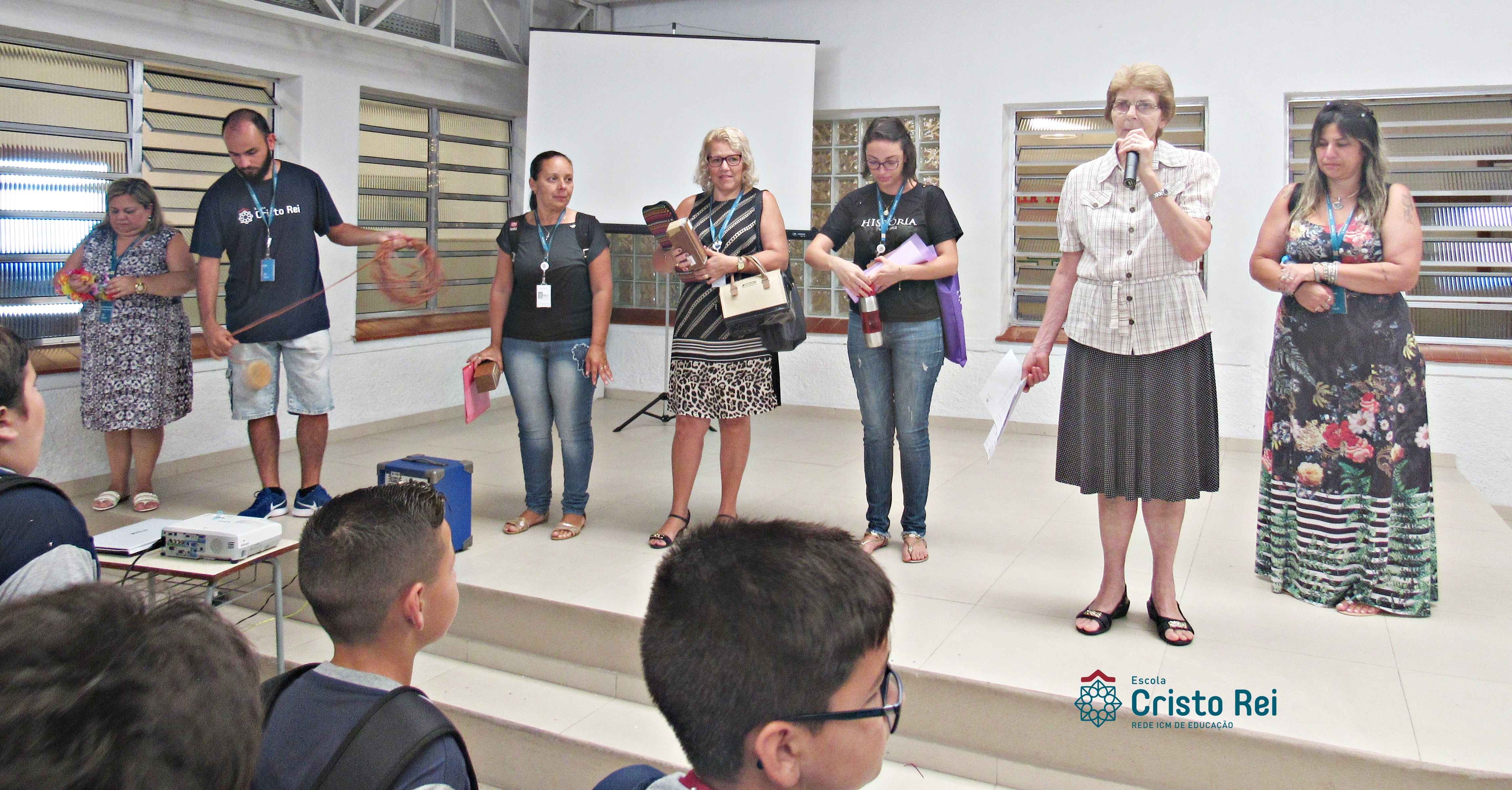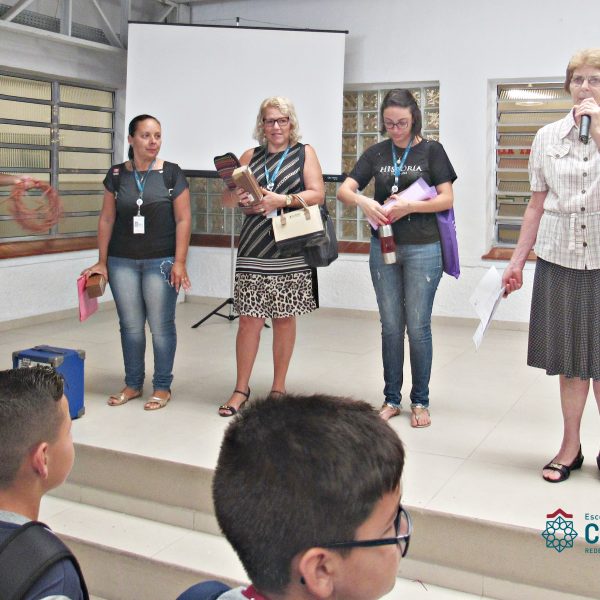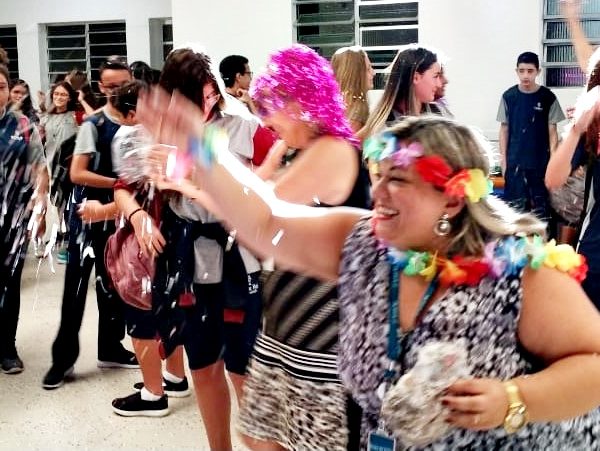 Abertura do ano letivo de 2019 pela Diretora Serena Reichert que acolheu aos alunos dando as boas-vindas e apresentando a vice-diretora Cristiane Bazarelli Chagas e a coordenadora dos Anos Finais Sandra Iara dos Santos. Após os professores caracterizados recepcionaram seus alunos com uma chuva de confetes ao som de música.