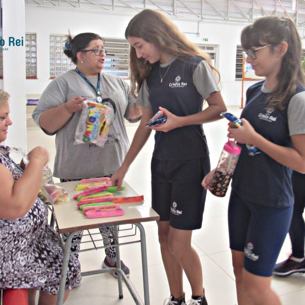 A juventude ICM convidou os alunos para participarem da Campanha de Arrecadação de MaterialEscolar que serão doados para as entidades educacionais mais necessitadas. Para concluir esse momento especial o professor Diego Martins da Pastoral da Educação oportunizou uma reflexão sobre o tema gratidão.