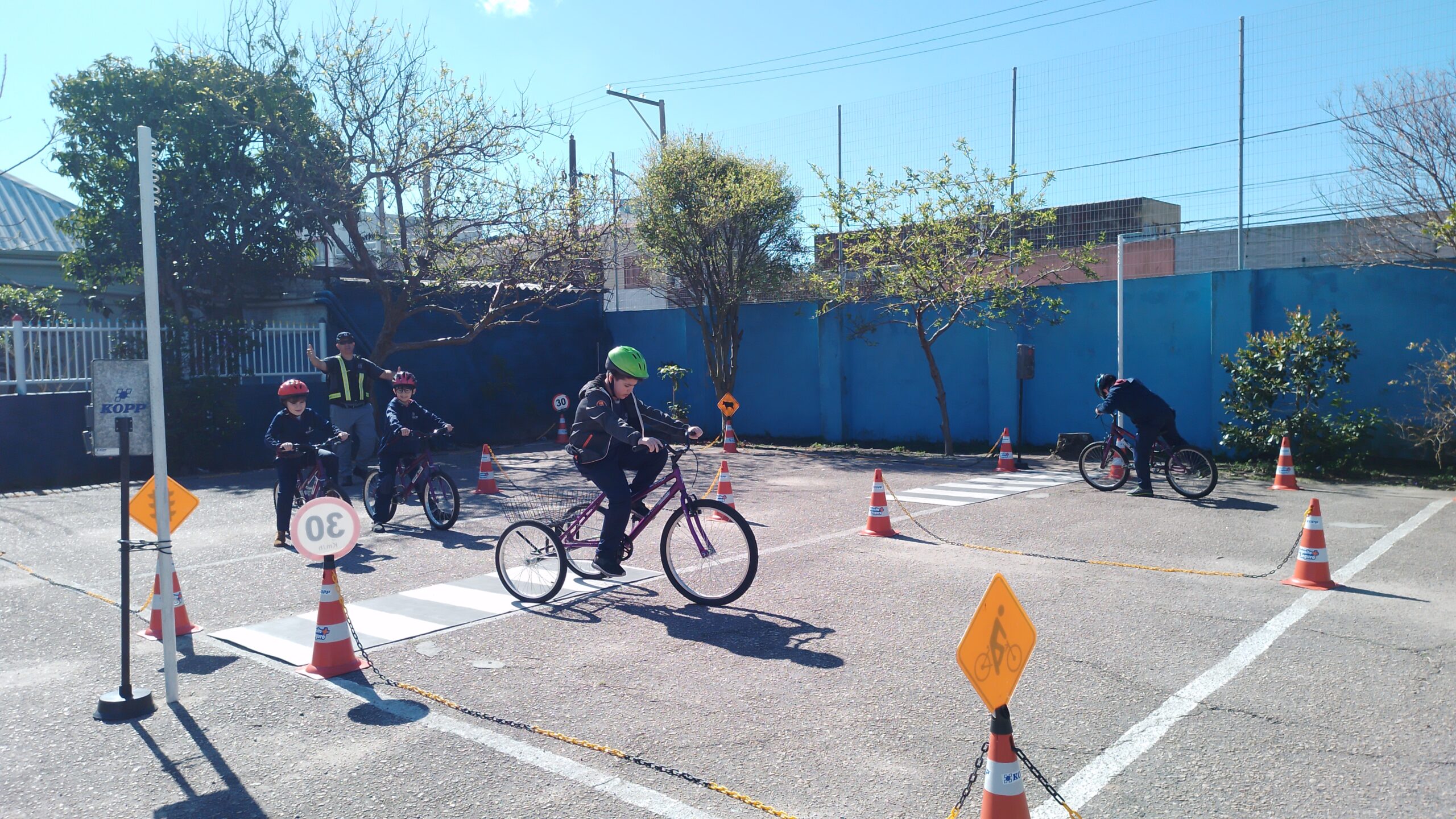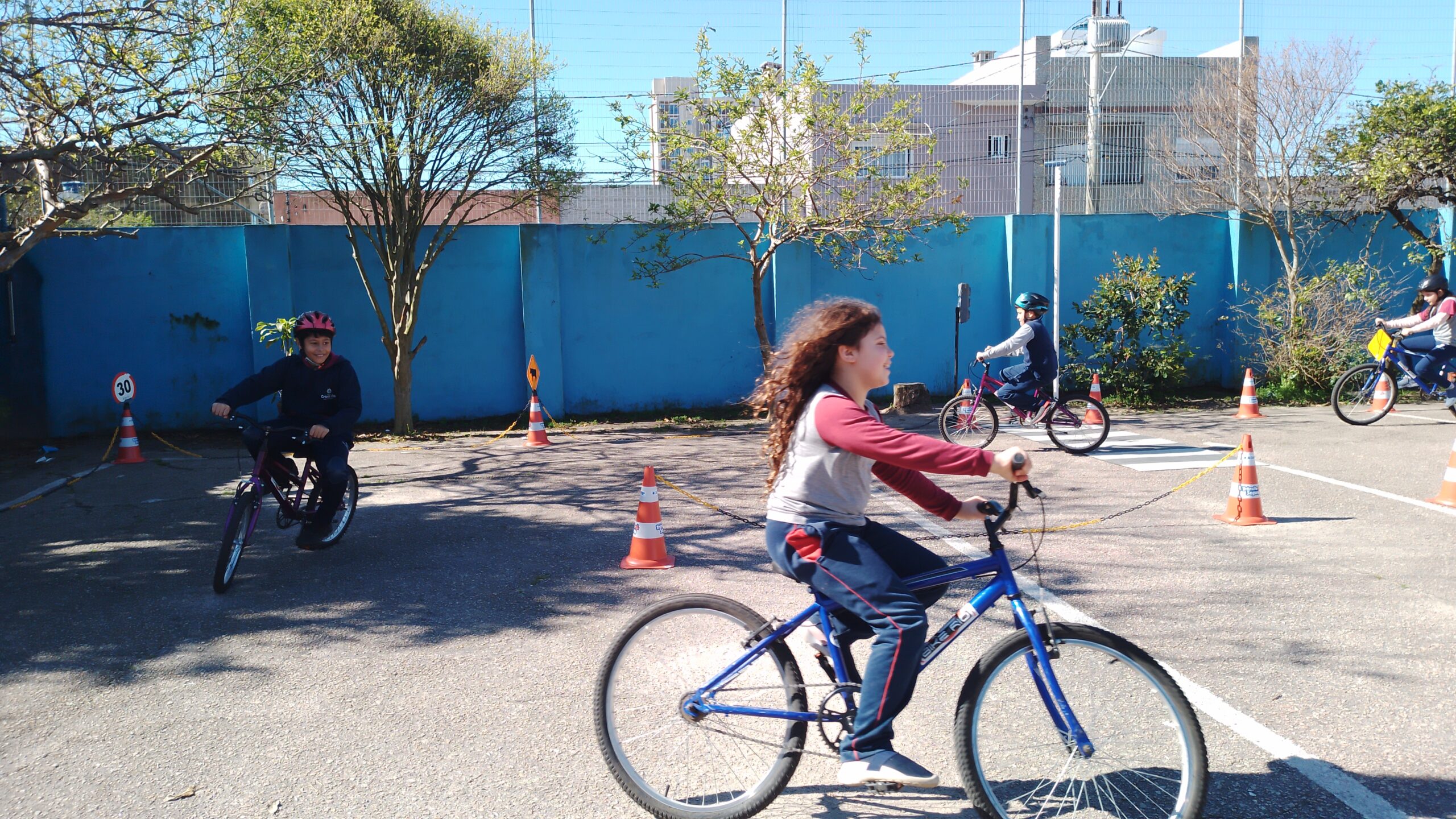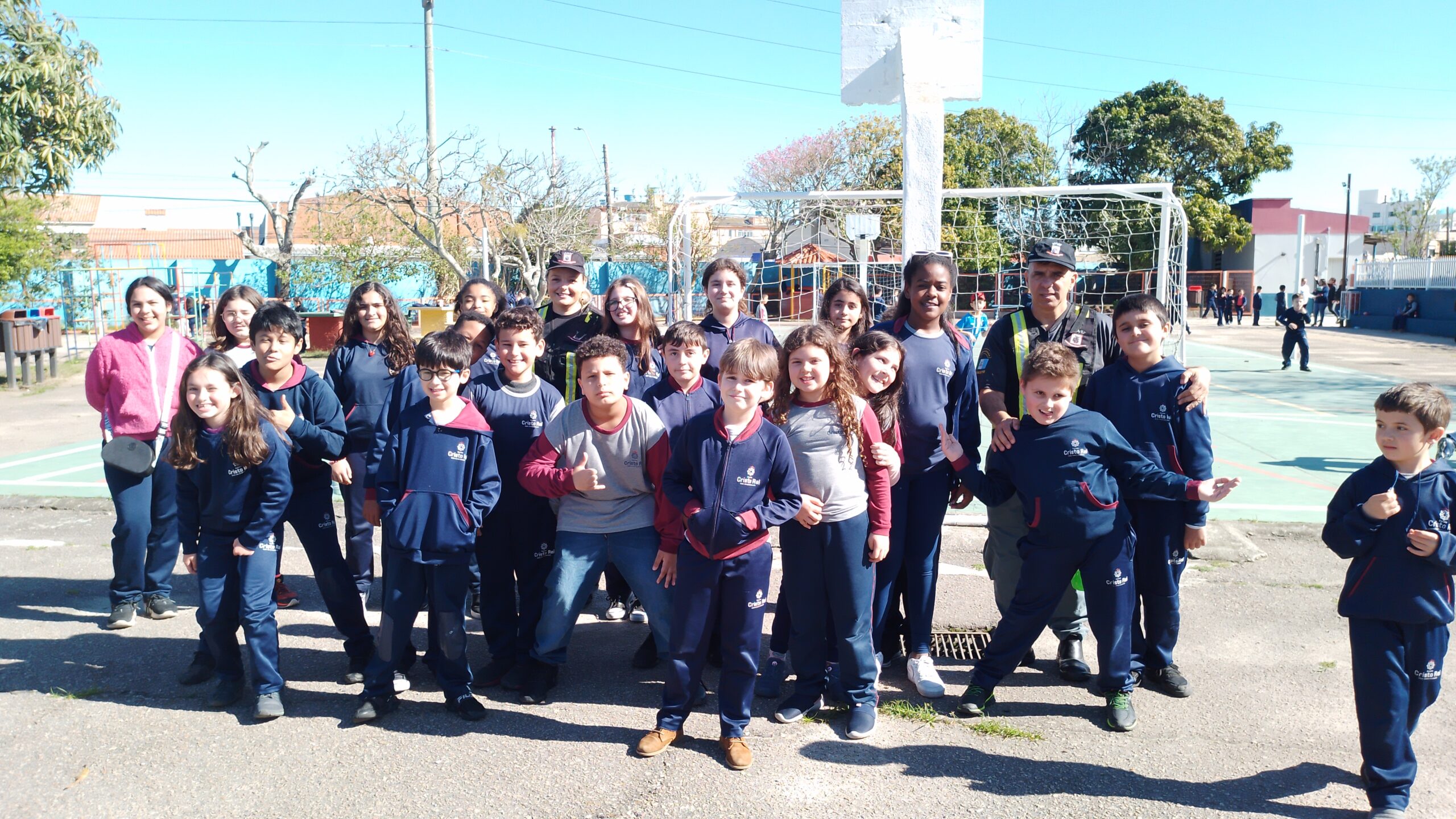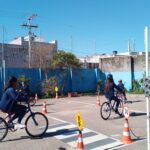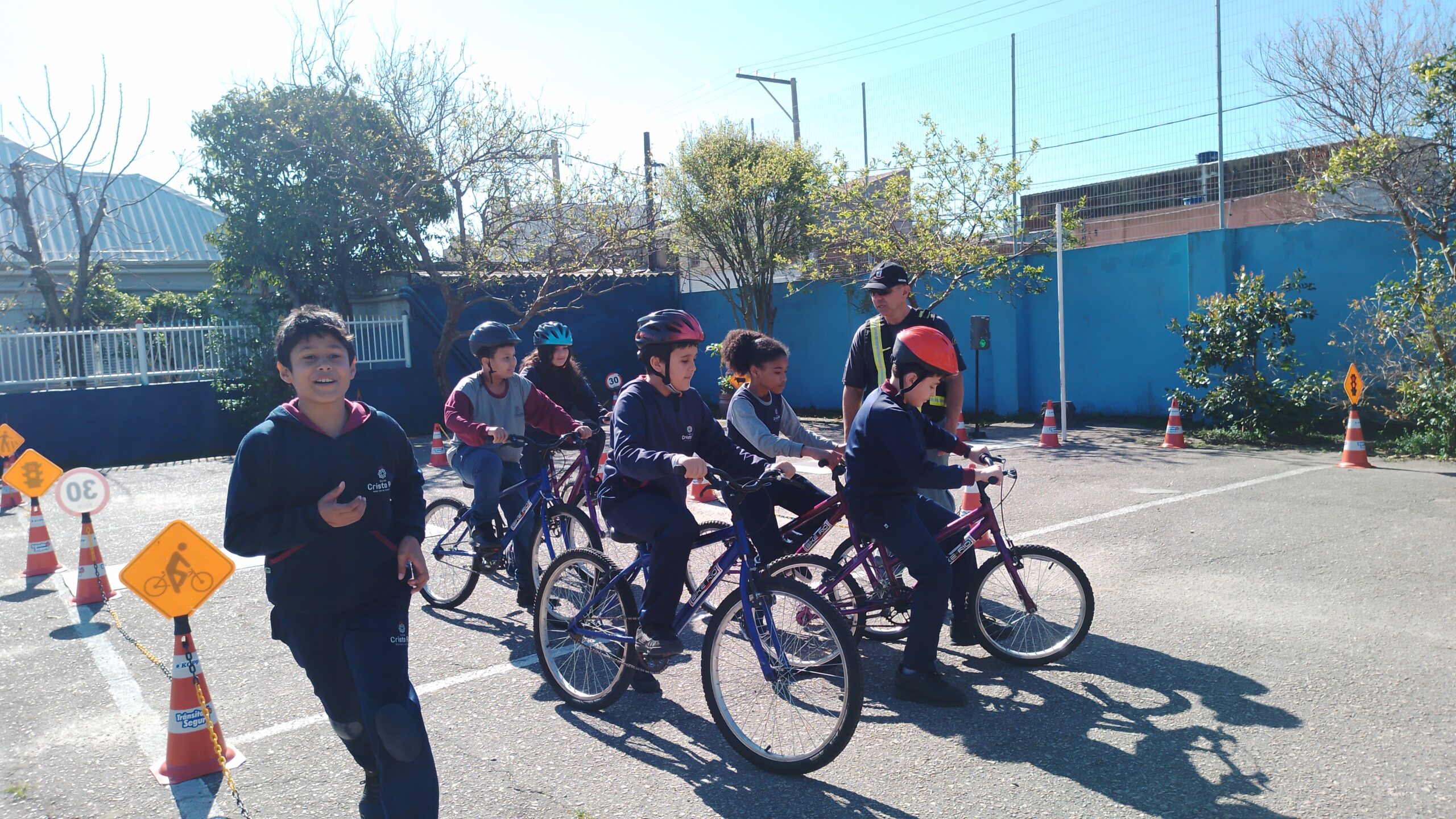 Os estudantes da Escola Cristo Rei participaram das atividades no pátio da escola onde puderam experimentar a parte lúdica do cotidiano do trânsito tornando-se pessoas conscientes na Educação do trânsito.