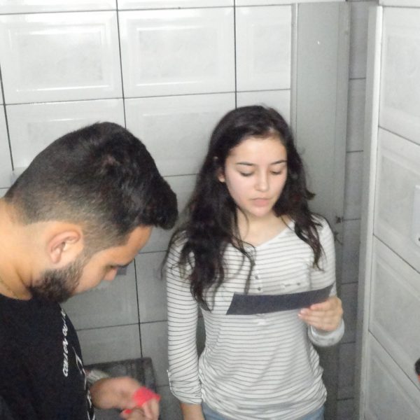 Houve empenho e interesse dos alunos das turmas 81 e 82 para descobrirem a sequência dos personagens que contavam a história de Bárbara.