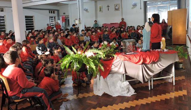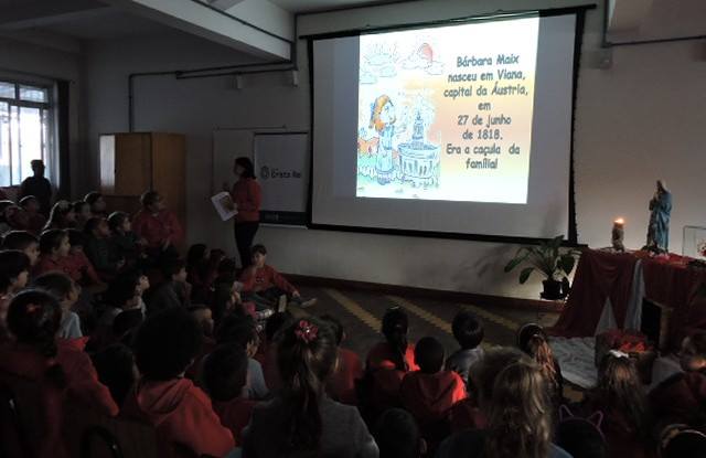 O turno da tarde, alunos da Educação Infantil ao 5º ano, celebraram a Abertura do Ano Bicentenário de Nascimento de Bárbara Maix, Fundadora da Congregação das Irmãs do Imaculado Coração de Maria, com vibração motivados pelas professoras sob a orientação da coordenadora Denise que com muito carinho e afeto conduziu esse momento.