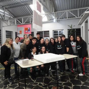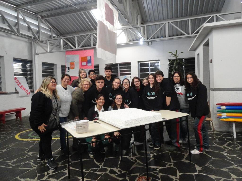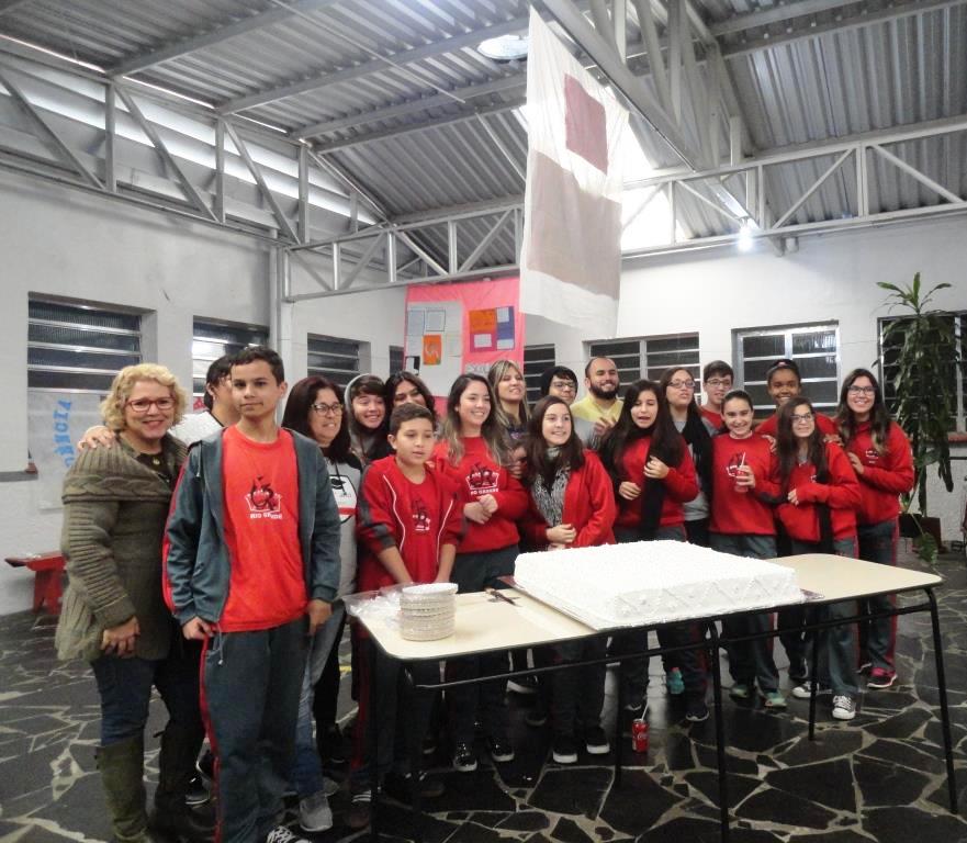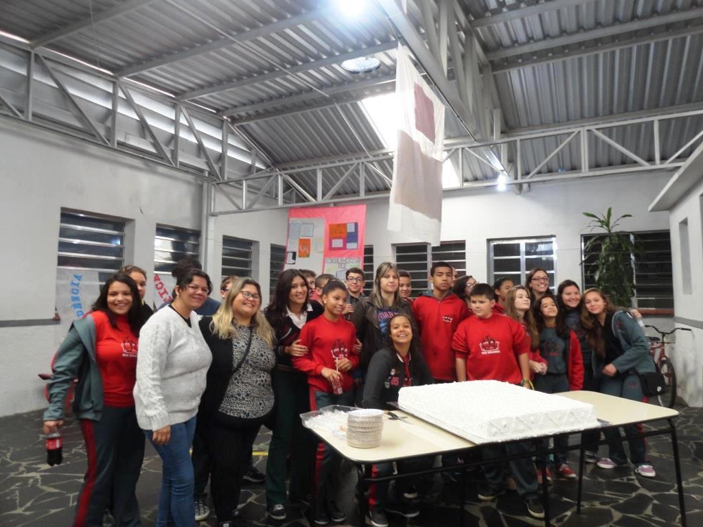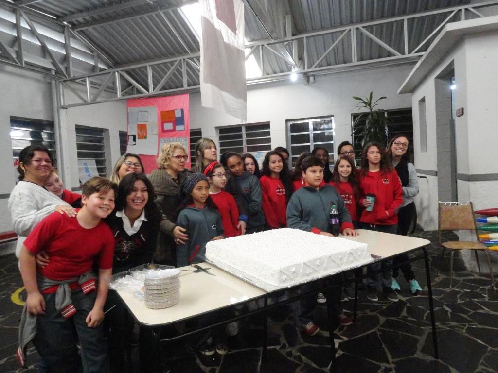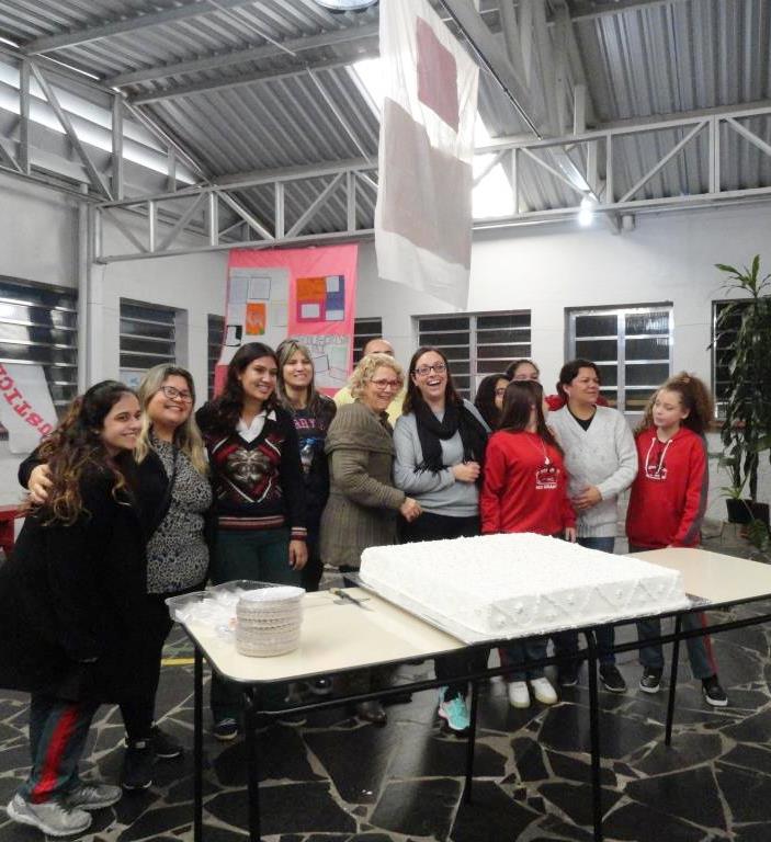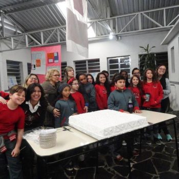 Para concluir esta etapa de pesquisas na terça-feira dia 27 de junho, data de seu nascimento, realizamos com os alunos uma manhã diferenciada celebrando a abertura do Ano Bicentenário de Nascimento de Bárbara Maix fundadora da Congregação das Irmãs do Imaculado Coração de Maria. Deu-se início com a celebração da Missa presidida pelo Pe. Adriano Carminatti e, posteriormente, os alunos do 9º ano apresentaram seus documentários e homenagem aos professores, funcionários e direção da escola. Em seguida, prestigiamos as histórias em quadrinhos e os banners expostos no pátio coberto confeccionados pelos alunos dos 6º, 7º e 8º anos. Após a reflexão dos trabalhos apresentados foi oferecido aos alunos, professores e funcionários o bolo de aniversário.