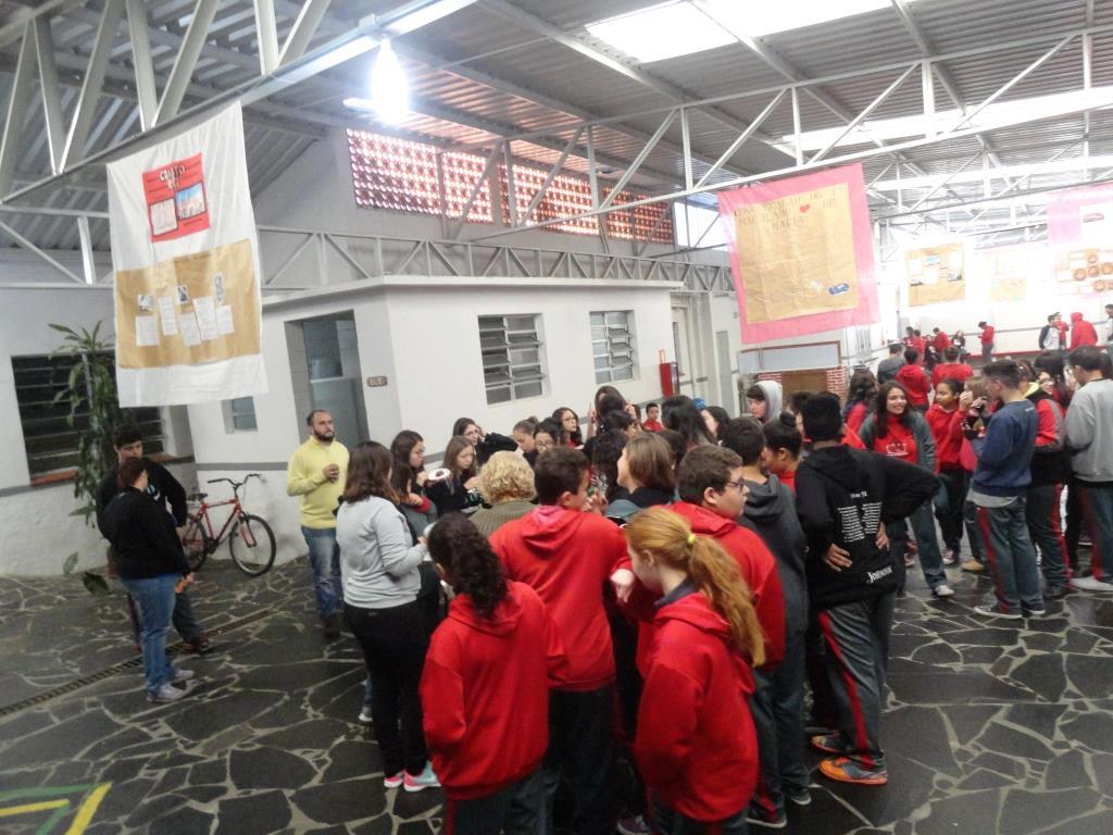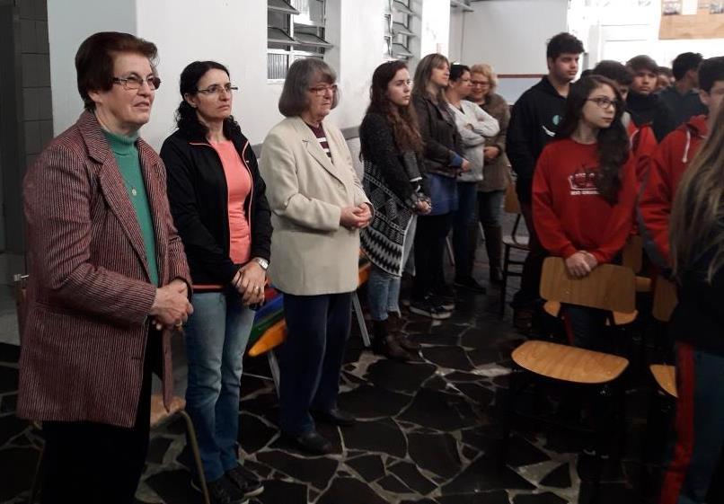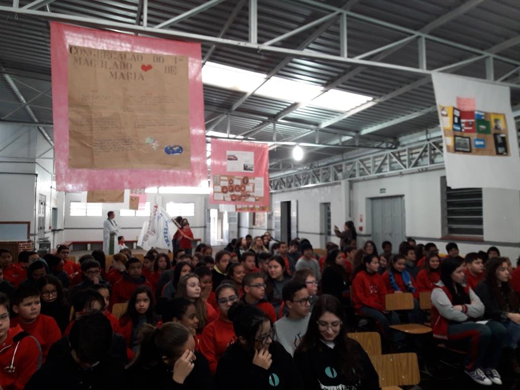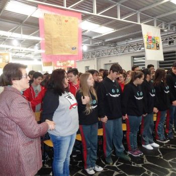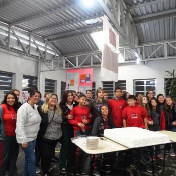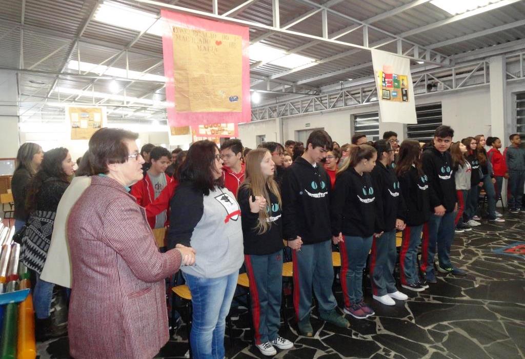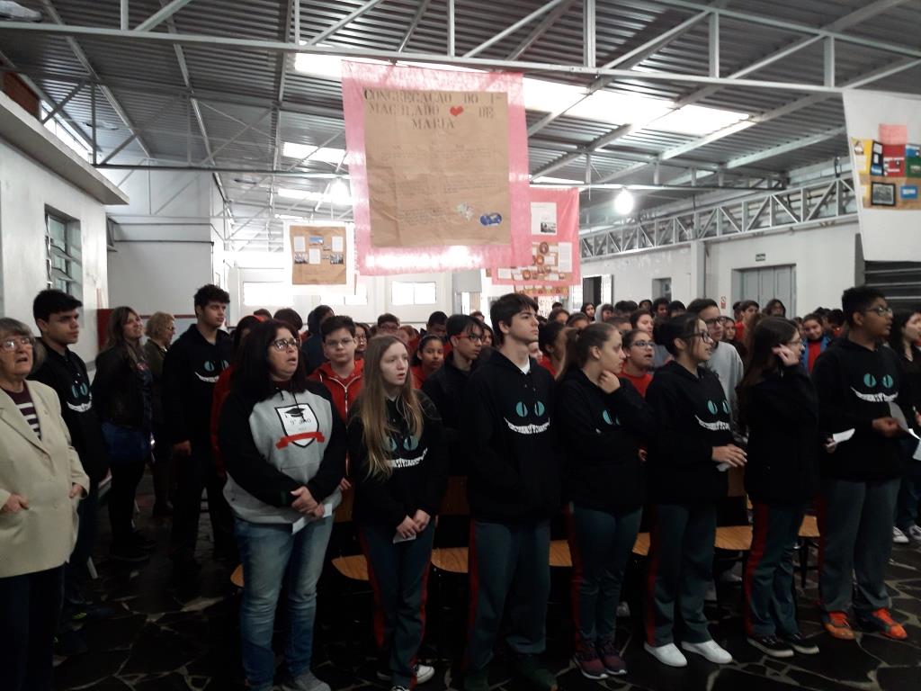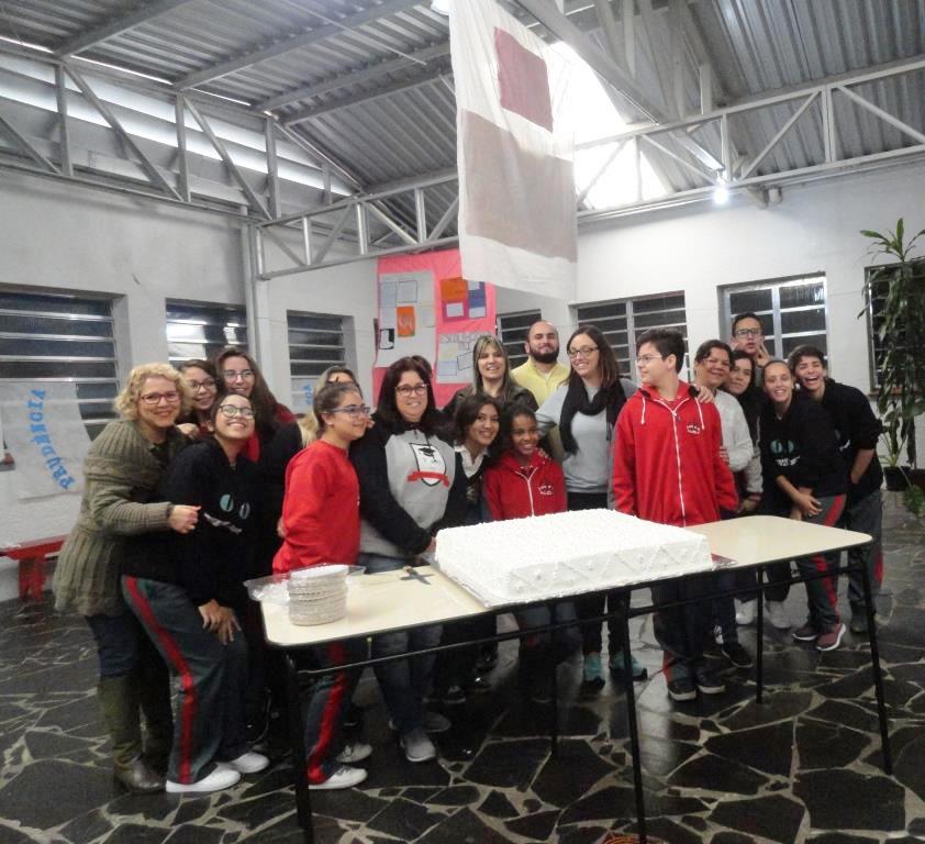 Para concluir esta etapa de pesquisas na terça-feira dia 27 de junho, data de seu nascimento, realizamos com os alunos uma manhã diferenciada celebrando a abertura do Ano Bicentenário de Nascimento de Bárbara Maix fundadora da Congregação das Irmãs do Imaculado Coração de Maria. Deu-se início com a celebração da Missa presidida pelo Pe. Adriano Carminatti e, posteriormente, os alunos do 9º ano apresentaram seus documentários e homenagem aos professores, funcionários e direção da escola. Em seguida, prestigiamos as histórias em quadrinhos e os banners expostos no pátio coberto confeccionados pelos alunos dos 6º, 7º e 8º anos. Após a reflexão dos trabalhos apresentados foi oferecido aos alunos, professores e funcionários o bolo de aniversário.