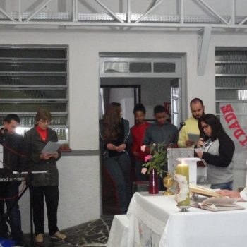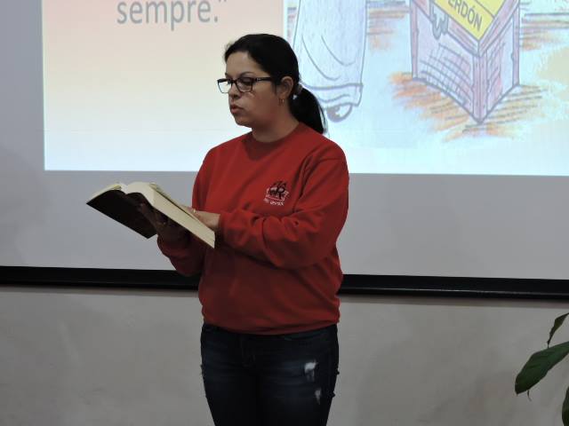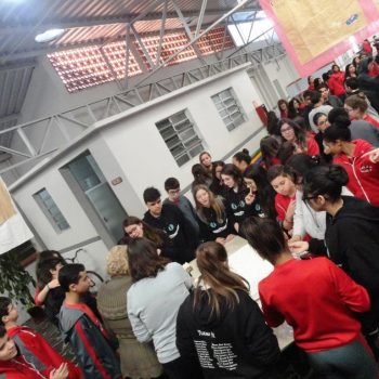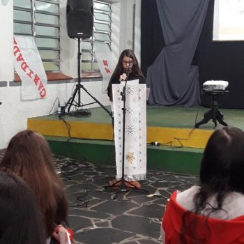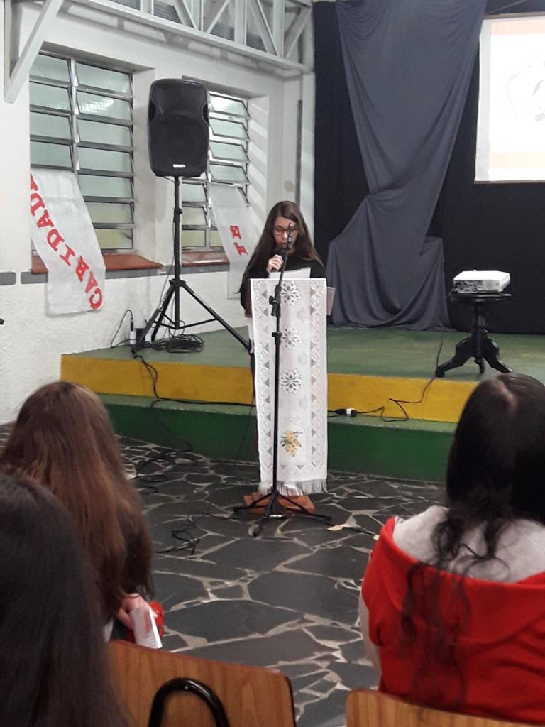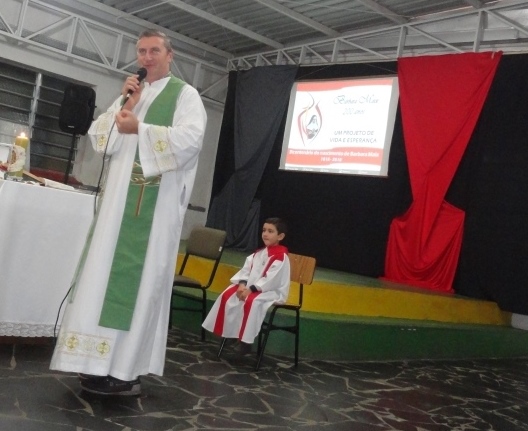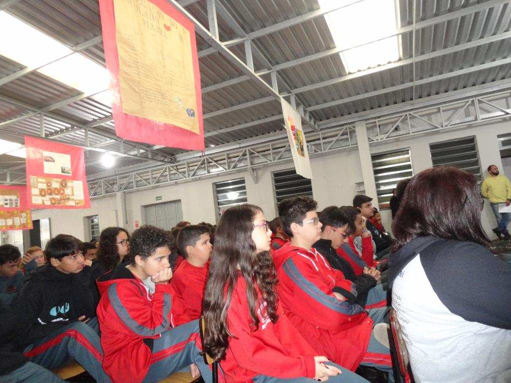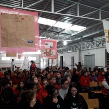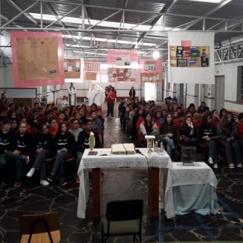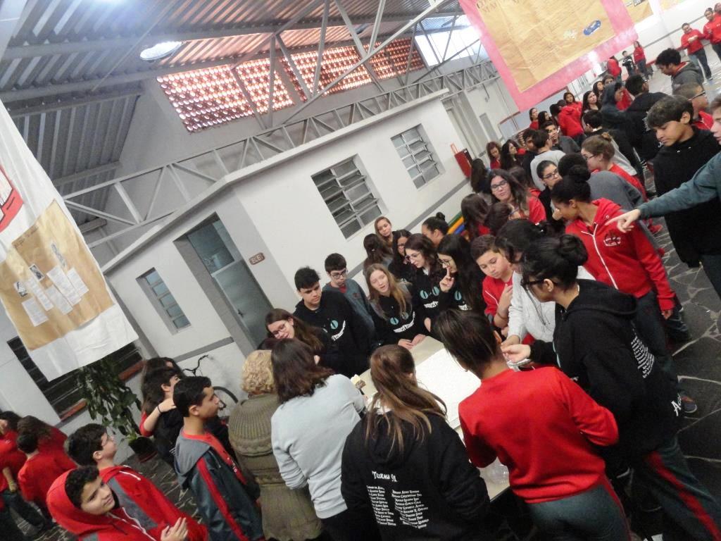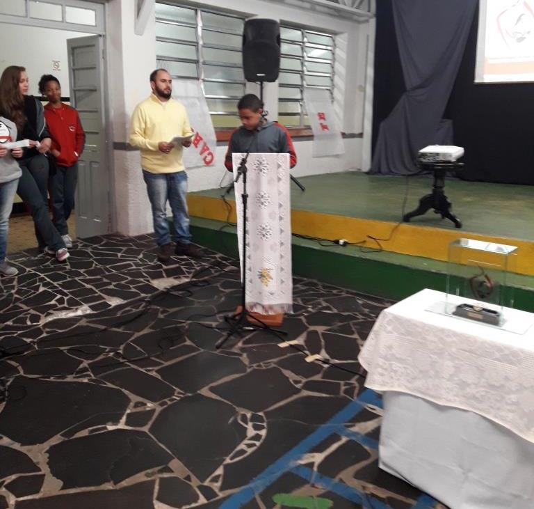 Para concluir esta etapa de pesquisas na terça-feira dia 27 de junho, data de seu nascimento, realizamos com os alunos uma manhã diferenciada celebrando a abertura do Ano Bicentenário de Nascimento de Bárbara Maix fundadora da Congregação das Irmãs do Imaculado Coração de Maria. Deu-se início com a celebração da Missa presidida pelo Pe. Adriano Carminatti e, posteriormente, os alunos do 9º ano apresentaram seus documentários e homenagem aos professores, funcionários e direção da escola. Em seguida, prestigiamos as histórias em quadrinhos e os banners expostos no pátio coberto confeccionados pelos alunos dos 6º, 7º e 8º anos. Após a reflexão dos trabalhos apresentados foi oferecido aos alunos, professores e funcionários o bolo de aniversário.