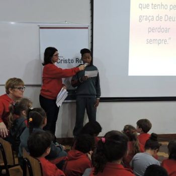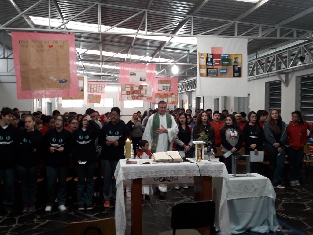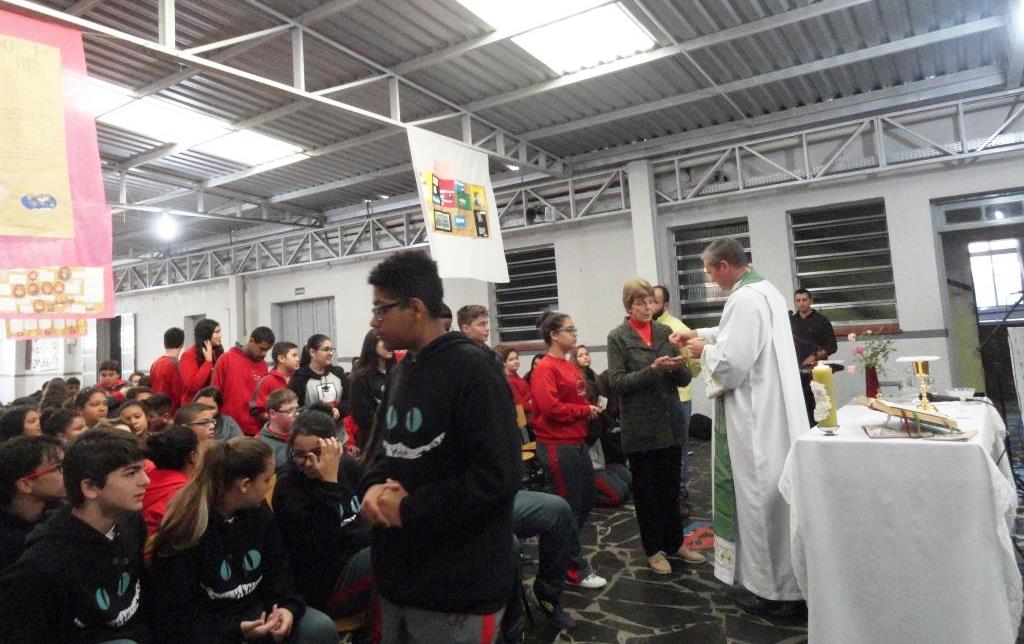 Concluímos a manhã com a 2ª etapa da Gincana de Integração Educativa que vêm sendo realizada com os alunos desde o início do ano letivo de 2017. Agradecemos o empenho e dedicação de todos os envolvidos no processo de planejamento e organização desta manhã de celebração, e um agradecimento especial ao Pe. Adriano Carminatti, sua equipe de apoio que auxiliou nos cantos, ao coroinha, aluno da escola do turno da tarde da Educação Infantil e ao professor Diego que junto a Direção da Escola e ao Pe. Adriano organizaram a missa, cantos e liturgia.
