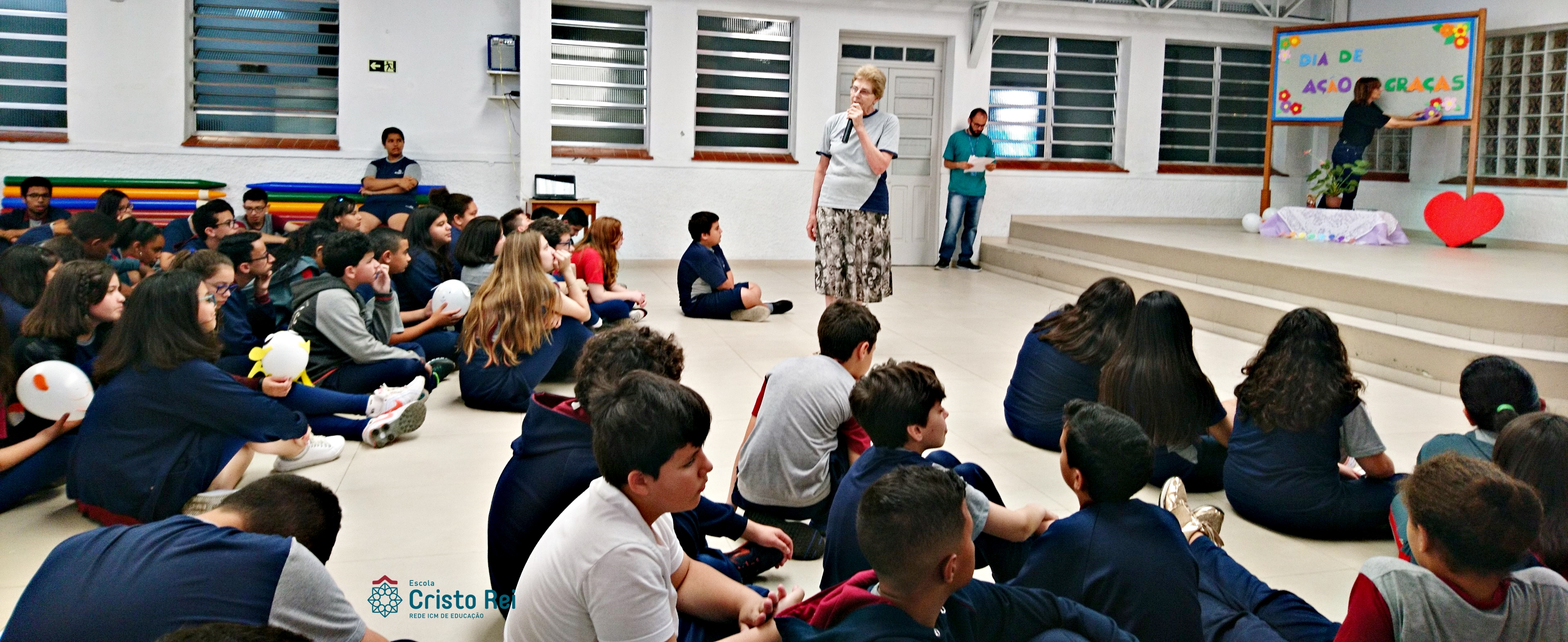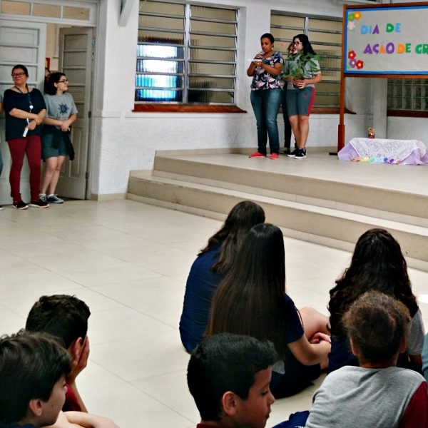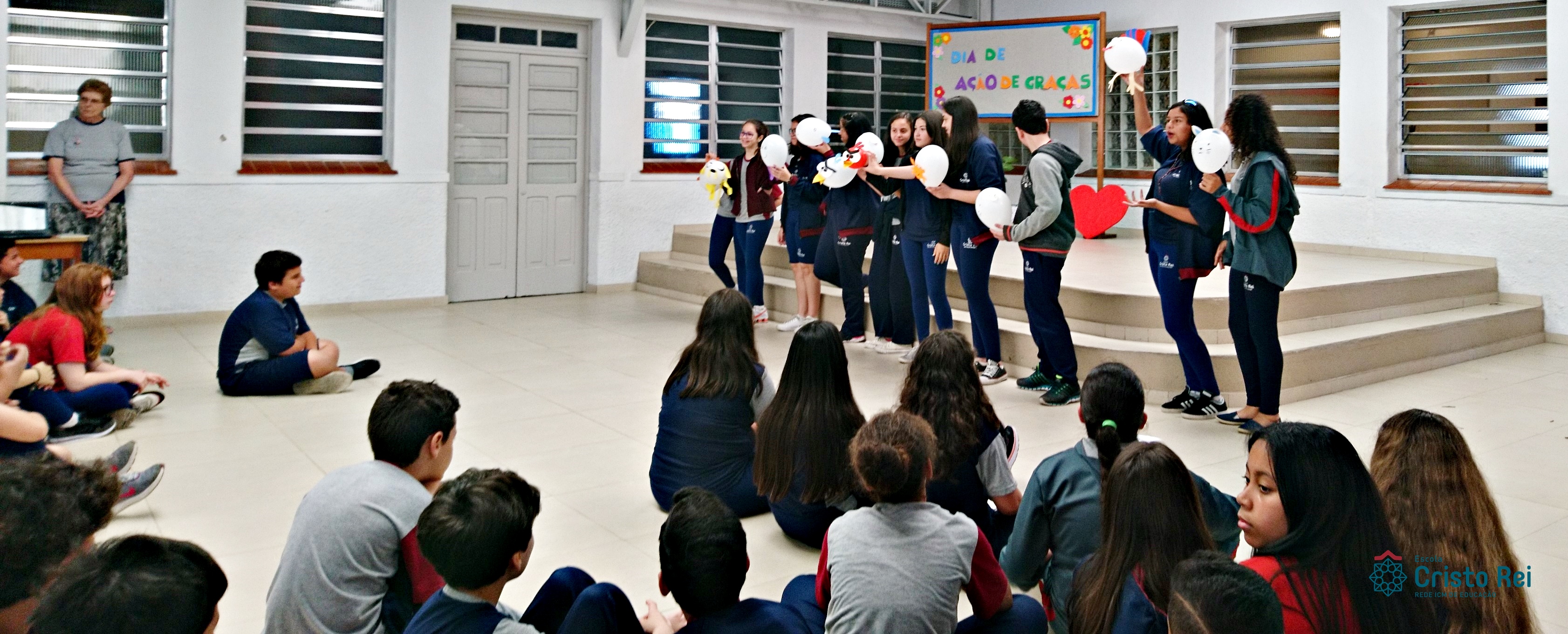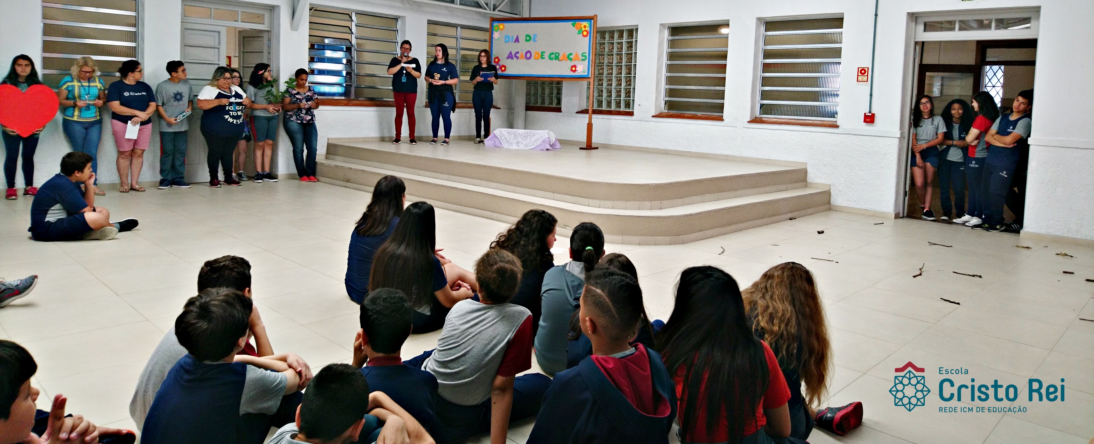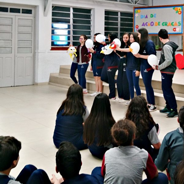 Professores/colaboradores, alunos e Irmãs, participaram de um momento celebrativo por ocasião do Dia Nacional de Ação de Graças, dinamizado pela Pastoral Escolar.