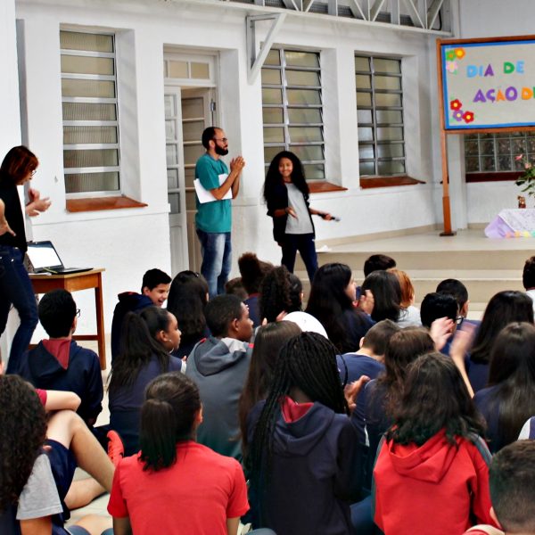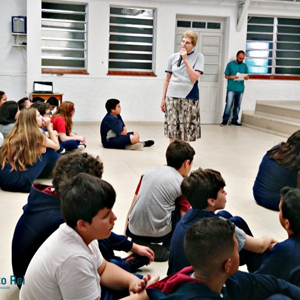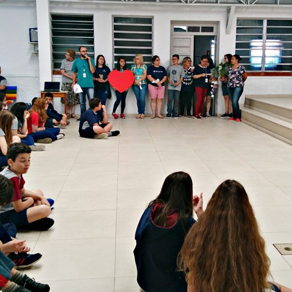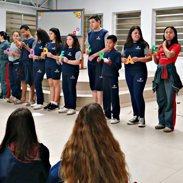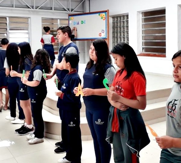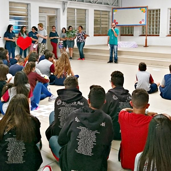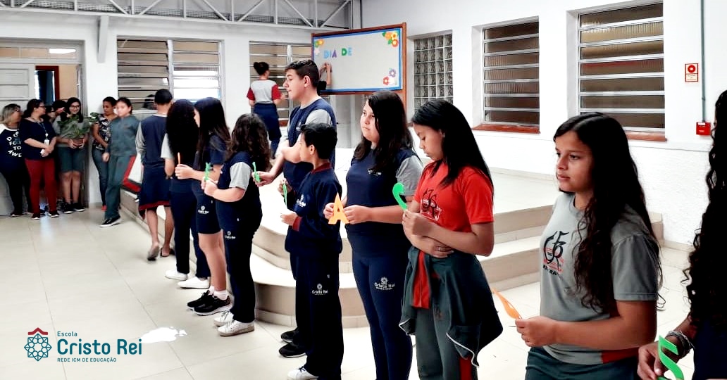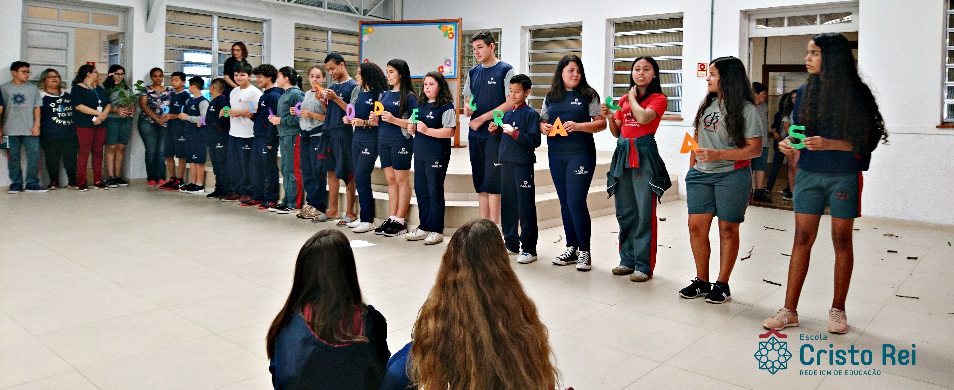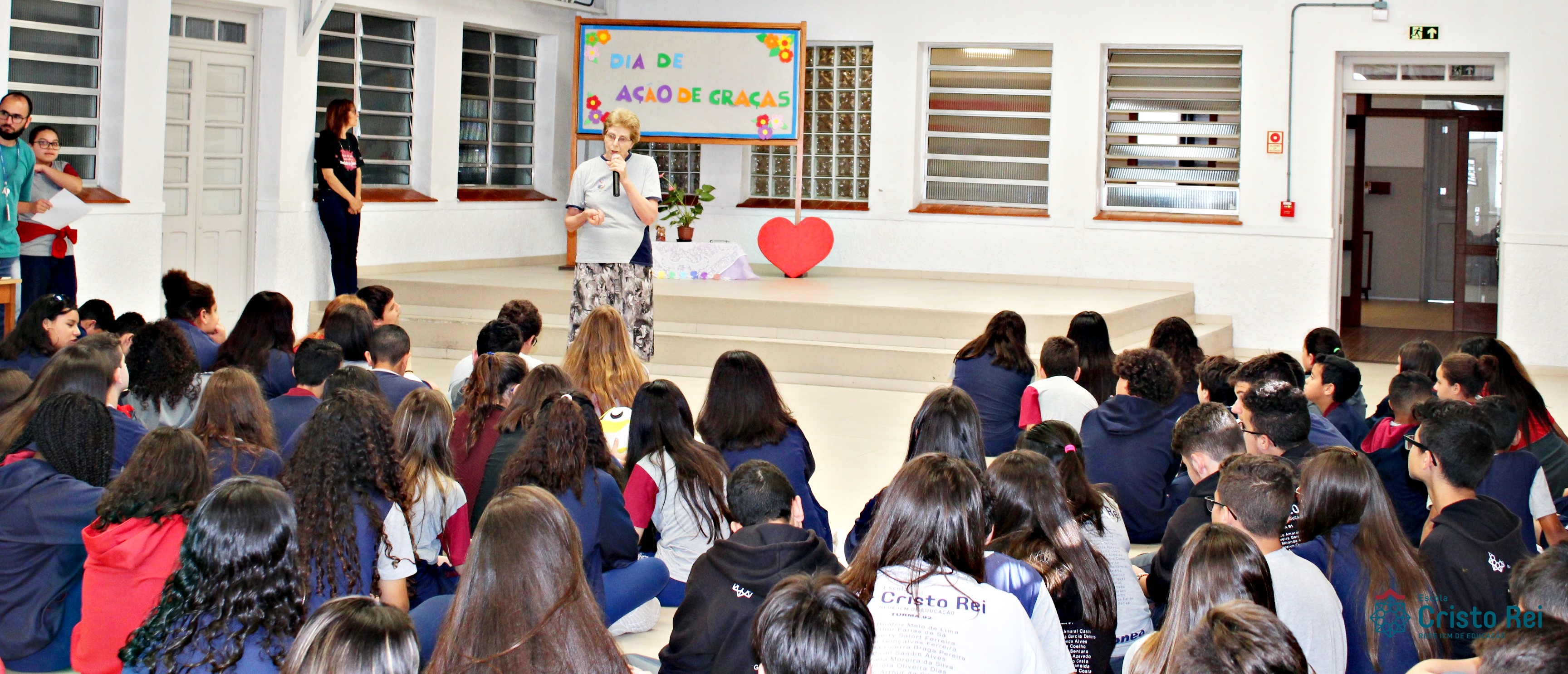 Professores/colaboradores, alunos e Irmãs, participaram de um momento celebrativo por ocasião do Dia Nacional de Ação de Graças, dinamizado pela Pastoral Escolar.