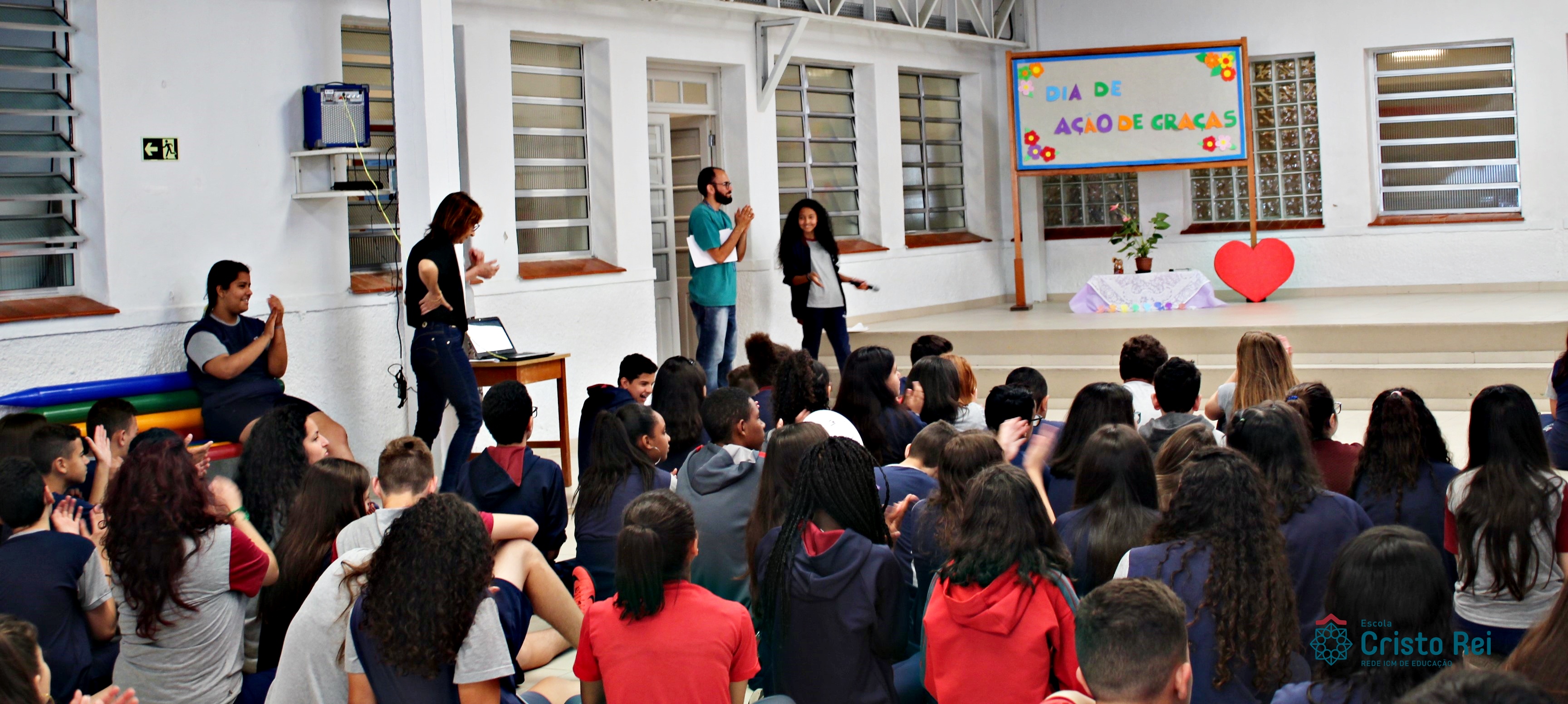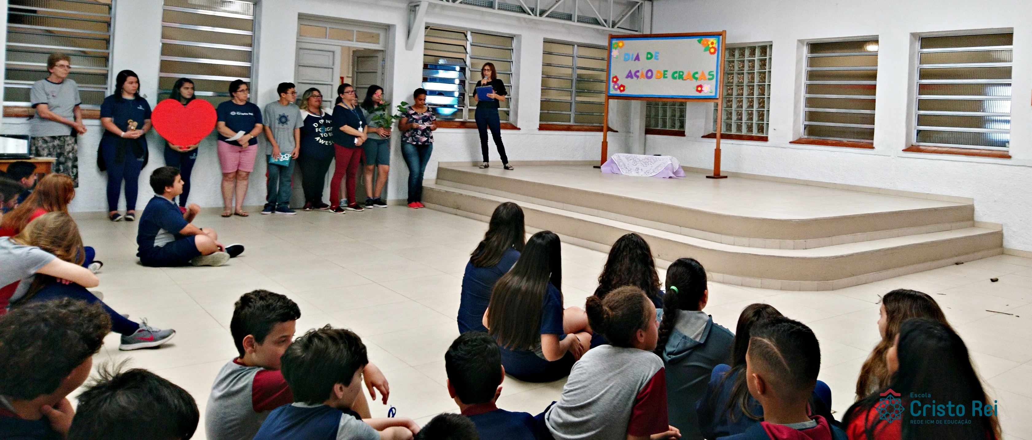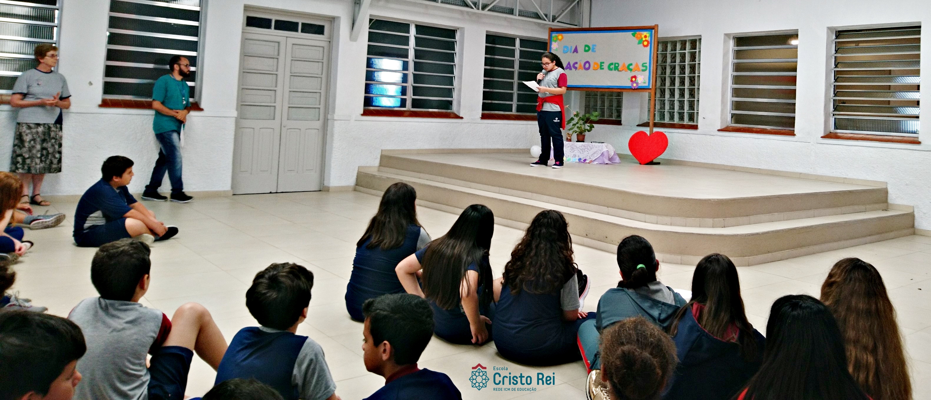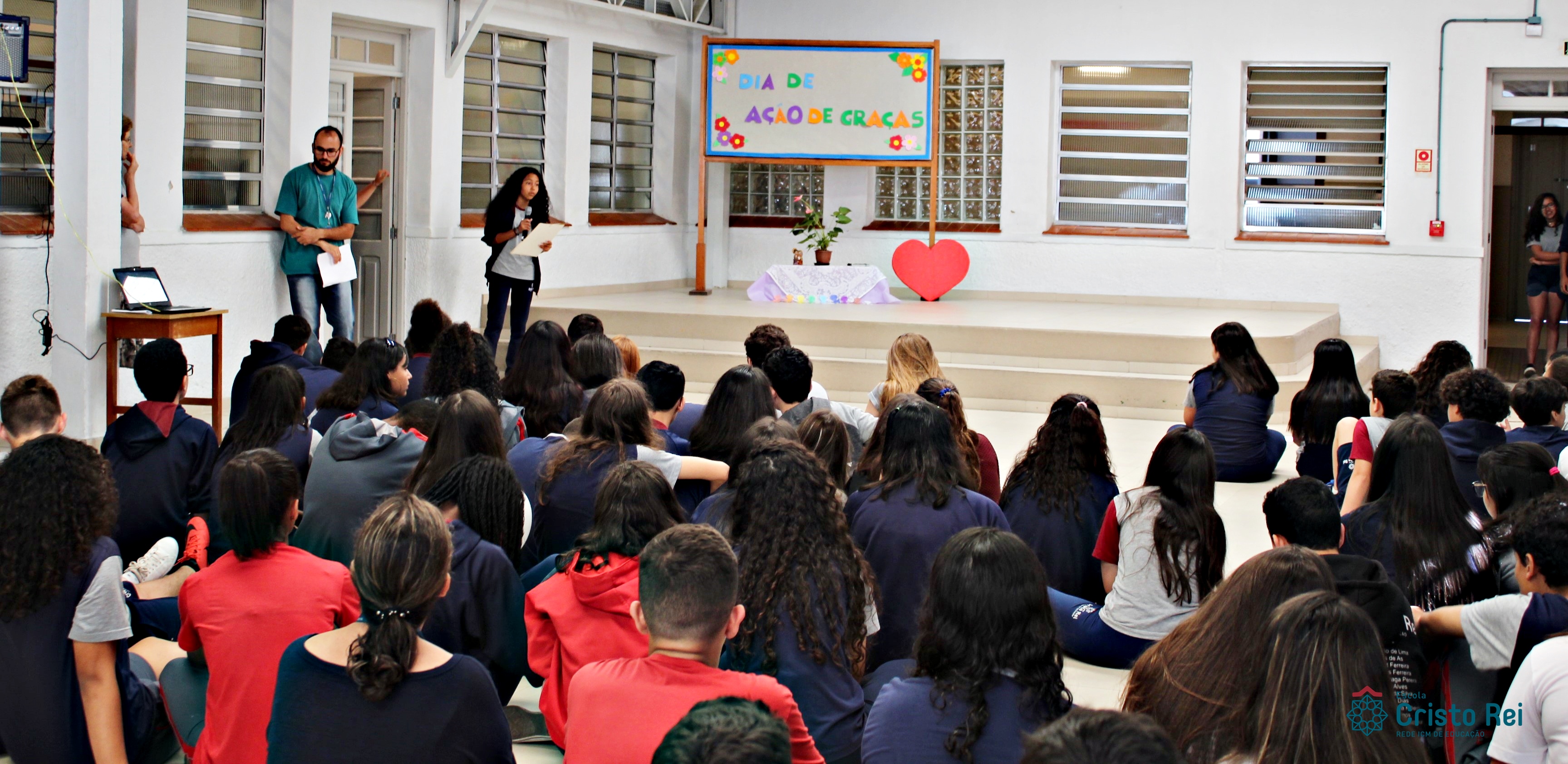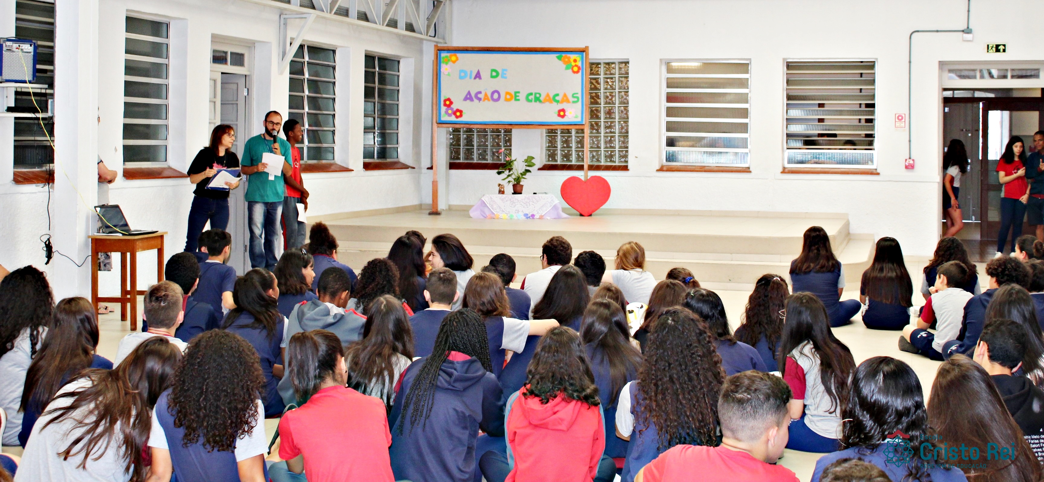 Na celebração, agradeceram a Deus pela Vida e todas as graças recebidas nesse ano. Após os alunos confraternizaram com partilha do lanche.