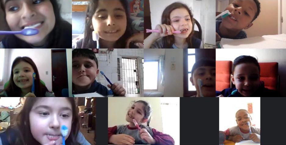 Em uma interação divertida e cheia de significados, alunos do 1º ano reforçaram os cuidados com os dentes e a higiene bucal, embarcando no universo lúdico da história: Manuela Banguela de Amanda Castanheira. Higiene é saúde!