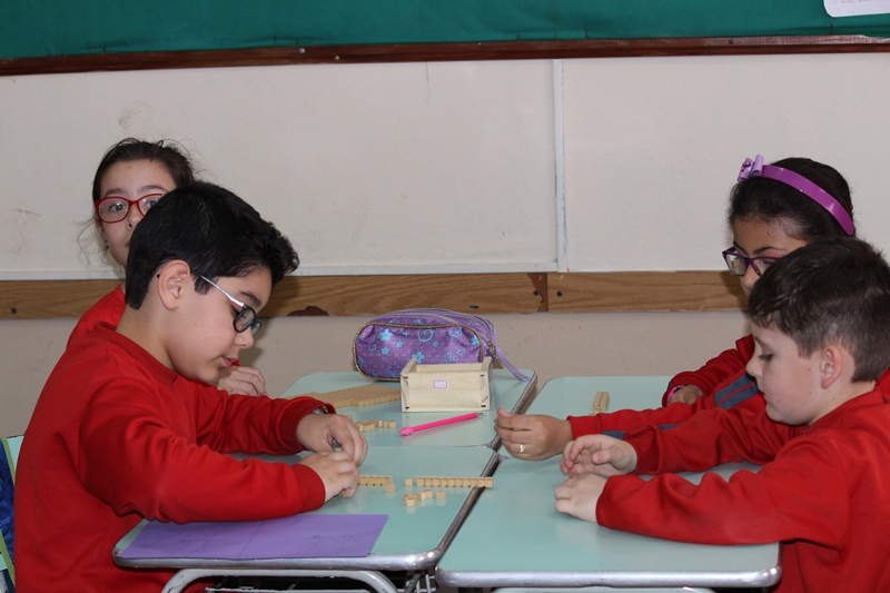 Alunos do 2º ano, Professoras Fernanda Aragão de Oliveira e Gisele Ávila de Ávila realizaram em grupos com o auxílio do material dourado atividades de subtração com reagrupamento. Momento prazeroso e de aprendizagem!!