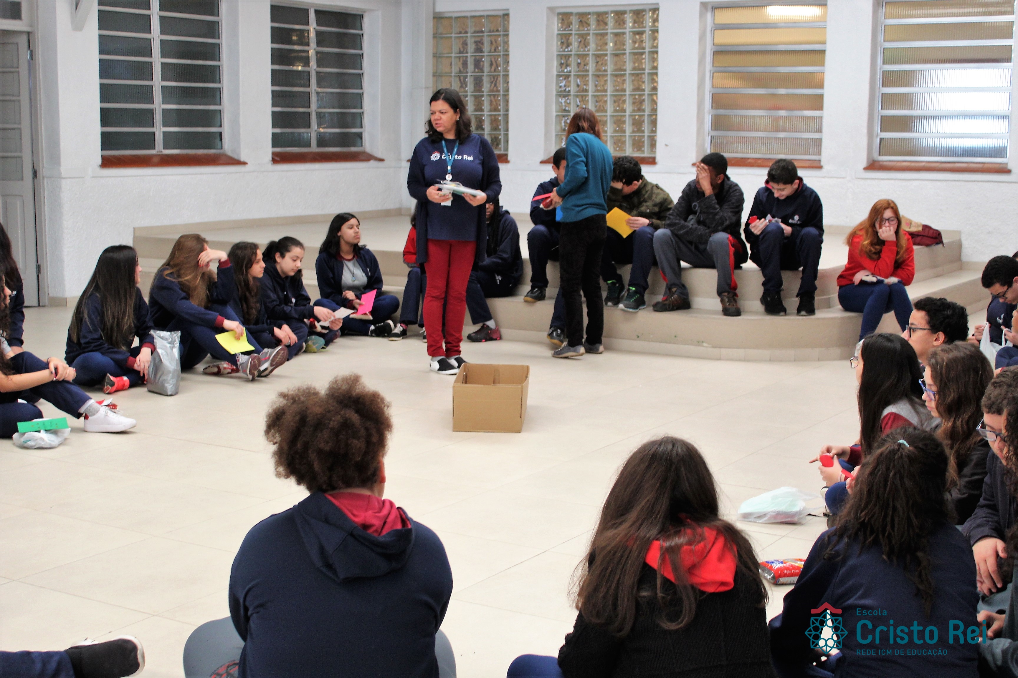 Os alunos da turma 71, de forma solidária, atendendo a campanha de doações de alimento da Santa Casa de Rio Grande, decidiram em conjunto com as professoras Rejane Carvalho, Sabrina Araújo e a representante da pastoral Rosangela Carpes realizar um “amigo secreto solidário”. Assim, no dia 25 de setembro, reunidos na tenda preparada pela Escola Cristo Rei, começaram a manhã com um momento espiritual, lendo passagens da Bíblia. Após este momento, realizaram o amigo secreto, no qual, cada aluno presenteou o colega com um alimento não perecível e um cartão. Desse modo, o colega presenteado doou o alimento para a campanha em prol da Santa Casa de Rio Grande.