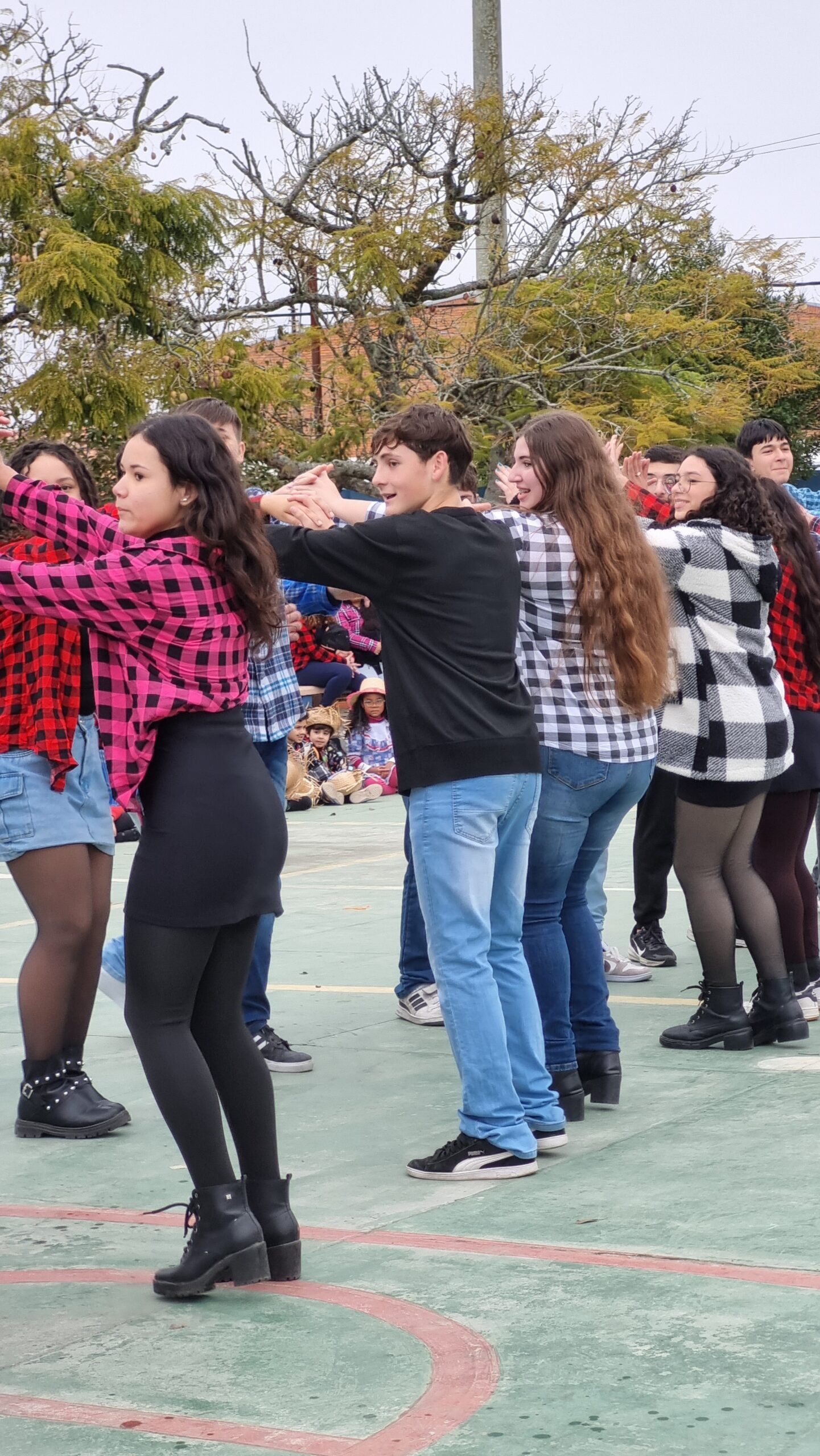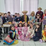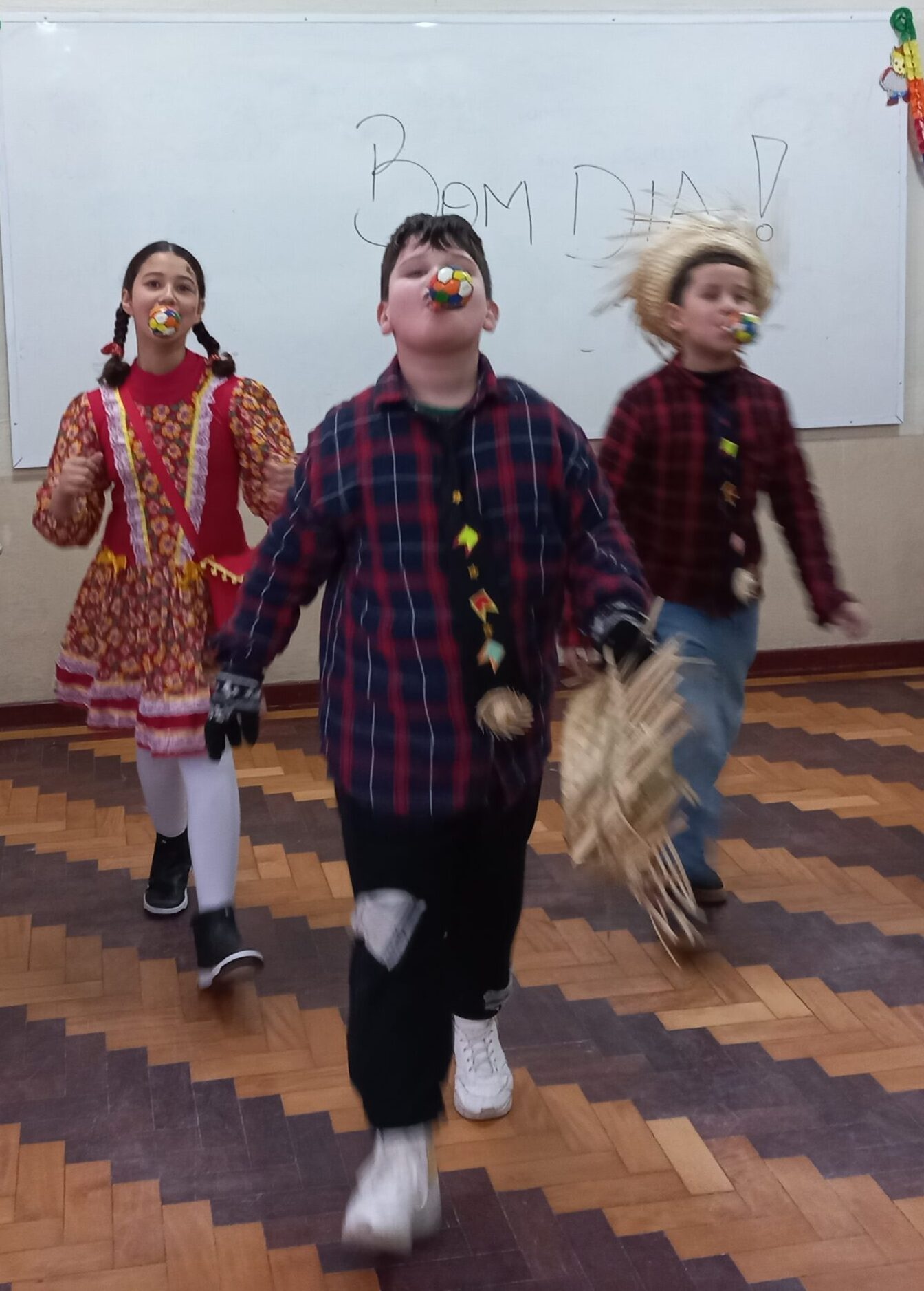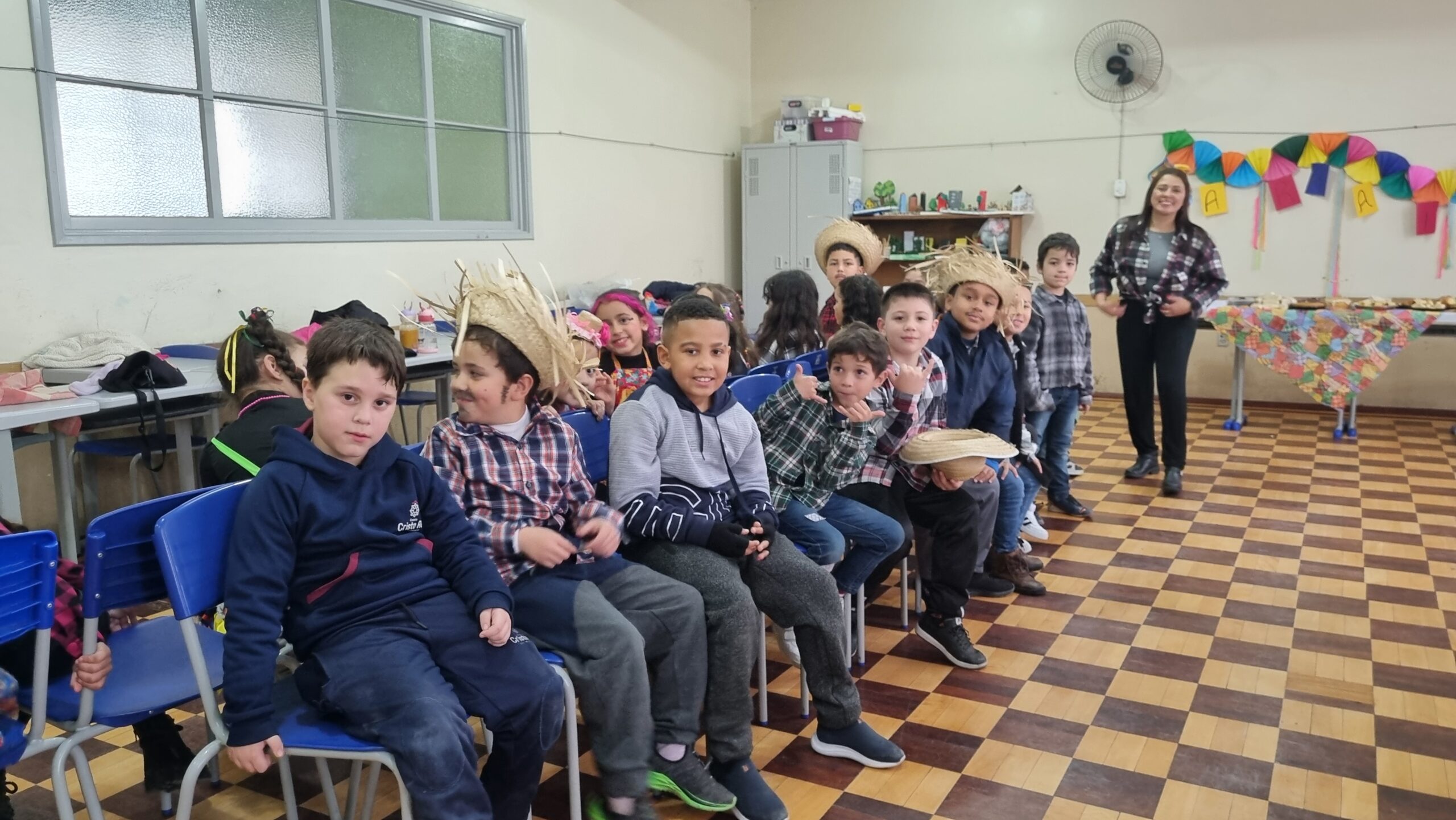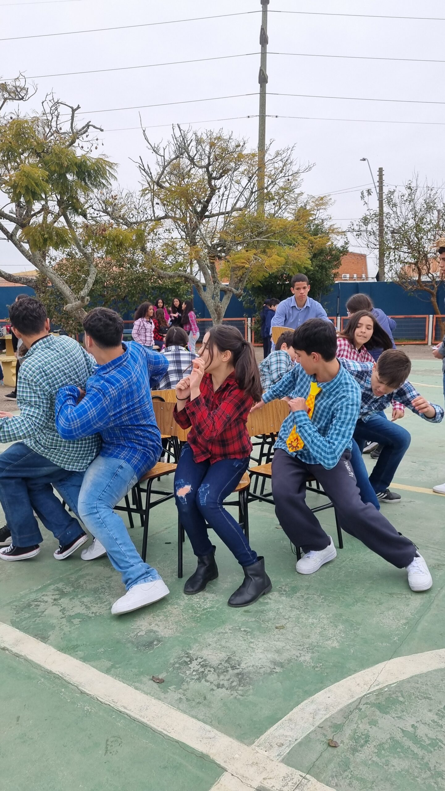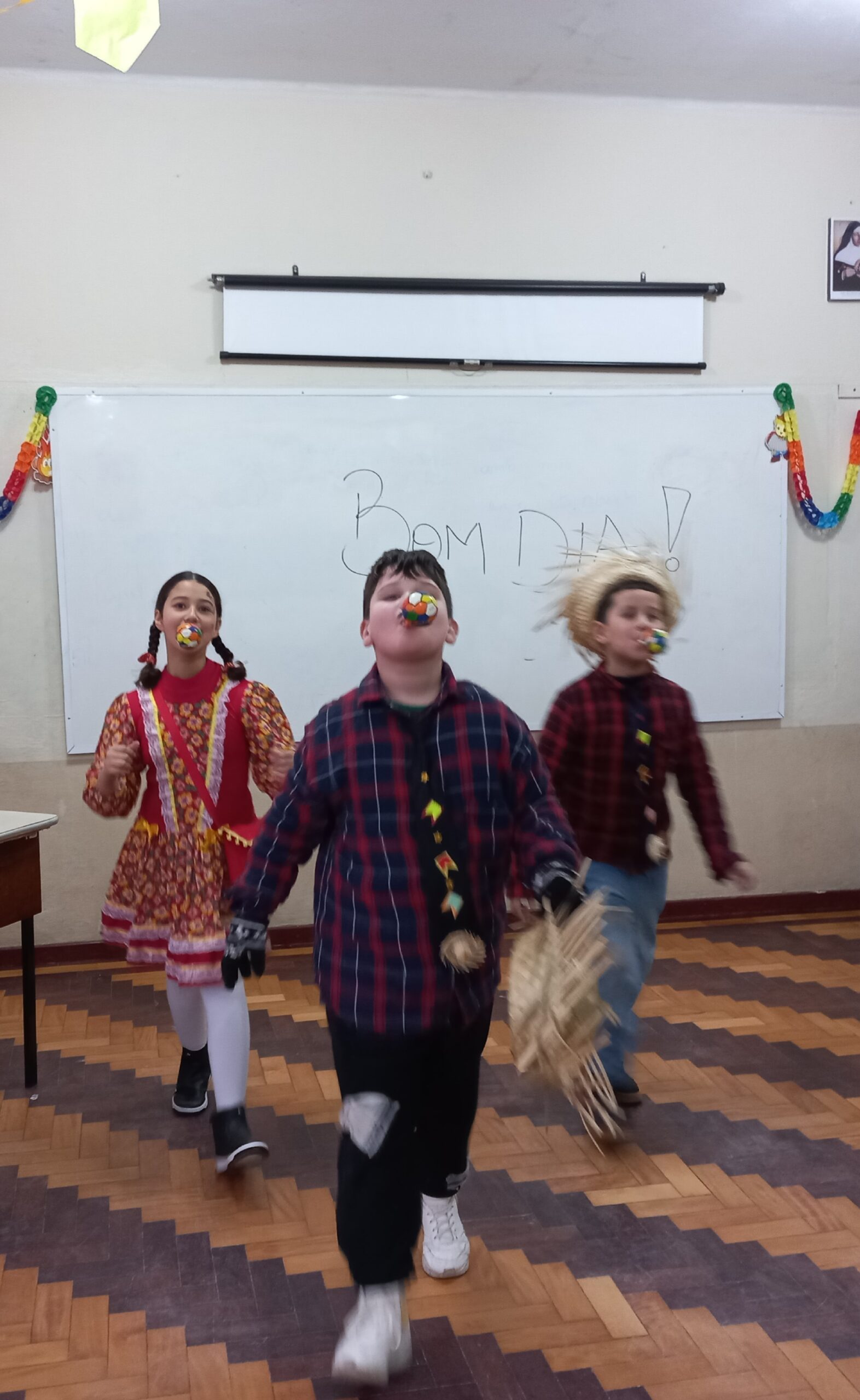 Neste ano, a comemoração junina aconteceu em 20 de julho, com a presença animada de estudantes e professores, fortalecendo laços de amizade. O dia teve uma atmosfera de felicidade e contentamento, com muitas atividades divertidas e mesas decoradas de forma caprichosa por cada grupo de alunos dos anos finais. Enquanto isso, as crianças da Educação Infantil e dos Anos iniciais se divertiram com seus professores, desfrutando de brincadeiras e guloseimas deliciosas. Os estudantes também apreciaram uma encenação de casamento caipira promovida pelos colegas dos anos finais, seguida por muita música e dança. Para encerrar a manhã, todos os alunos se uniram em uma integração calorosa, que culminou na tradicional dança das cadeiras em conjunto com as crianças mais novas.
