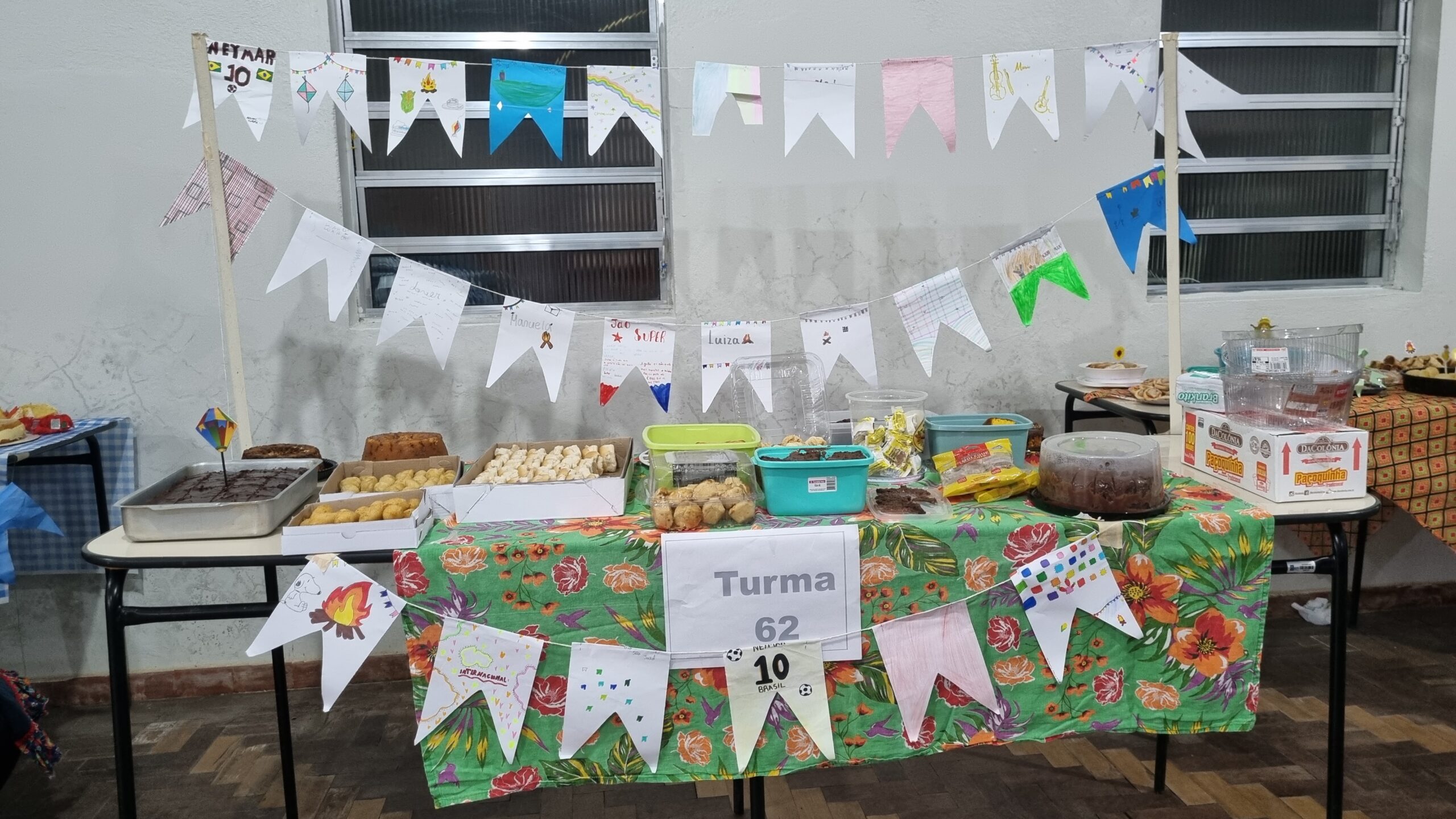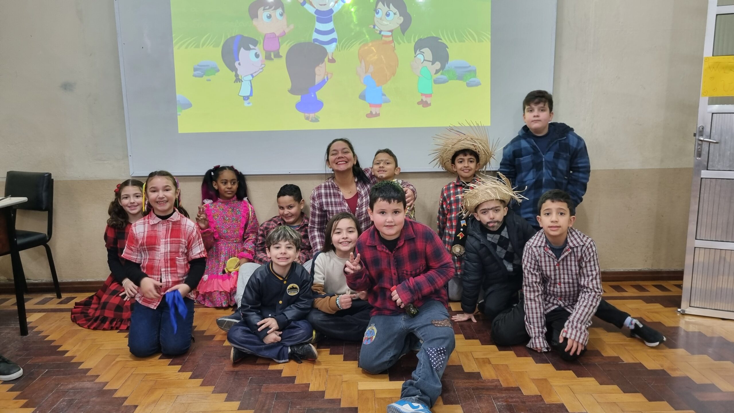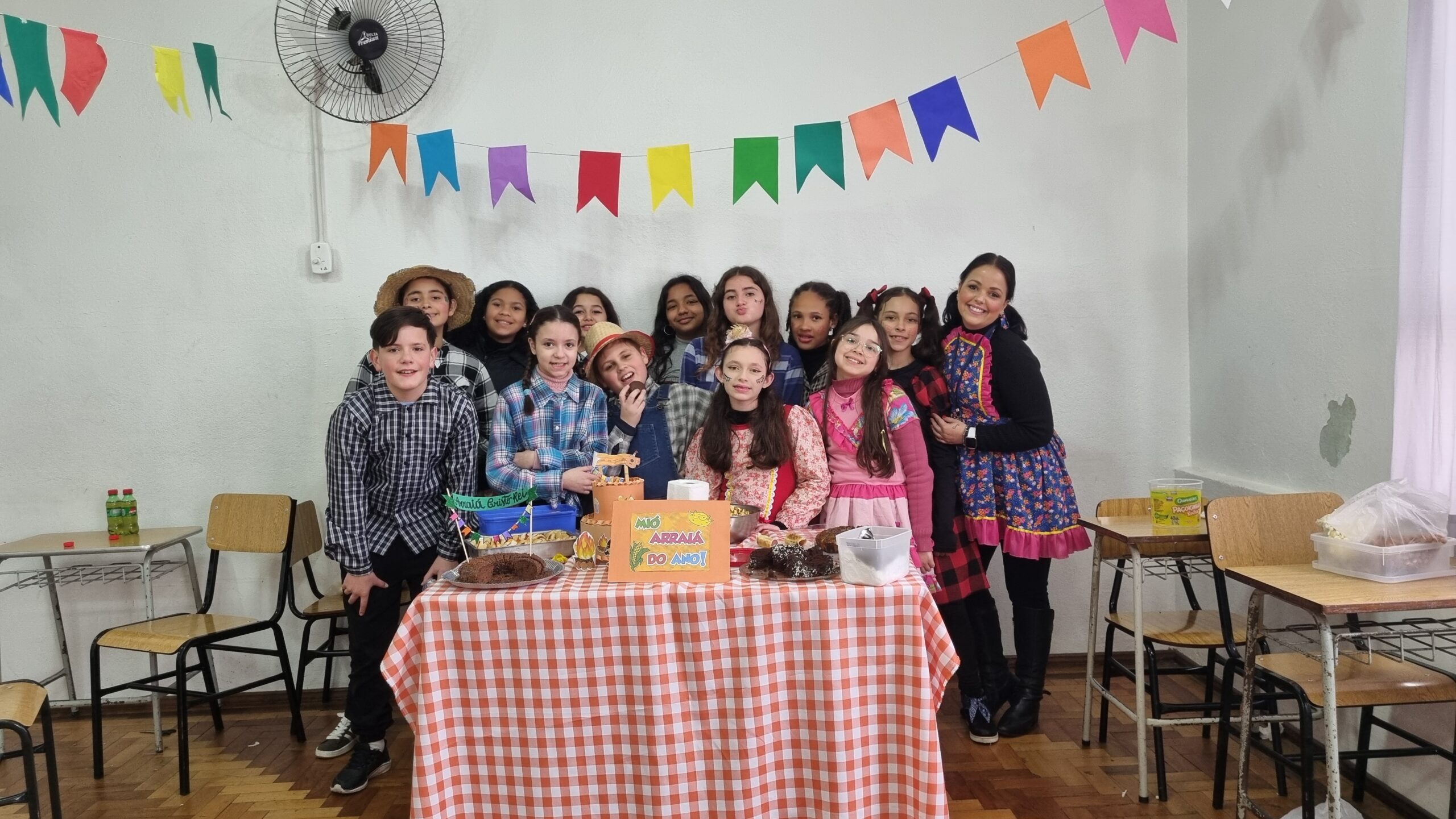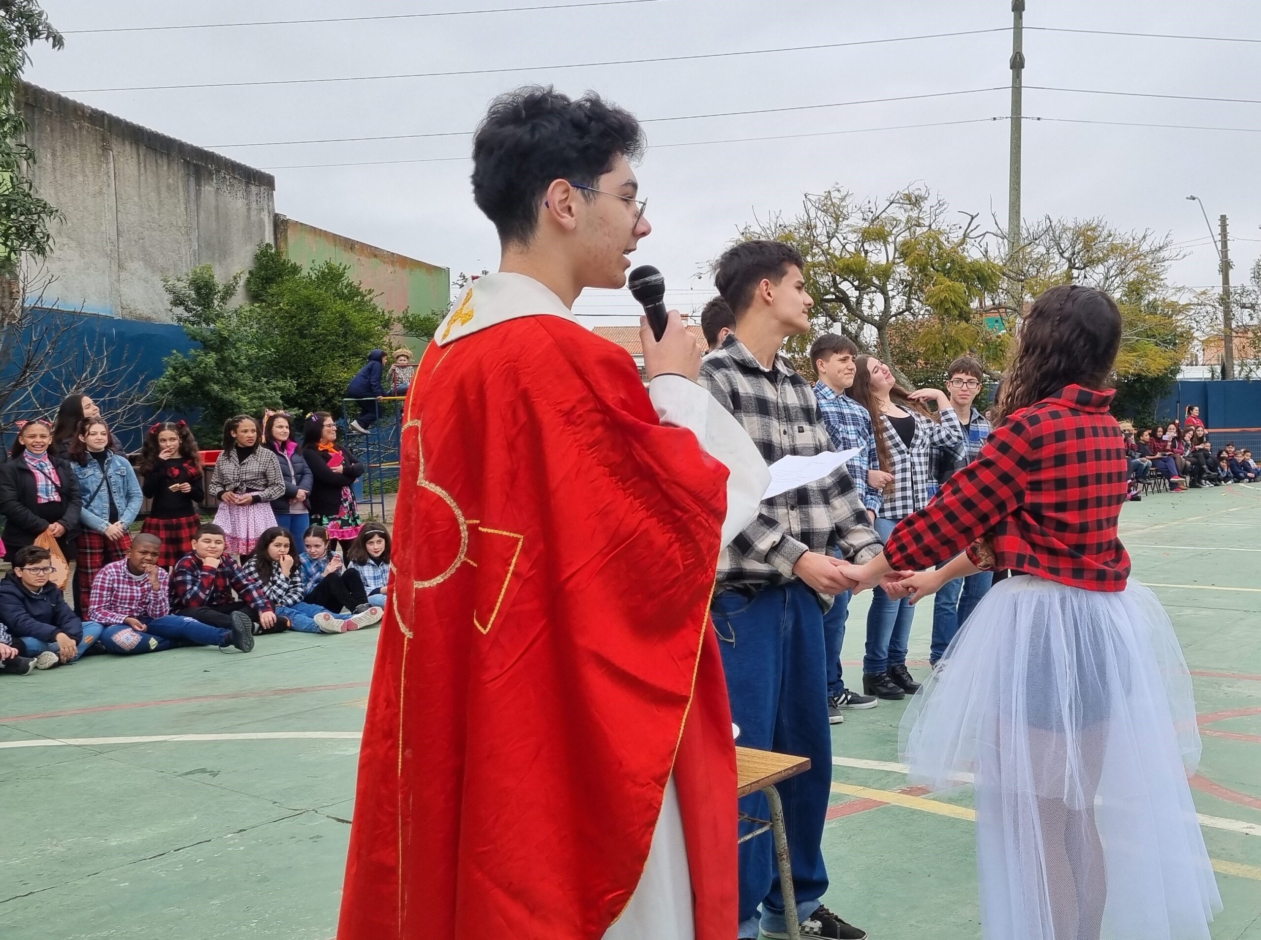 Neste ano, a comemoração junina aconteceu em 20 de julho, com a presença animada de estudantes e professores, fortalecendo laços de amizade. O dia teve uma atmosfera de felicidade e contentamento, com muitas atividades divertidas e mesas decoradas de forma caprichosa por cada grupo de alunos dos anos finais. Enquanto isso, as crianças da Educação Infantil e dos Anos iniciais se divertiram com seus professores, desfrutando de brincadeiras e guloseimas deliciosas. Os estudantes também apreciaram uma encenação de casamento caipira promovida pelos colegas dos anos finais, seguida por muita música e dança. Para encerrar a manhã, todos os alunos se uniram em uma integração calorosa, que culminou na tradicional dança das cadeiras em conjunto com as crianças mais novas.