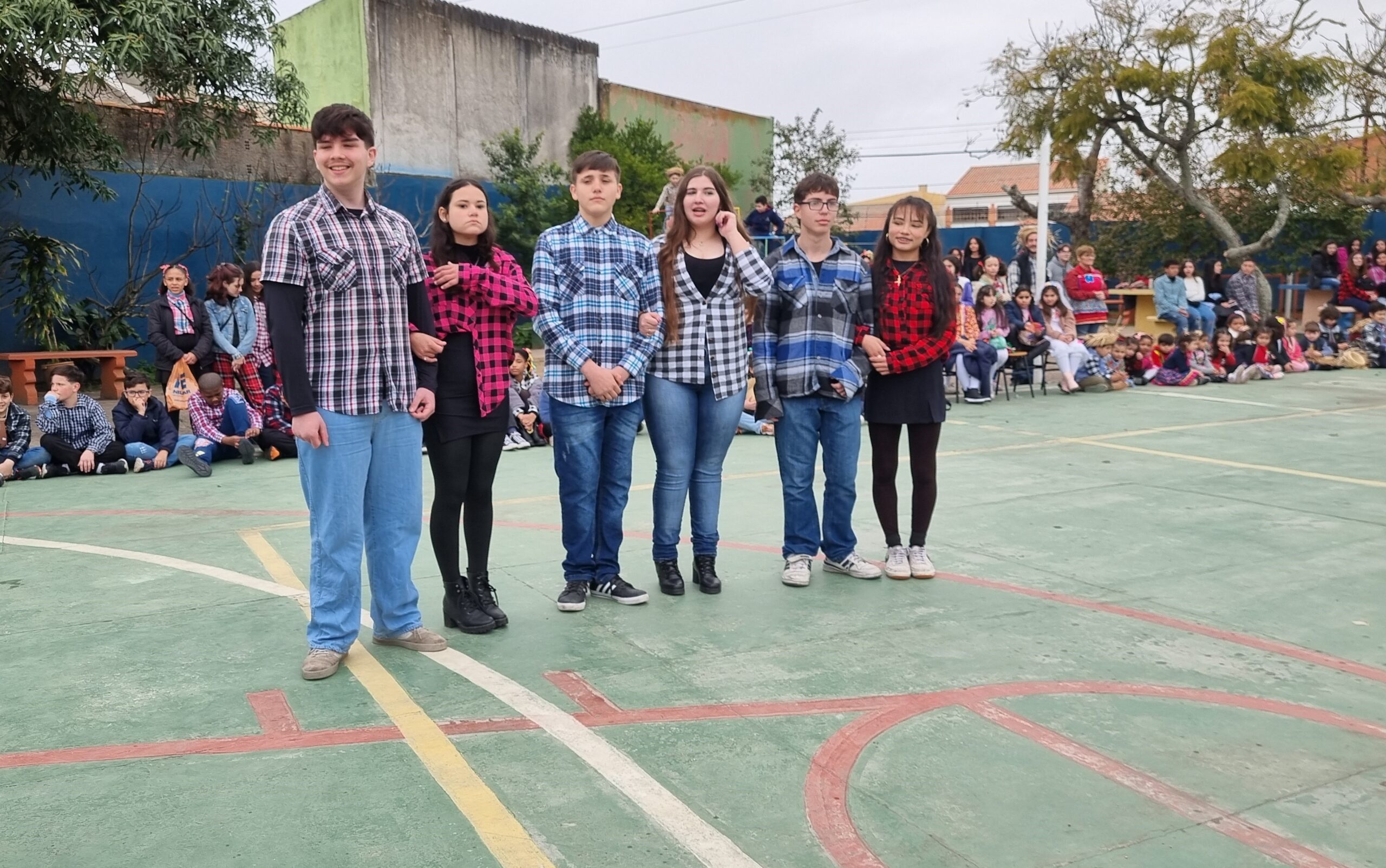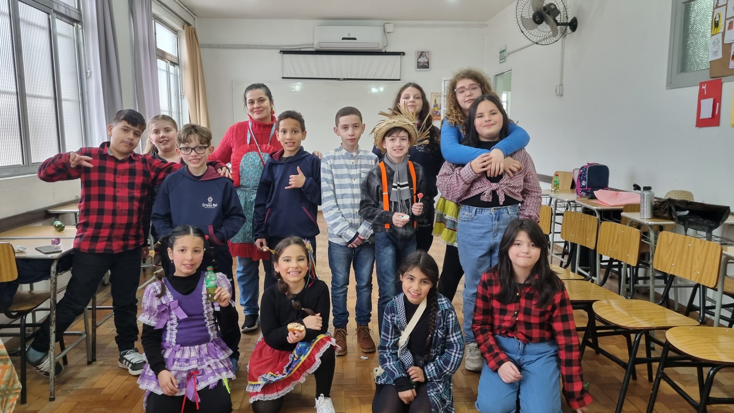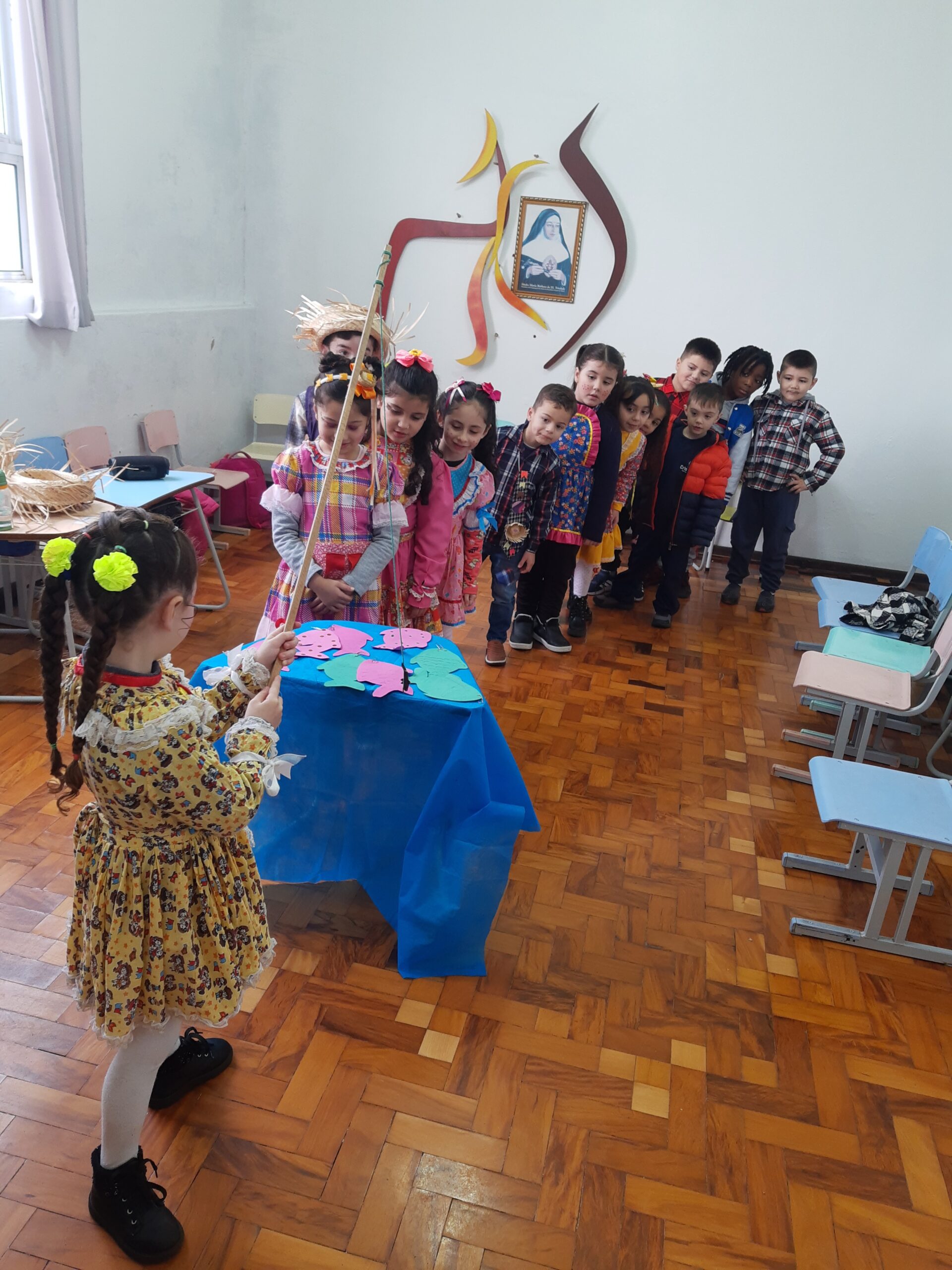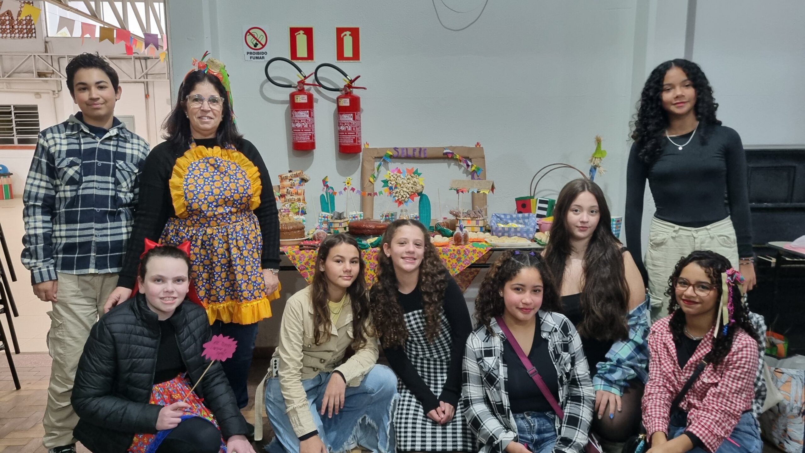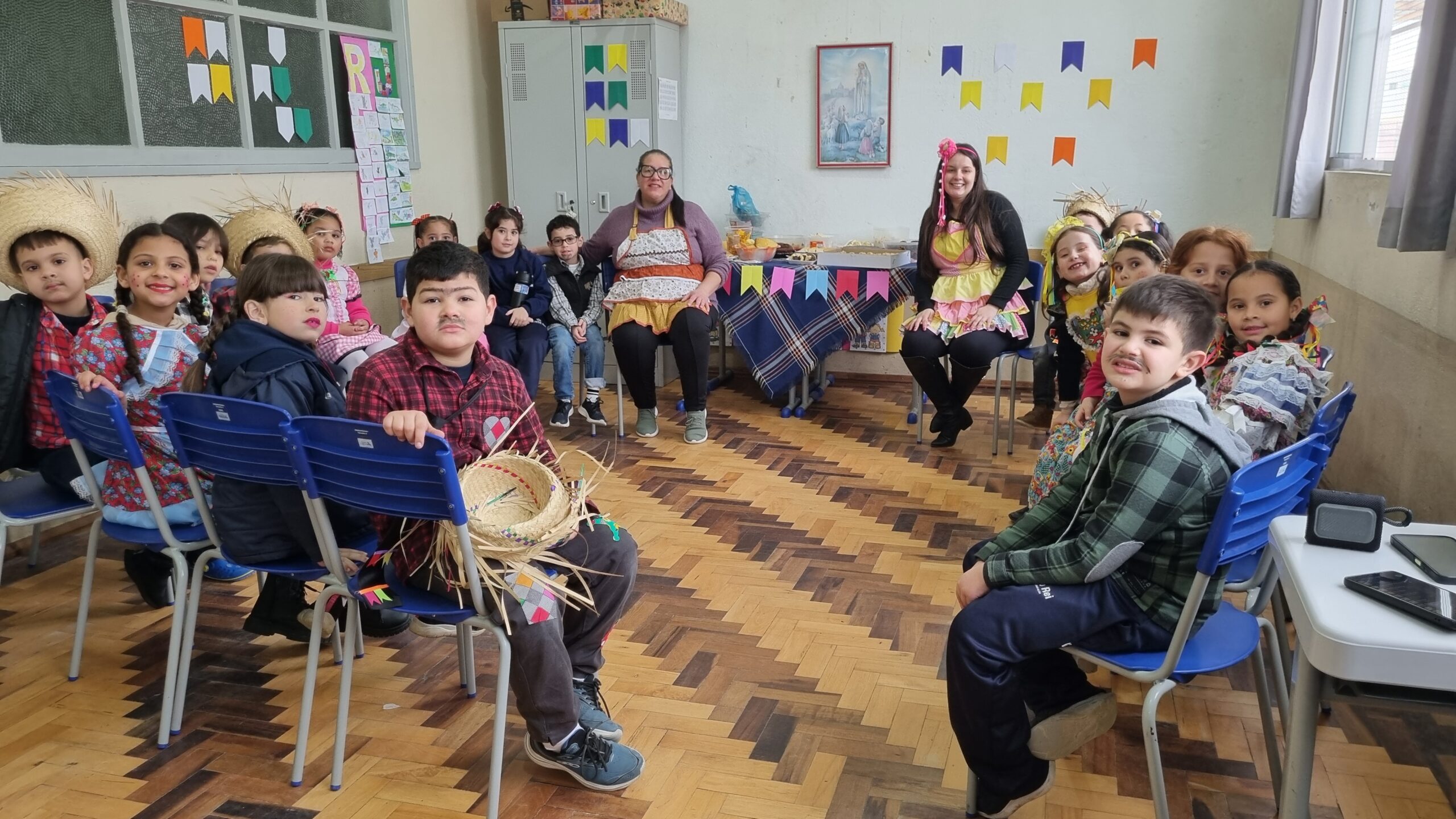 Neste ano, a comemoração junina aconteceu em 20 de julho, com a presença animada de estudantes e professores, fortalecendo laços de amizade. O dia teve uma atmosfera de felicidade e contentamento, com muitas atividades divertidas e mesas decoradas de forma caprichosa por cada grupo de alunos dos anos finais. Enquanto isso, as crianças da Educação Infantil e dos Anos iniciais se divertiram com seus professores, desfrutando de brincadeiras e guloseimas deliciosas. Os estudantes também apreciaram uma encenação de casamento caipira promovida pelos colegas dos anos finais, seguida por muita música e dança. Para encerrar a manhã, todos os alunos se uniram em uma integração calorosa, que culminou na tradicional dança das cadeiras em conjunto com as crianças mais novas.