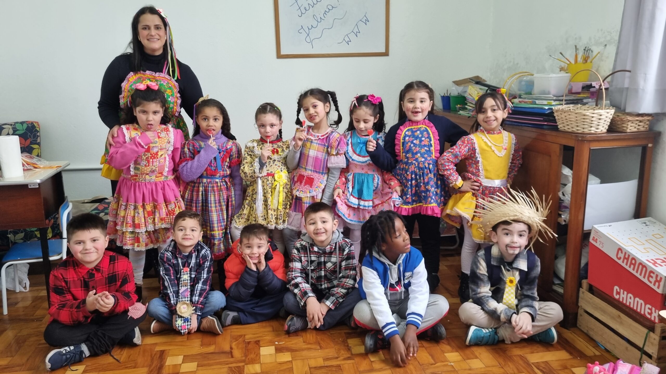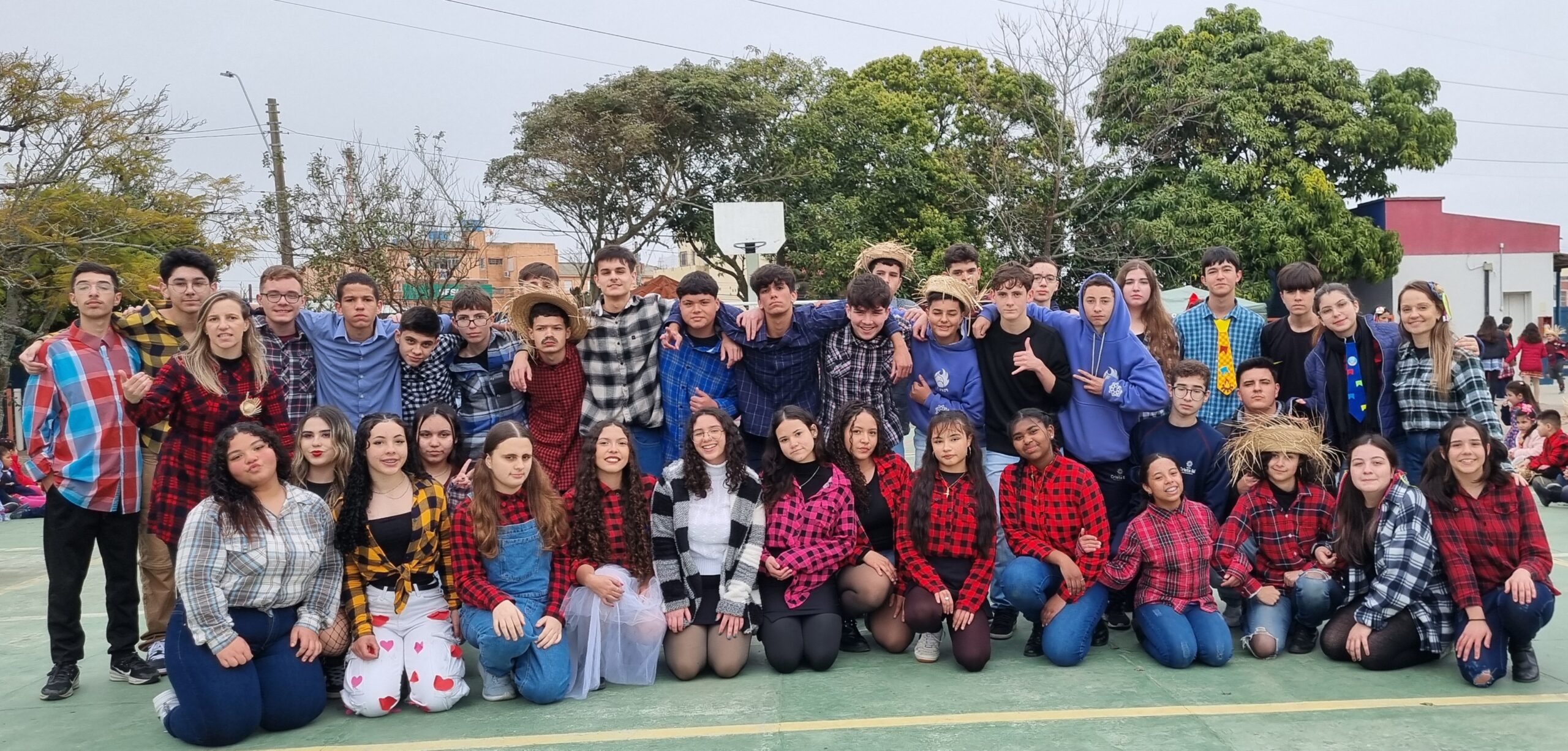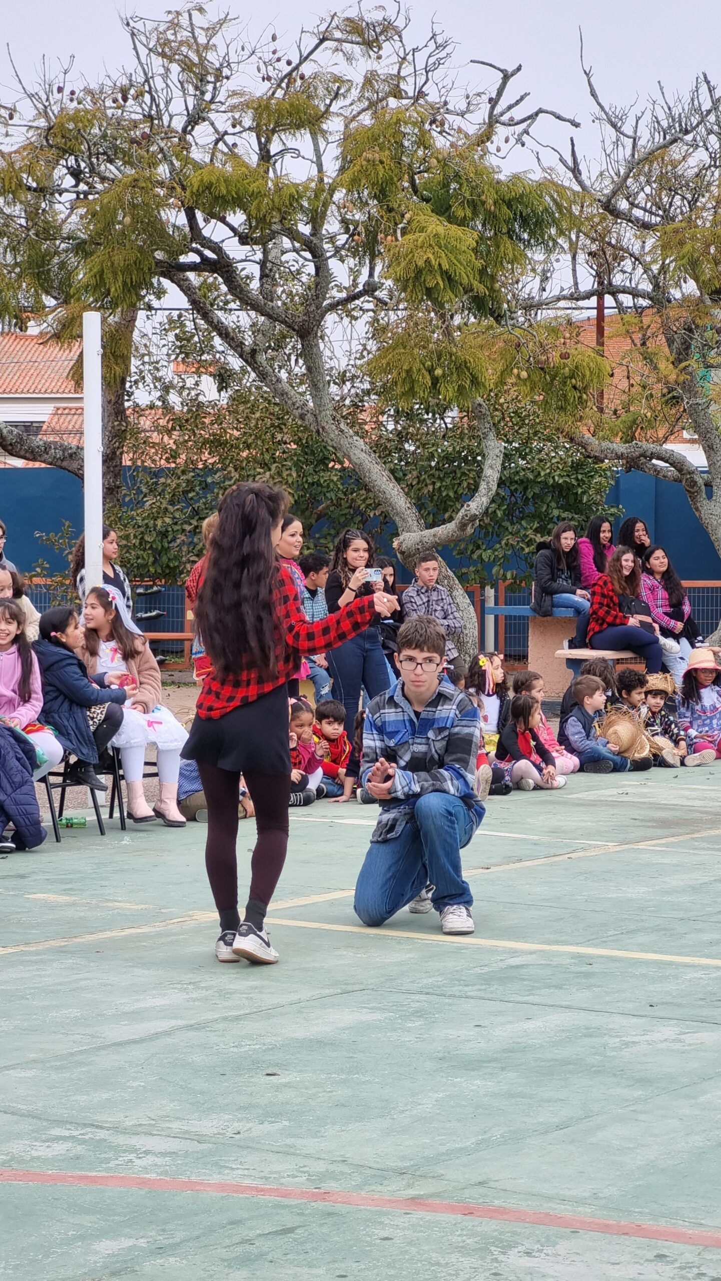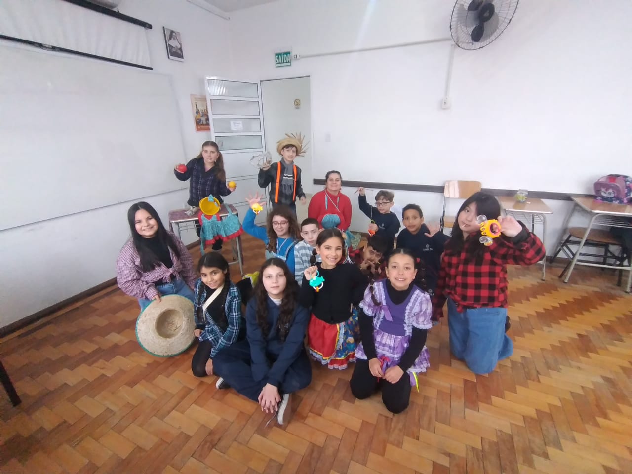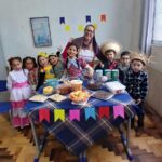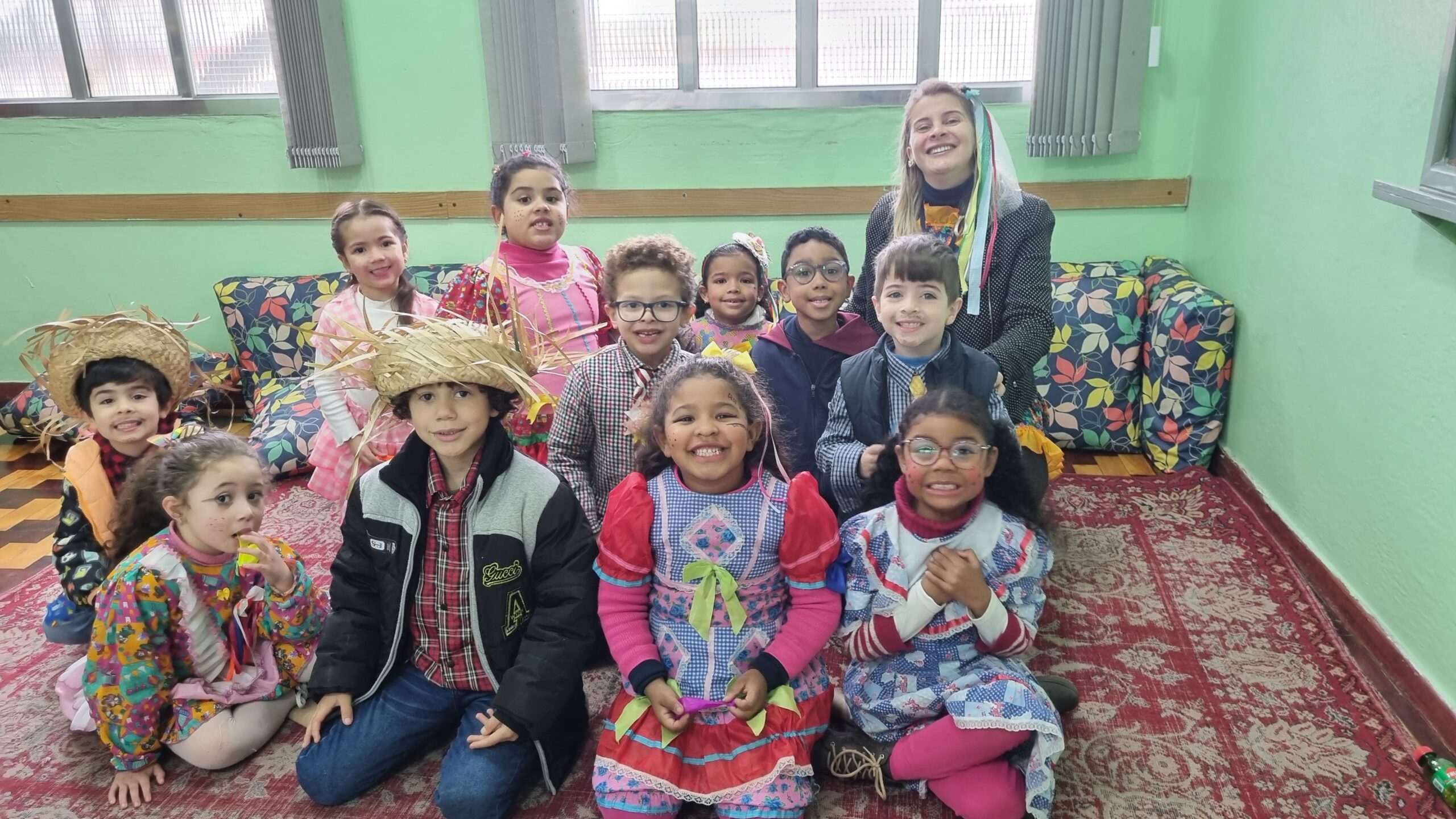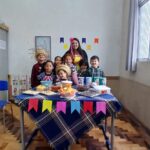 Neste ano, a comemoração junina aconteceu em 20 de julho, com a presença animada de estudantes e professores, fortalecendo laços de amizade. O dia teve uma atmosfera de felicidade e contentamento, com muitas atividades divertidas e mesas decoradas de forma caprichosa por cada grupo de alunos dos anos finais. Enquanto isso, as crianças da Educação Infantil e dos Anos iniciais se divertiram com seus professores, desfrutando de brincadeiras e guloseimas deliciosas. Os estudantes também apreciaram uma encenação de casamento caipira promovida pelos colegas dos anos finais, seguida por muita música e dança. Para encerrar a manhã, todos os alunos se uniram em uma integração calorosa, que culminou na tradicional dança das cadeiras em conjunto com as crianças mais novas.