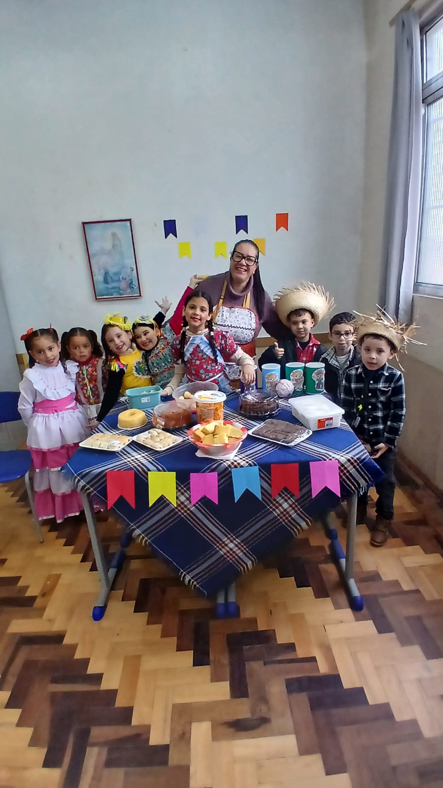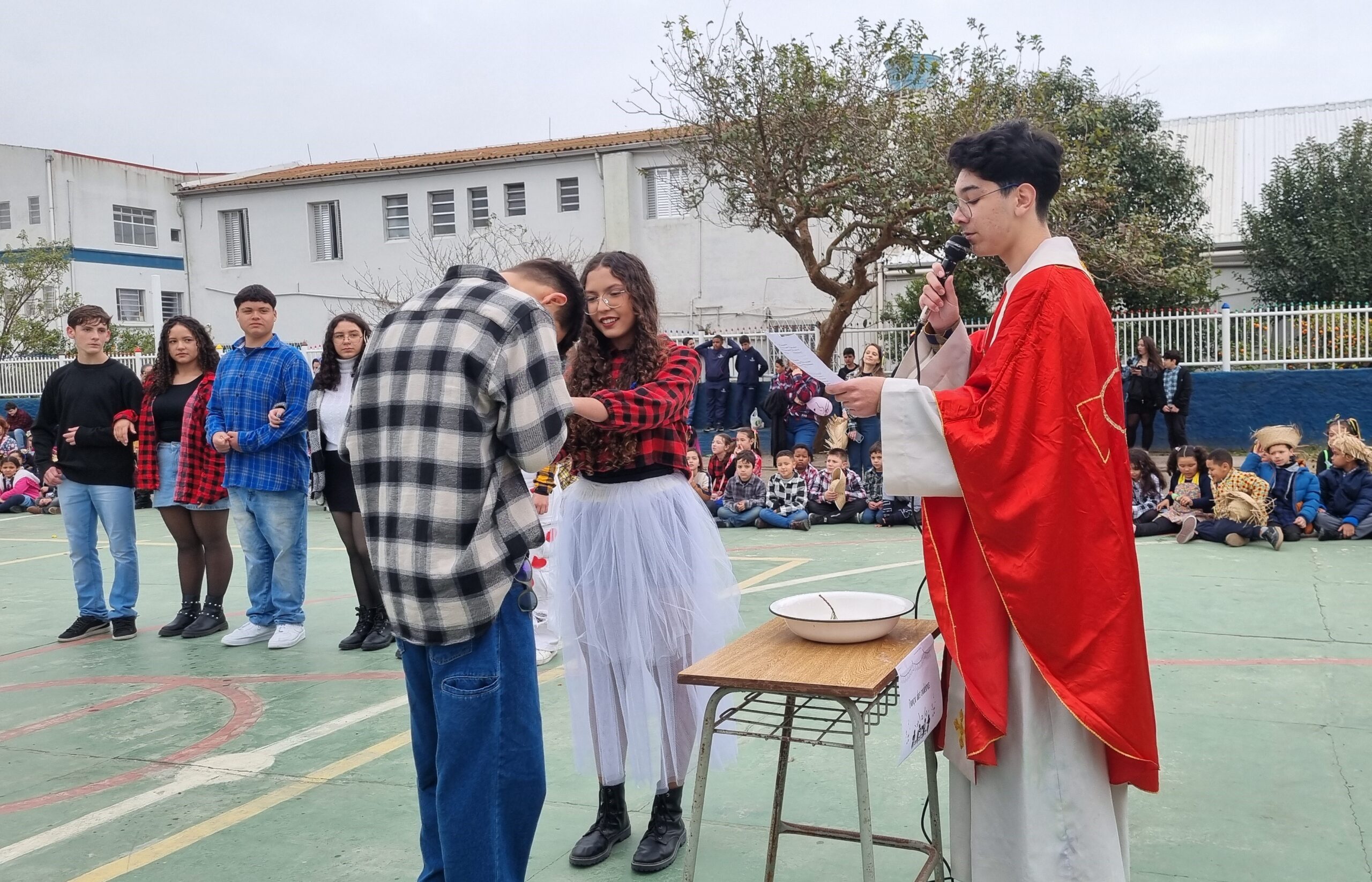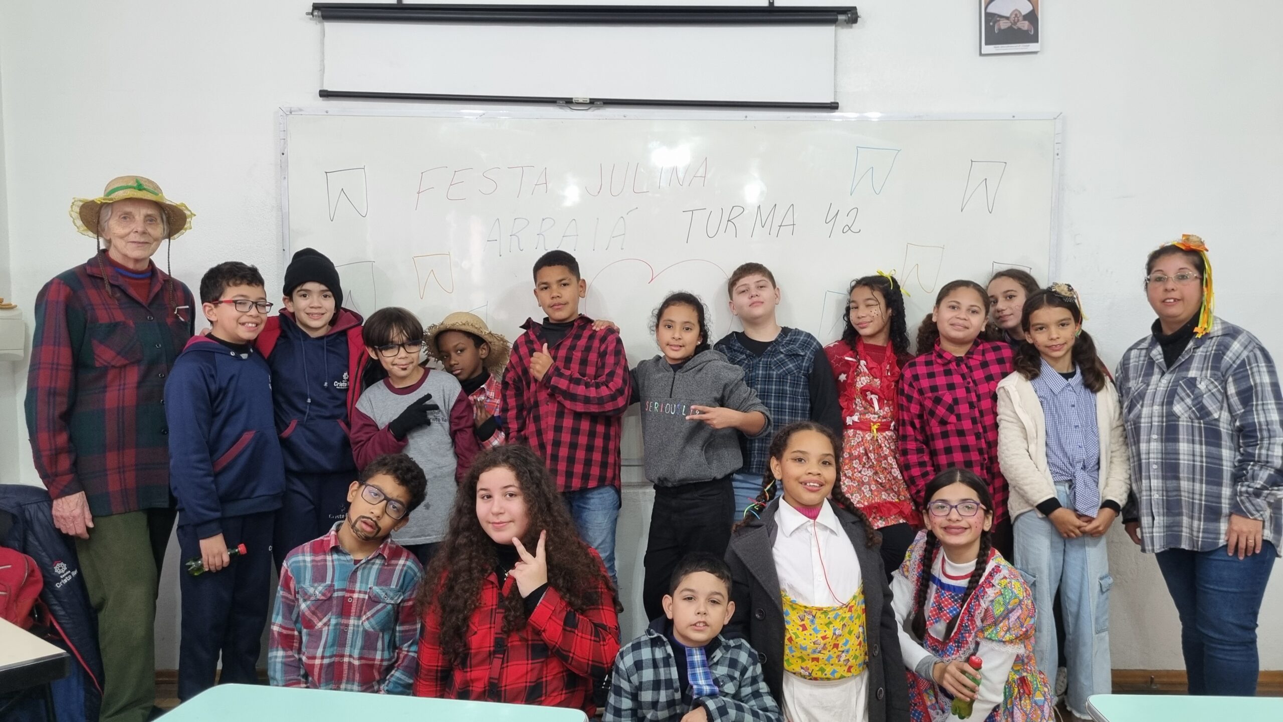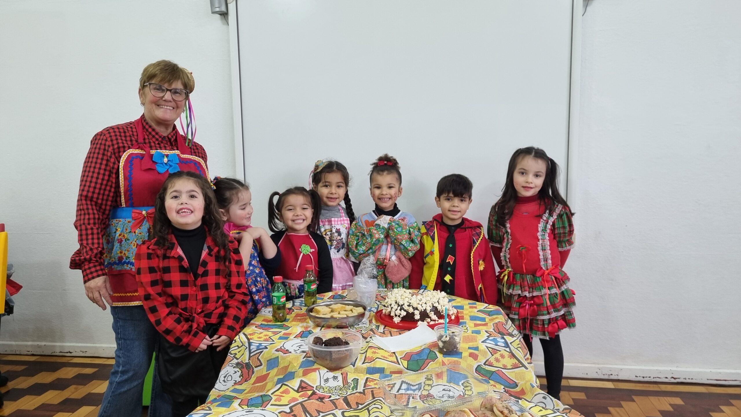Neste ano, a comemoração junina aconteceu em 20 de julho, com a presença animada de estudantes e professores, fortalecendo laços de amizade. O dia teve uma atmosfera de felicidade e contentamento, com muitas atividades divertidas e mesas decoradas de forma caprichosa por cada grupo de alunos dos anos finais. Enquanto isso, as crianças da Educação Infantil e dos Anos iniciais se divertiram com seus professores, desfrutando de brincadeiras e guloseimas deliciosas. Os estudantes também apreciaram uma encenação de casamento caipira promovida pelos colegas dos anos finais, seguida por muita música e dança. Para encerrar a manhã, todos os alunos se uniram em uma integração calorosa, que culminou na tradicional dança das cadeiras em conjunto com as crianças mais novas.