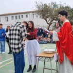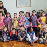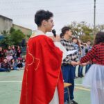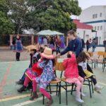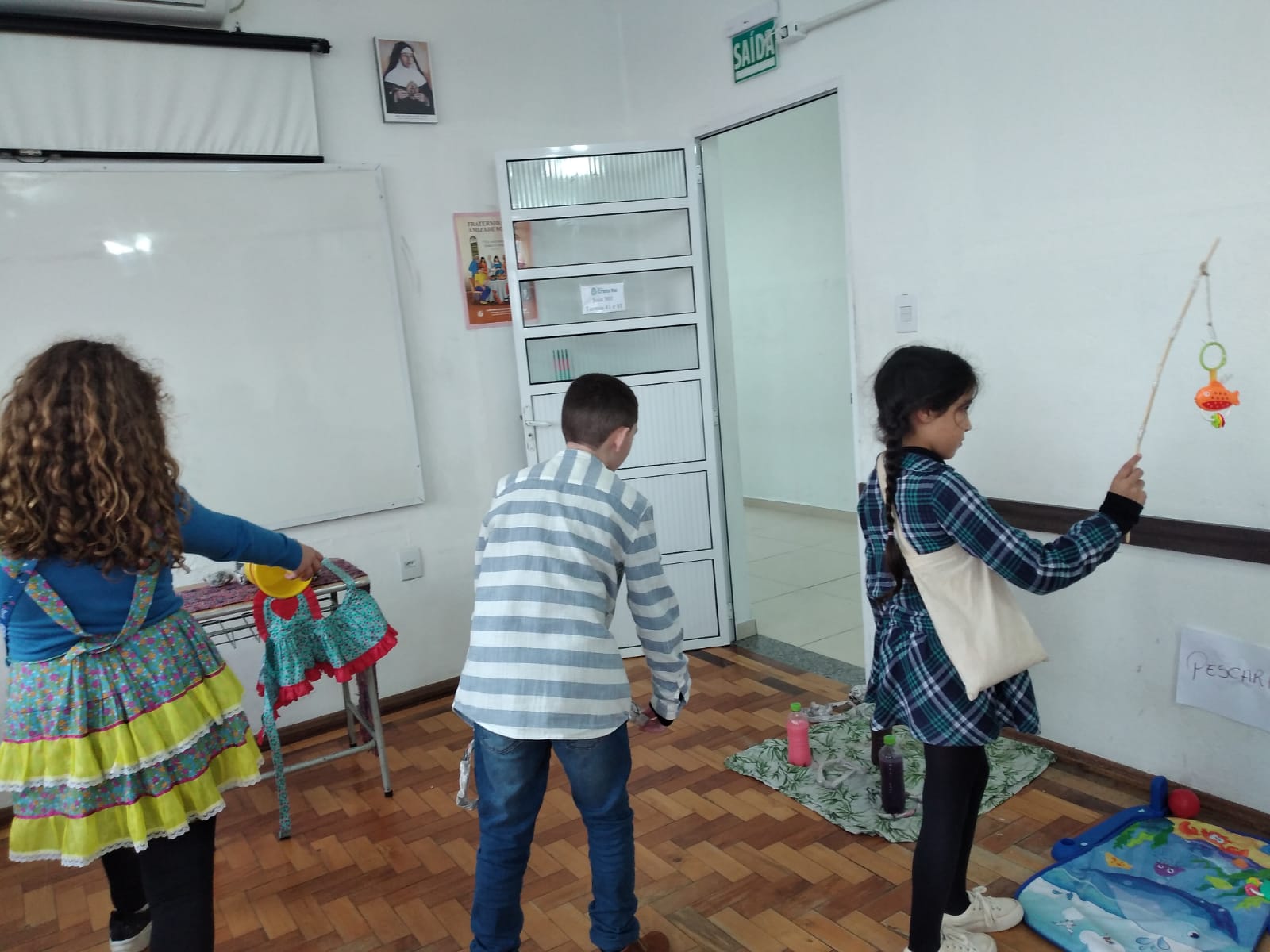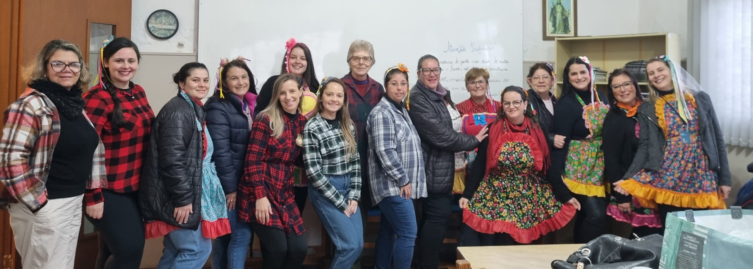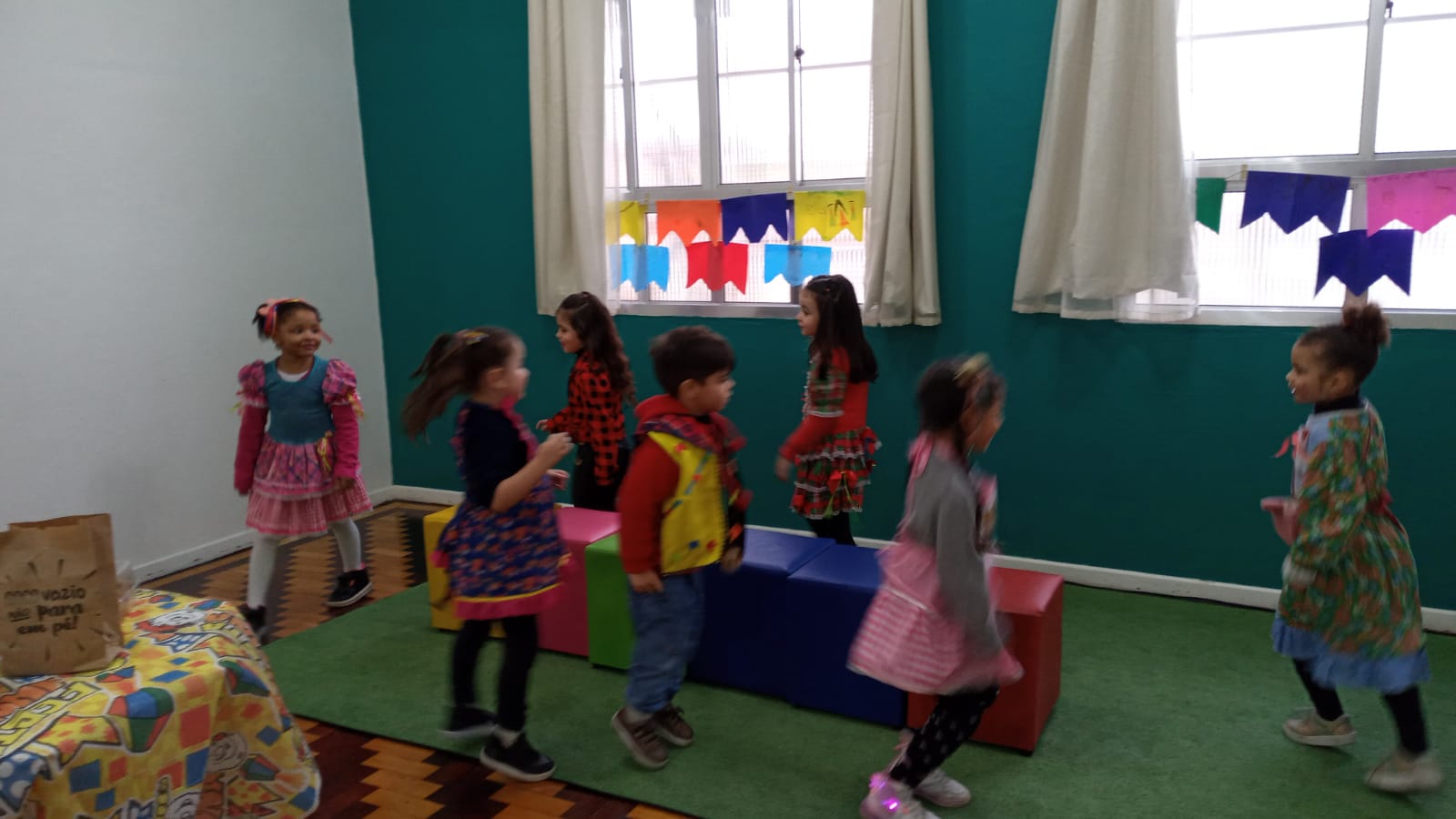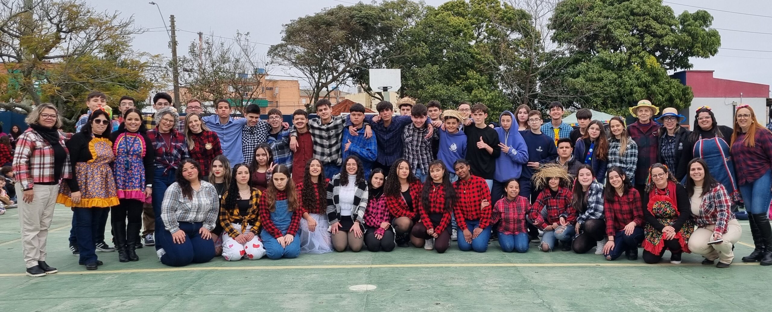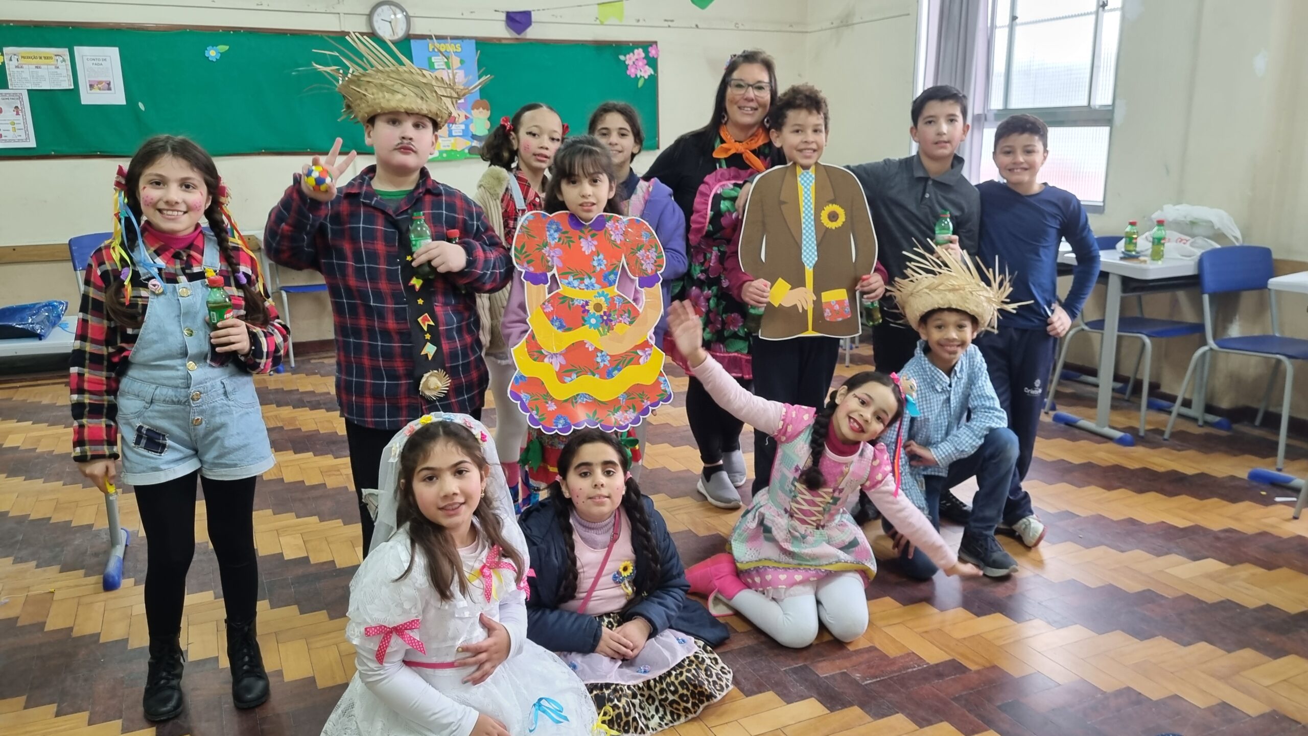 Neste ano, a comemoração junina aconteceu em 20 de julho, com a presença animada de estudantes e professores, fortalecendo laços de amizade. O dia teve uma atmosfera de felicidade e contentamento, com muitas atividades divertidas e mesas decoradas de forma caprichosa por cada grupo de alunos dos anos finais. Enquanto isso, as crianças da Educação Infantil e dos Anos iniciais se divertiram com seus professores, desfrutando de brincadeiras e guloseimas deliciosas. Os estudantes também apreciaram uma encenação de casamento caipira promovida pelos colegas dos anos finais, seguida por muita música e dança. Para encerrar a manhã, todos os alunos se uniram em uma integração calorosa, que culminou na tradicional dança das cadeiras em conjunto com as crianças mais novas.