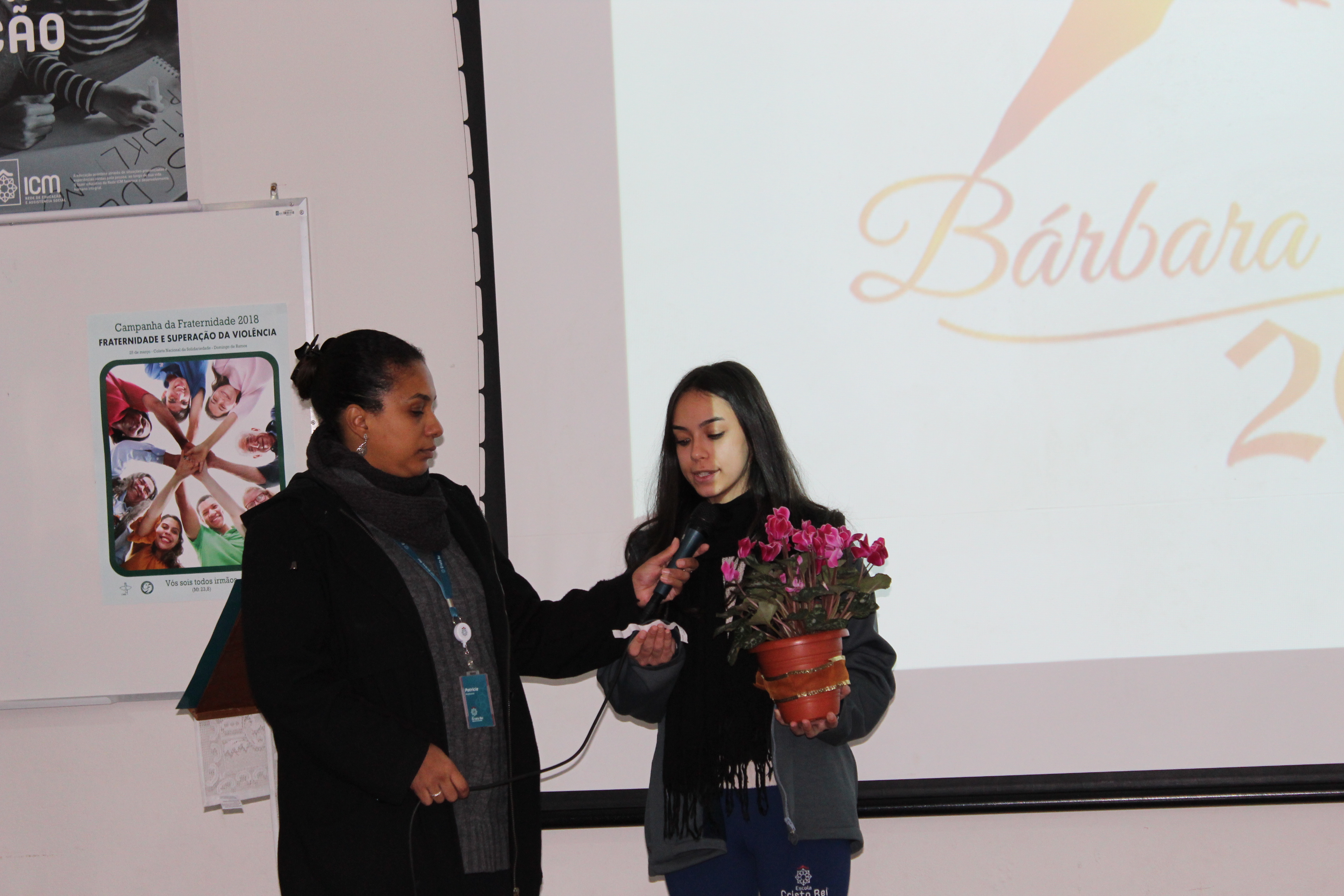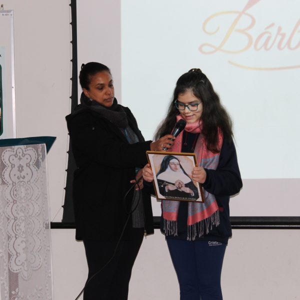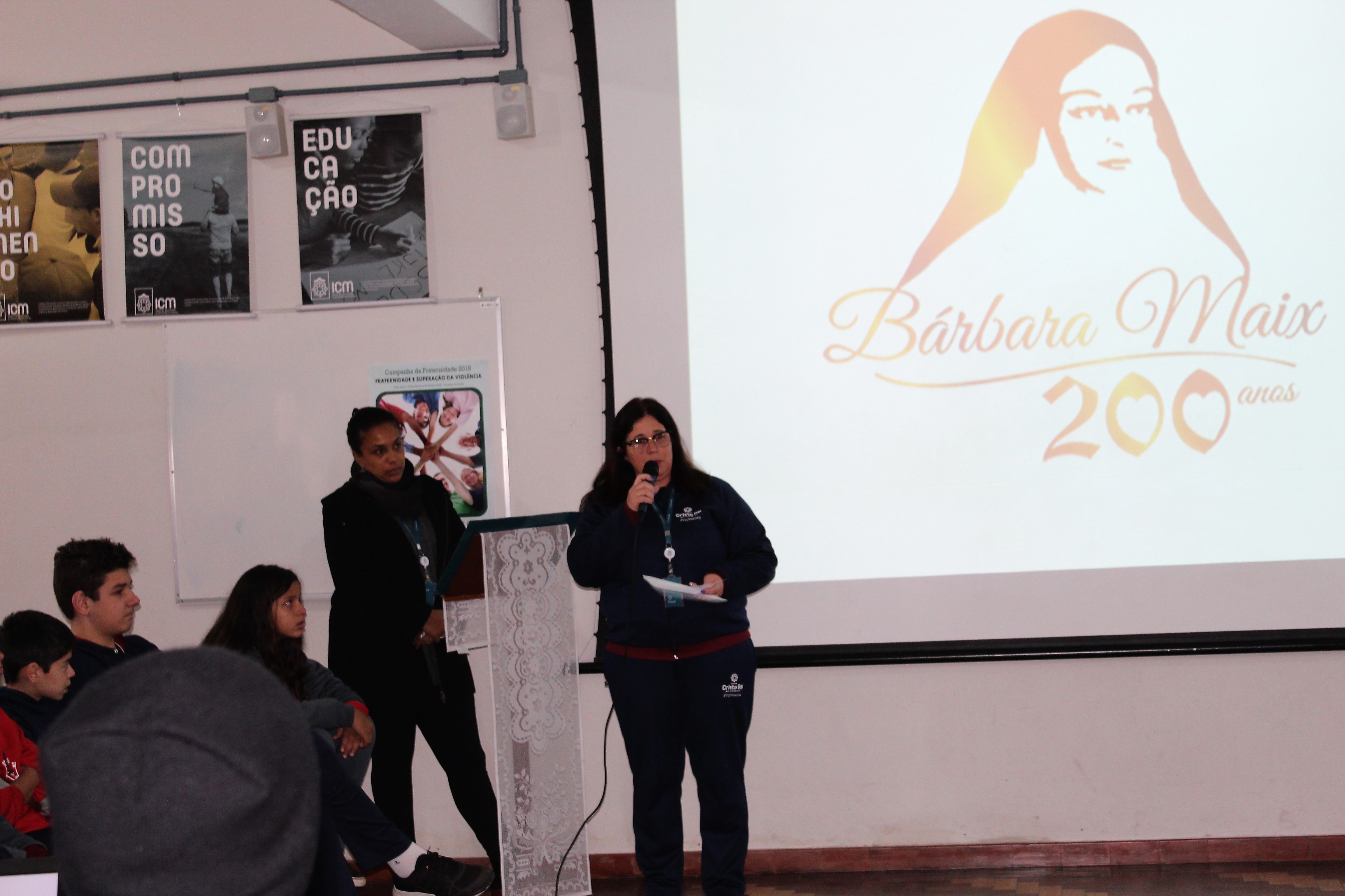 O dia do Bicentenário de nascimento de Bárbara Maix foi celebrado com muita alegria e entusiasmo em ambos os turnos na escola. Os Anos Finais tiveram uma retrospectiva de todas as atividades referentes a Bárbara no transcurso do ano. Os alunos criaram belos vídeos, houve o testemunho de várias pessoas, o hino da Beatificação deu a tônica celebrativa. Os Anos Iniciais e Educação Infantil, como sempre, muito entusiasmados para celebrar a pessoa de Bárbara Maix. Entre outras, os alunos apresentaram, aos pais, a vida de Bárbara através de narração e do canto. A área coberta foi totalmente decorada com cartazes e um cenário, espécie de uma gruta, deu destaque ao ambiente motivador para tão esperado dia.