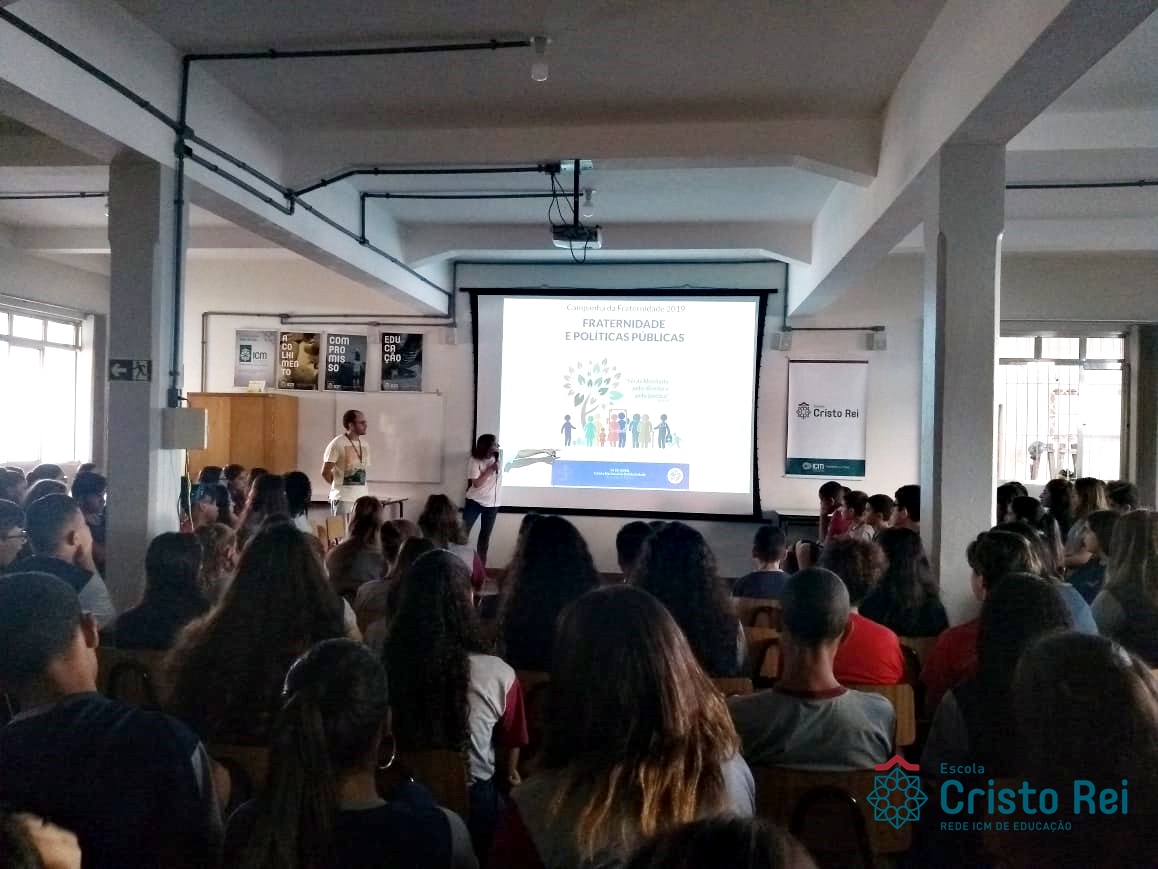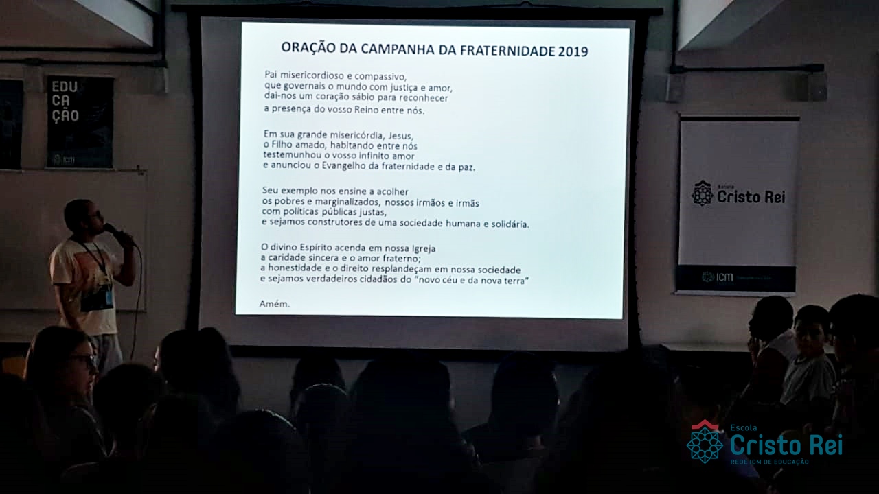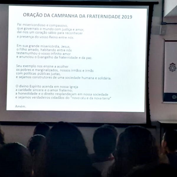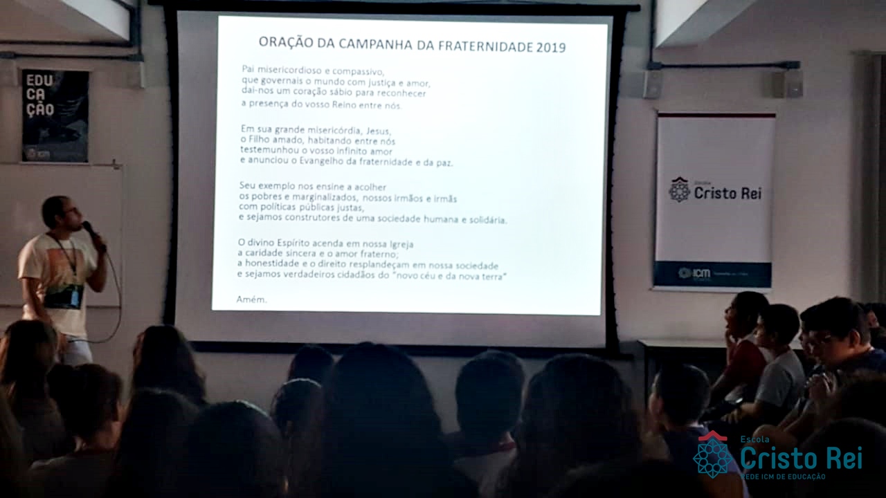 Nesta última sexta feira (08 de março) aconteceu o lançamento da Campanha da Fraternidade em nossa escola. O momento foi conduzido pela Pastoral da Educação aos alunos. O tema deste ano traz o título “Fraternidade e Políticas Públicas”. Segundo o professor Diego, é um grande momento para se discutir quais políticas públicas fazem parte do cotidiano de nossos alunos e no que isto implica, dentro do tempo quaresmal.