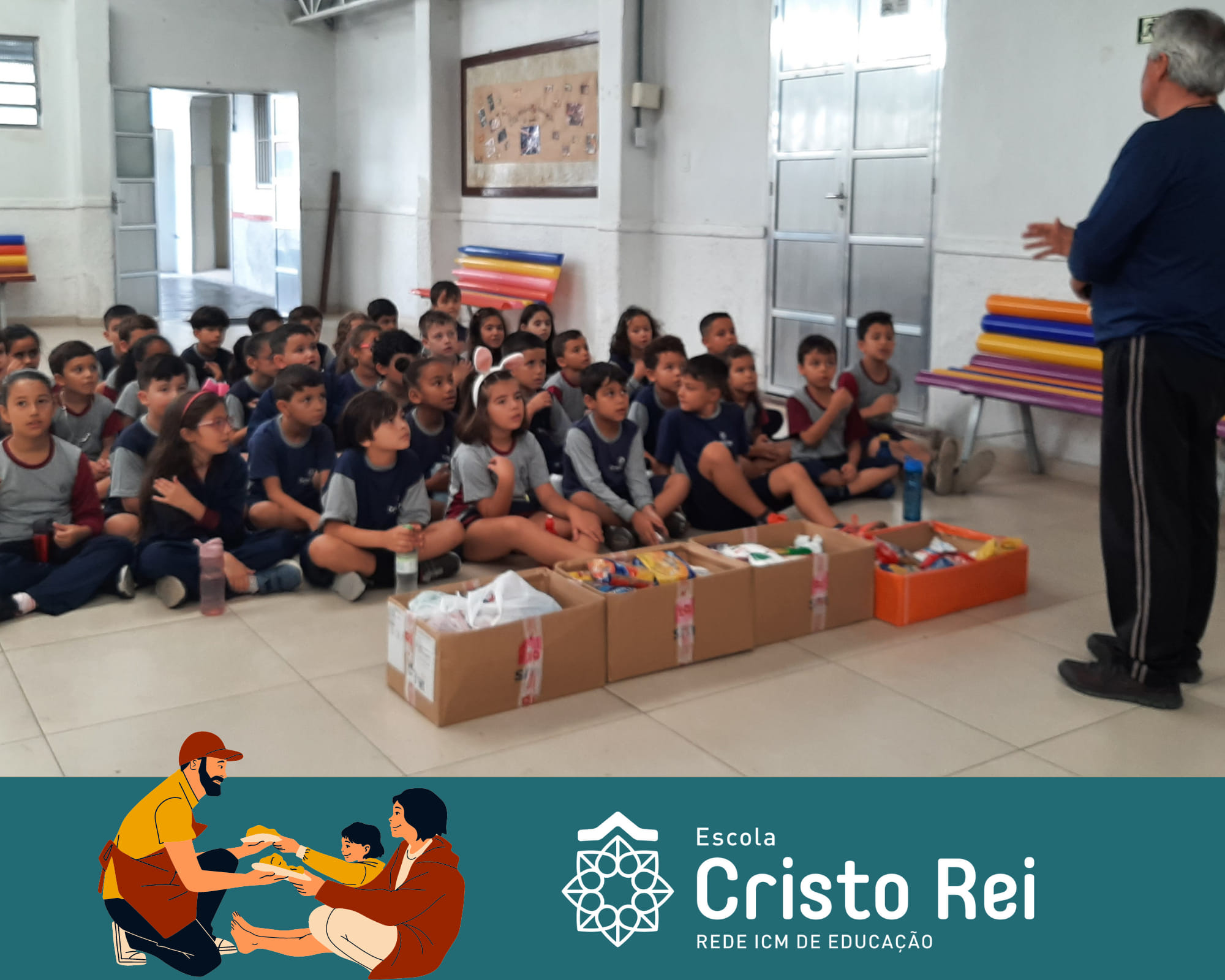 As turmas do 2º ano arregaçaram as mangas e levaram a sério o nosso projeto sobre a fome e acreditaram que fazer o bem faz bem! Conseguimos juntos arrecadar vários alimentos para ajudar a “Comunidade Renascer”. O senhor Valdir Bernardo levou os alimentos que irão ajudar na preparação de um ótimo almoço para aqueles que estão em situação difícil e precisando de ajuda.