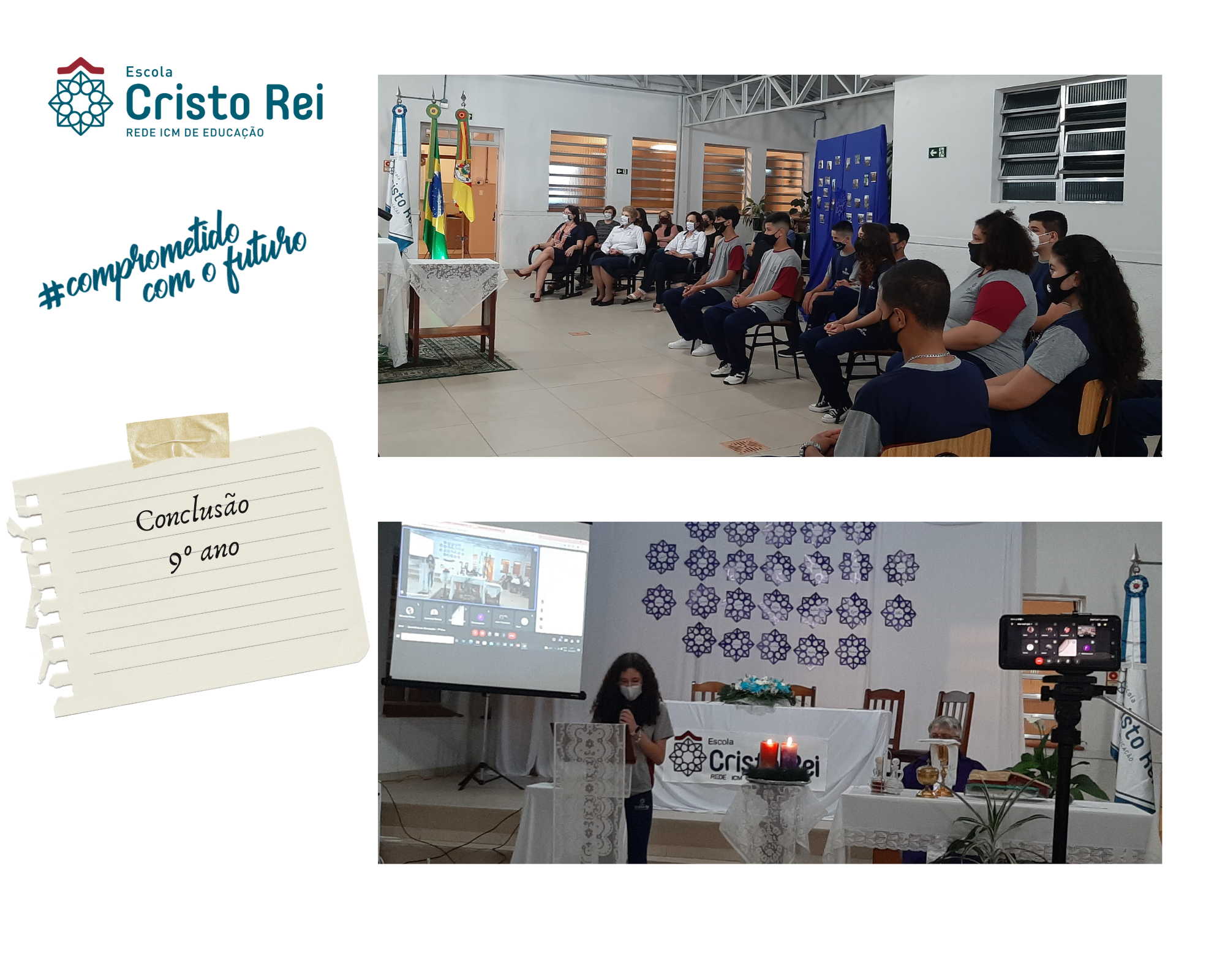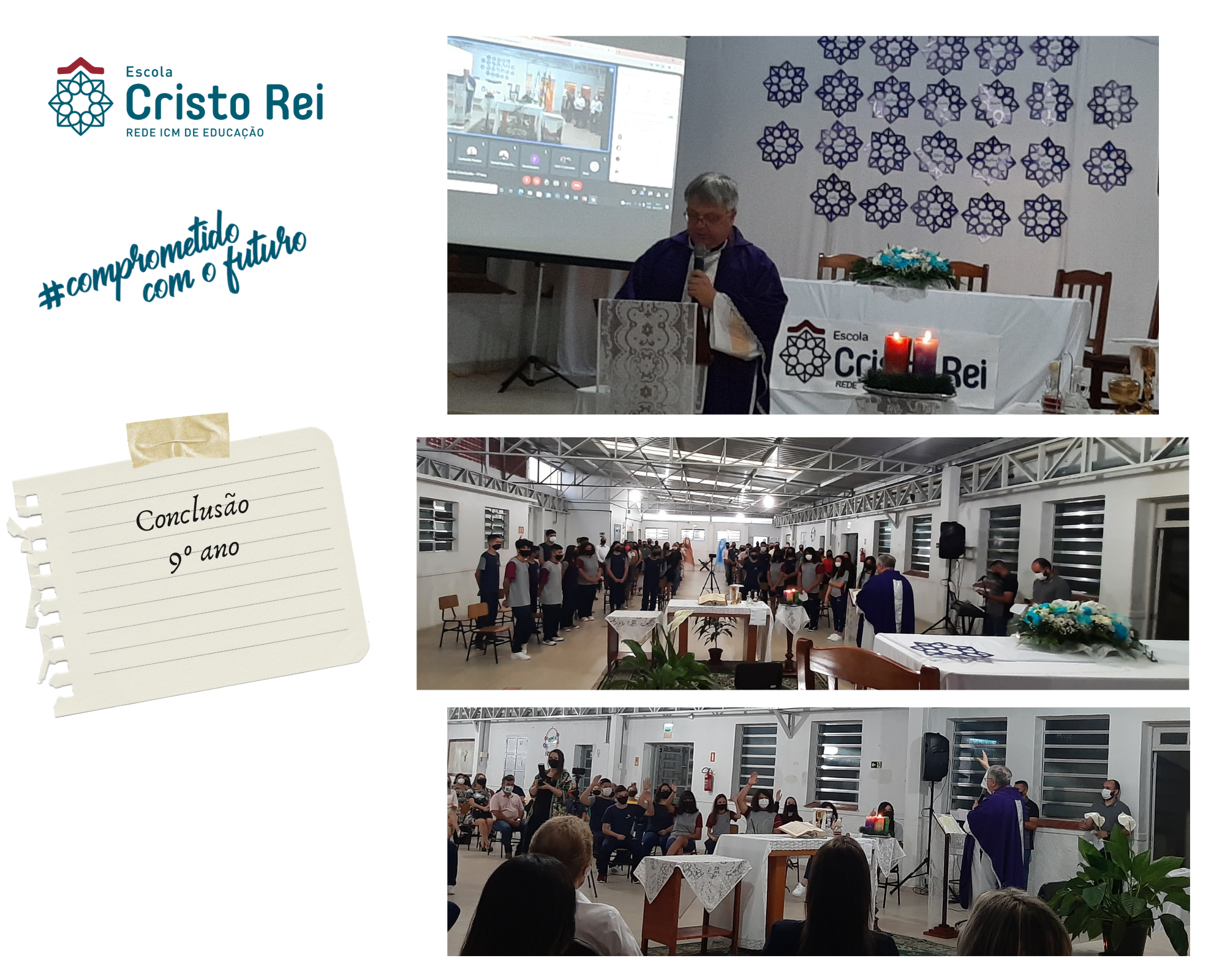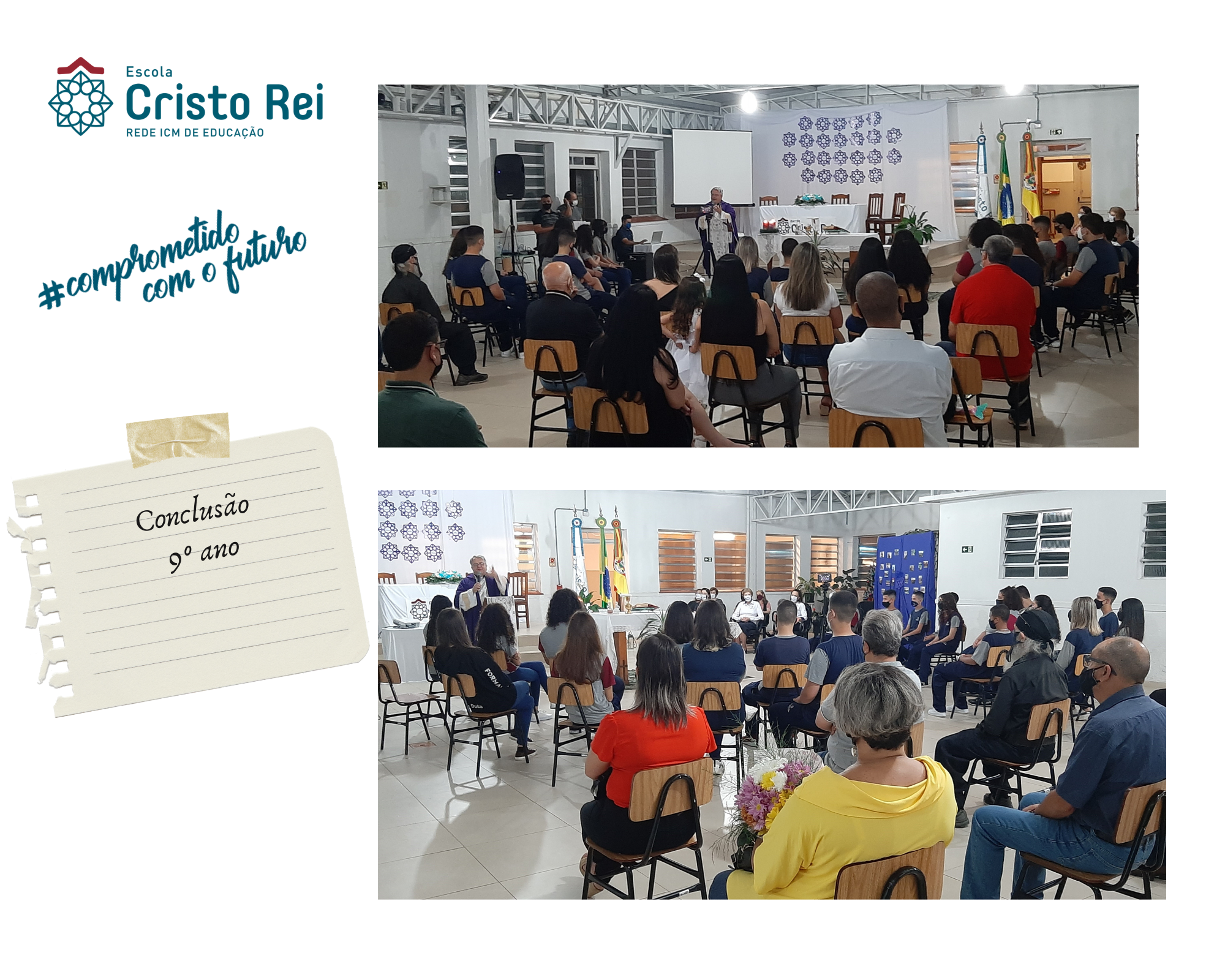 No dia 20 de dezembro aconteceu a Cerimônia de Conclusão dos estudantes do 9º ano. Ocorreu uma missa conduzida pelo Padre Gil em homenagem a esse acontecimento tão especial.