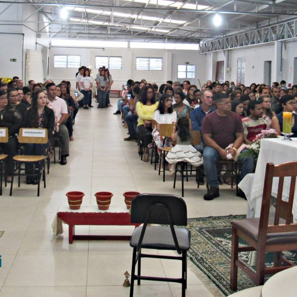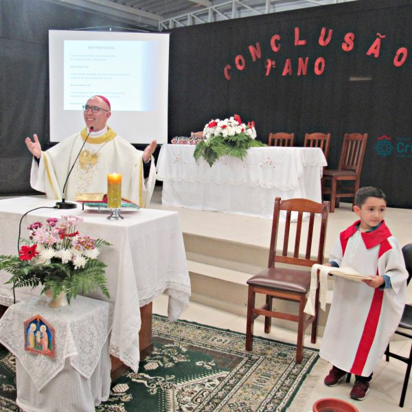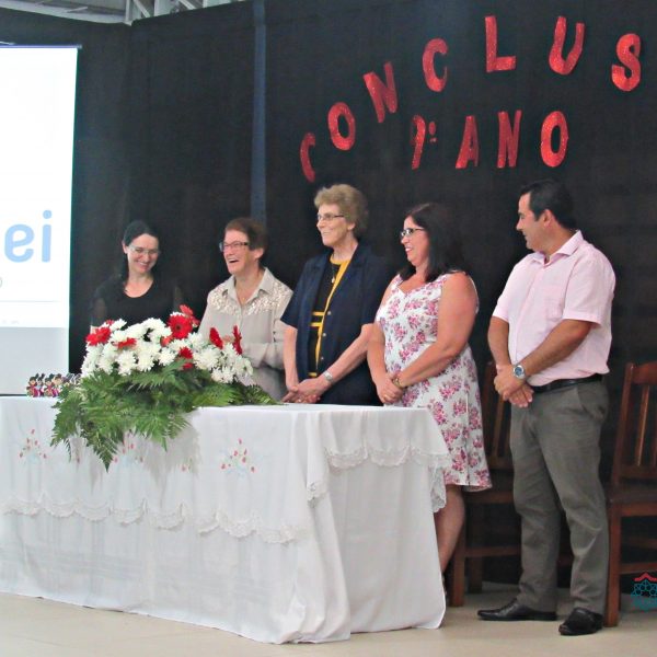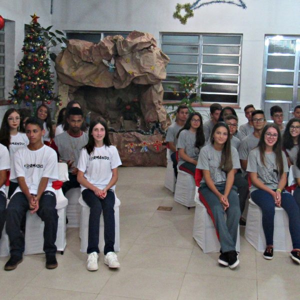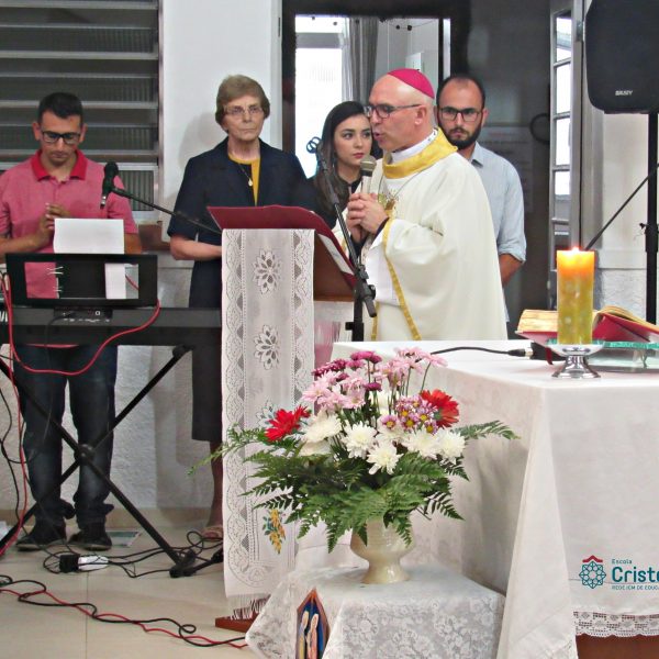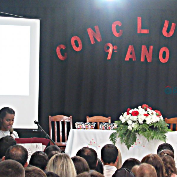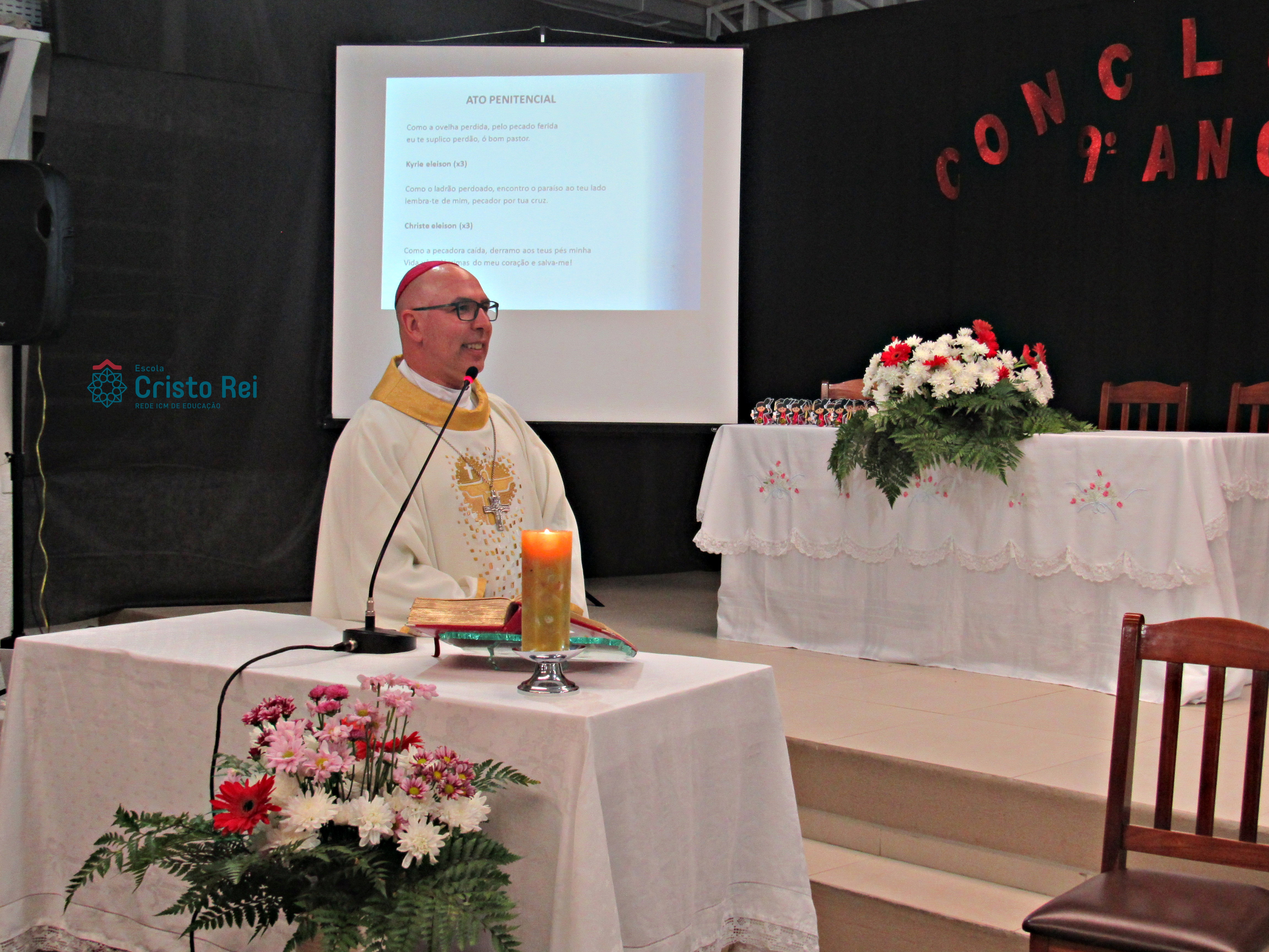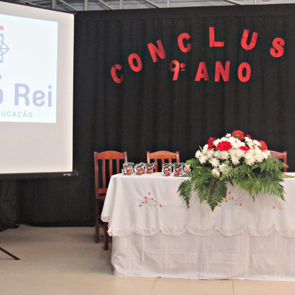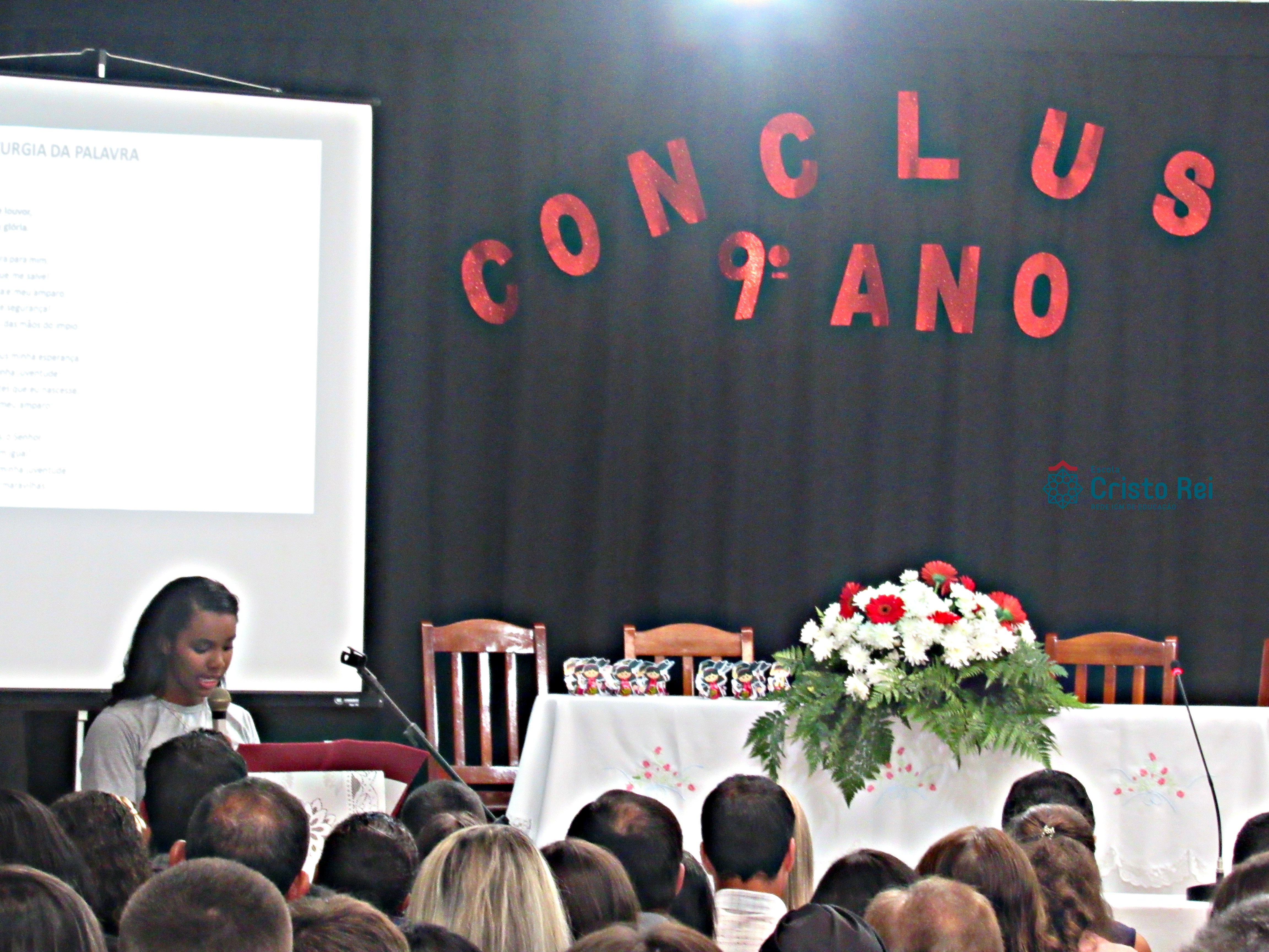No corrente mês tivemos a conclusão do nono ano, a qual contou com uma Celebração Eucarística emocionante presidida pelo Bispo D. Ricardo Hoepers, com a participação da direção, professores, alunos e familiares. Dom Ricardo em sua mensagem destacou três pontos: a sintonia primeira com Deus pela oração, a relação com o próximo e a necessária saúde espiritual e corporal de cada um para uma vida feliz. Na cerimônia de entrega dos certificados a professora Regente Valdite Helena Caetano sintetizou em imagens e palavras o carinho com seus alunos. É sempre bom perceber o quanto a Escola além de proporcionar aprendizagem, também contribui para valorizar a vida com gestos de amizade, amor ao próximo, solidariedade, fortalecendo os vínculos afetivos.