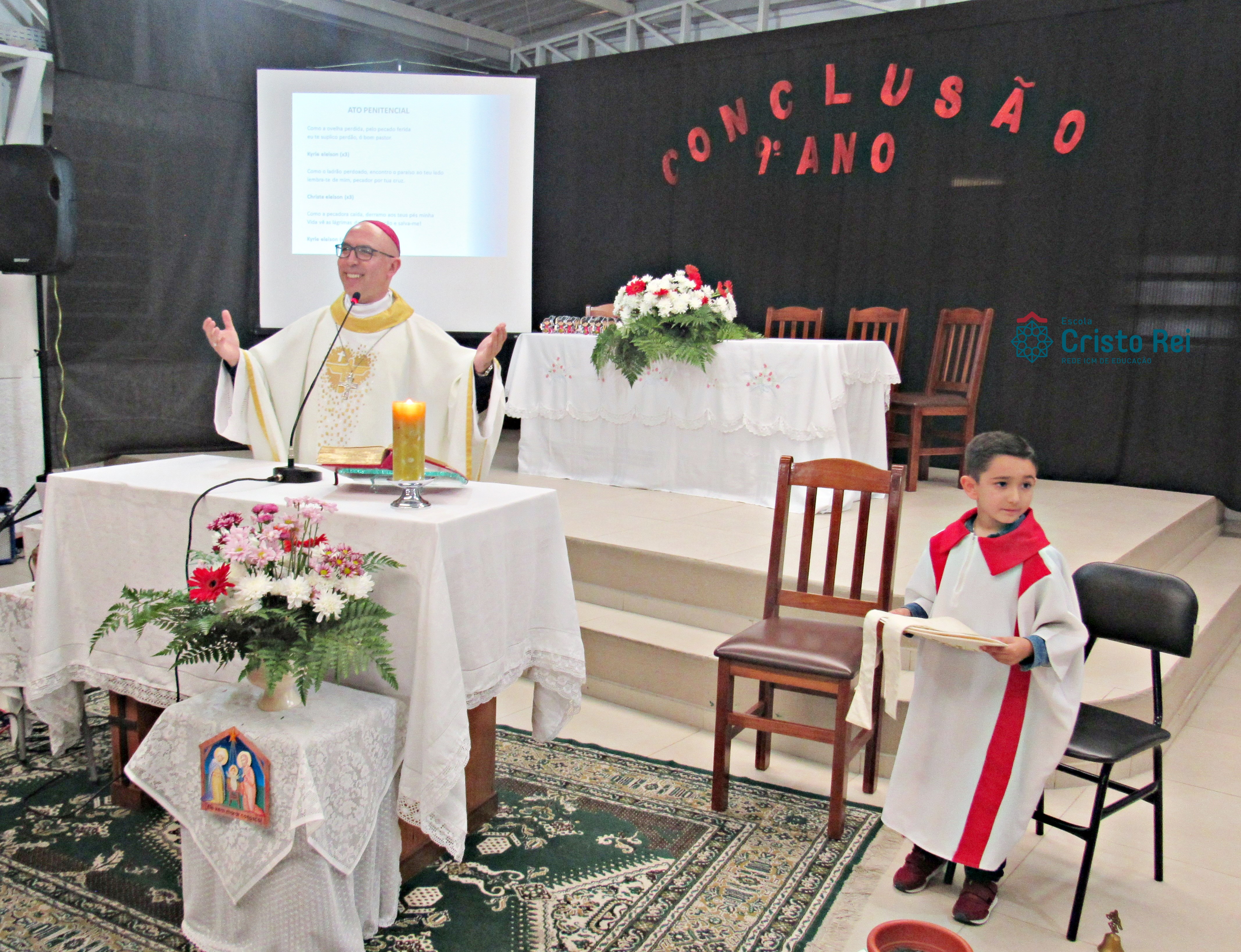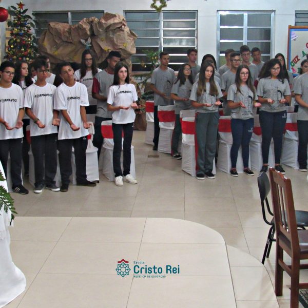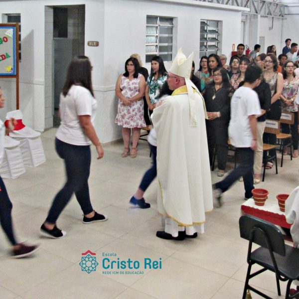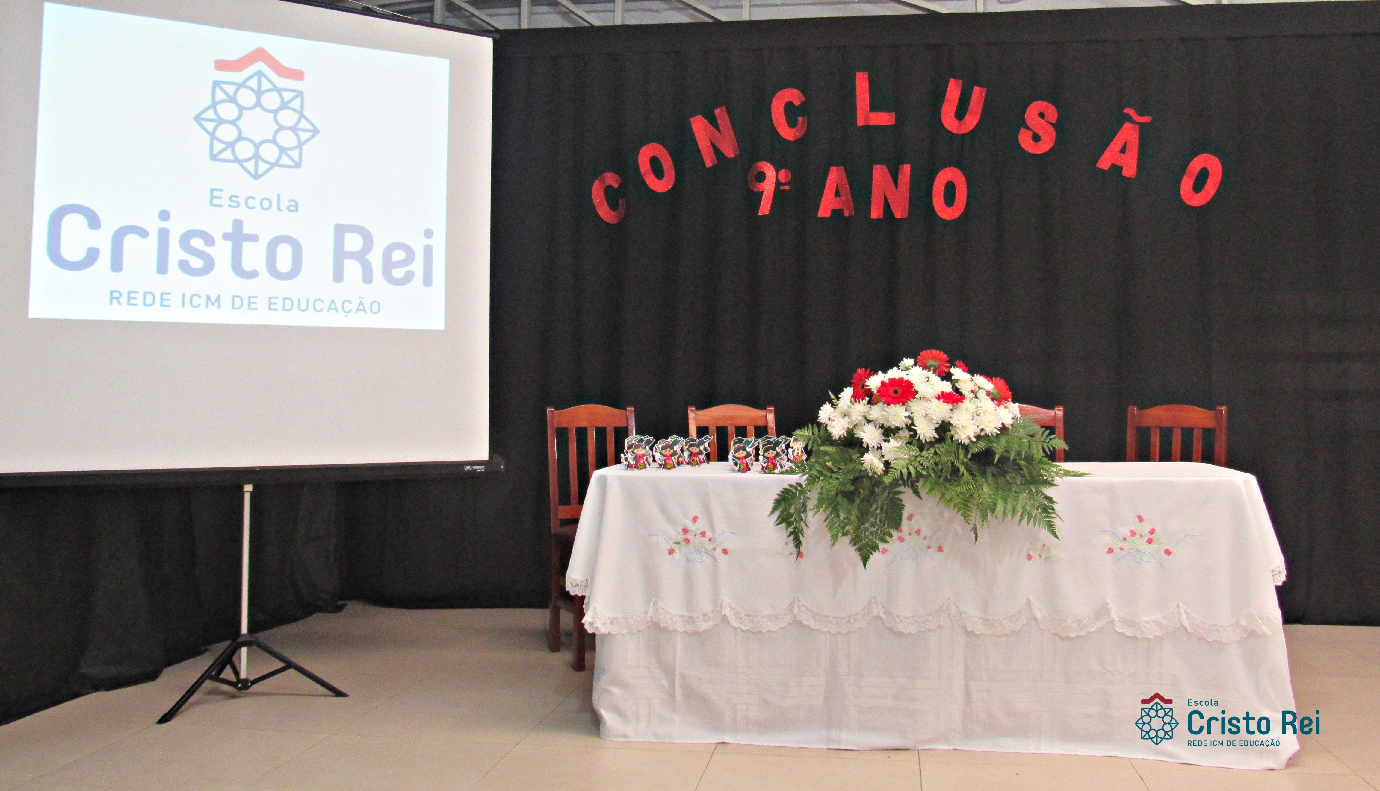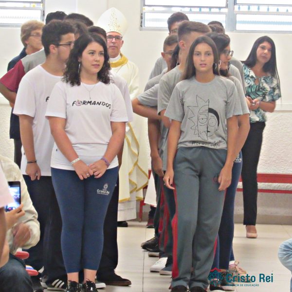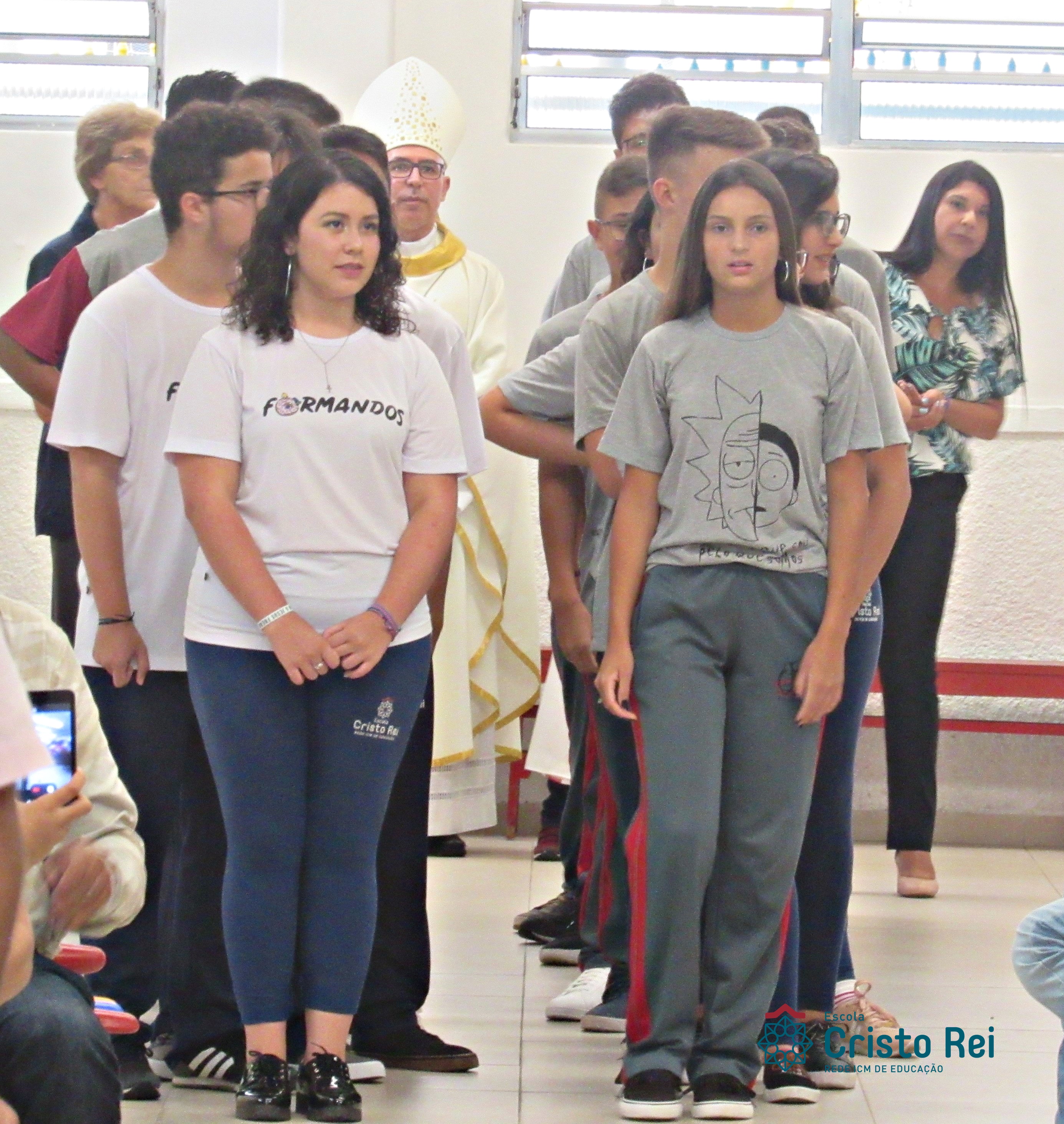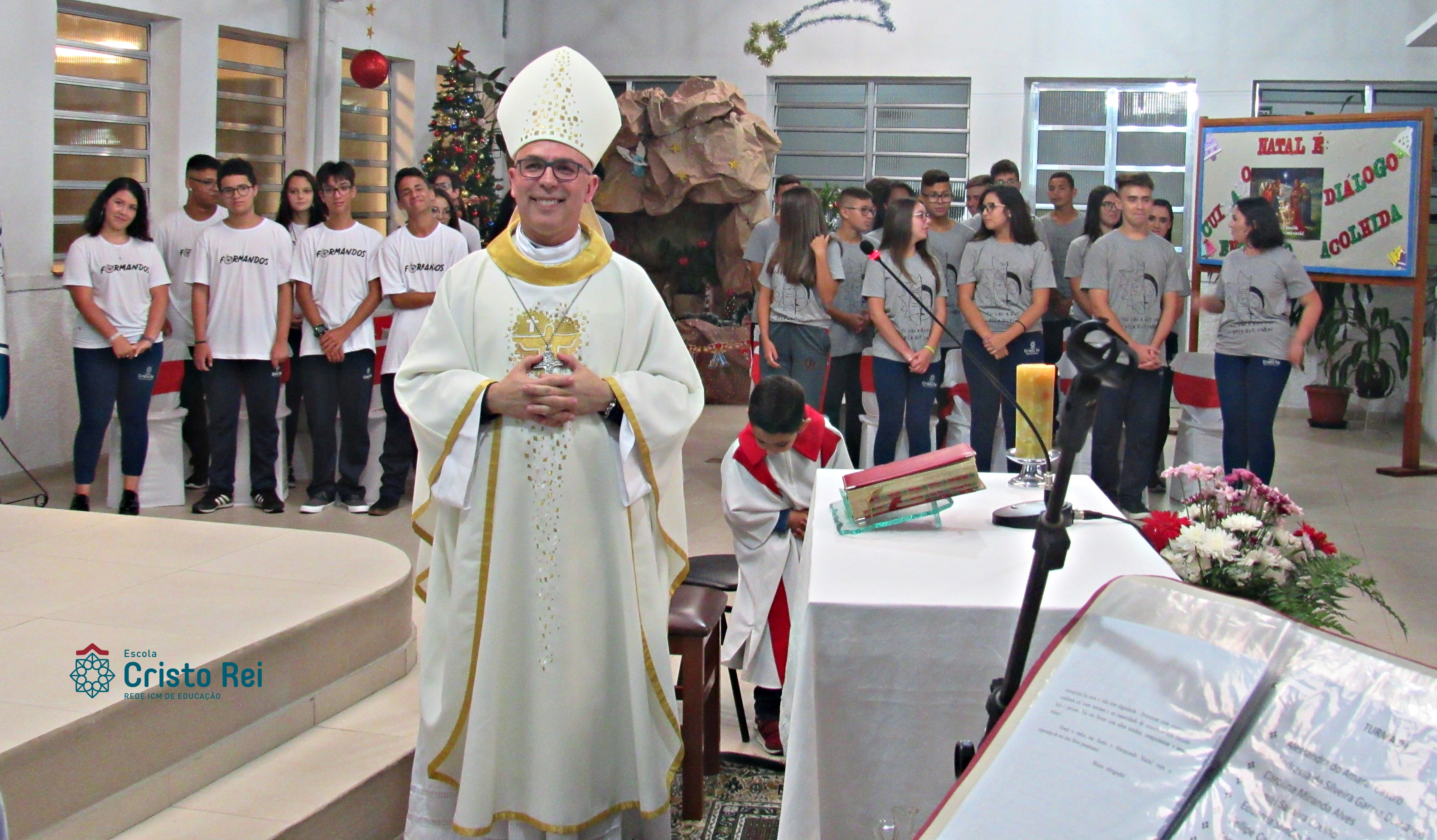 No corrente mês tivemos a conclusão do nono ano, a qual contou com uma Celebração Eucarística emocionante presidida pelo Bispo D. Ricardo Hoepers, com a participação da direção, professores, alunos e familiares. Dom Ricardo em sua mensagem destacou três pontos: a sintonia primeira com Deus pela oração, a relação com o próximo e a necessária saúde espiritual e corporal de cada um para uma vida feliz. Na cerimônia de entrega dos certificados a professora Regente Valdite Helena Caetano sintetizou em imagens e palavras o carinho com seus alunos. É sempre bom perceber o quanto a Escola além de proporcionar aprendizagem, também contribui para valorizar a vida com gestos de amizade, amor ao próximo, solidariedade, fortalecendo os vínculos afetivos.