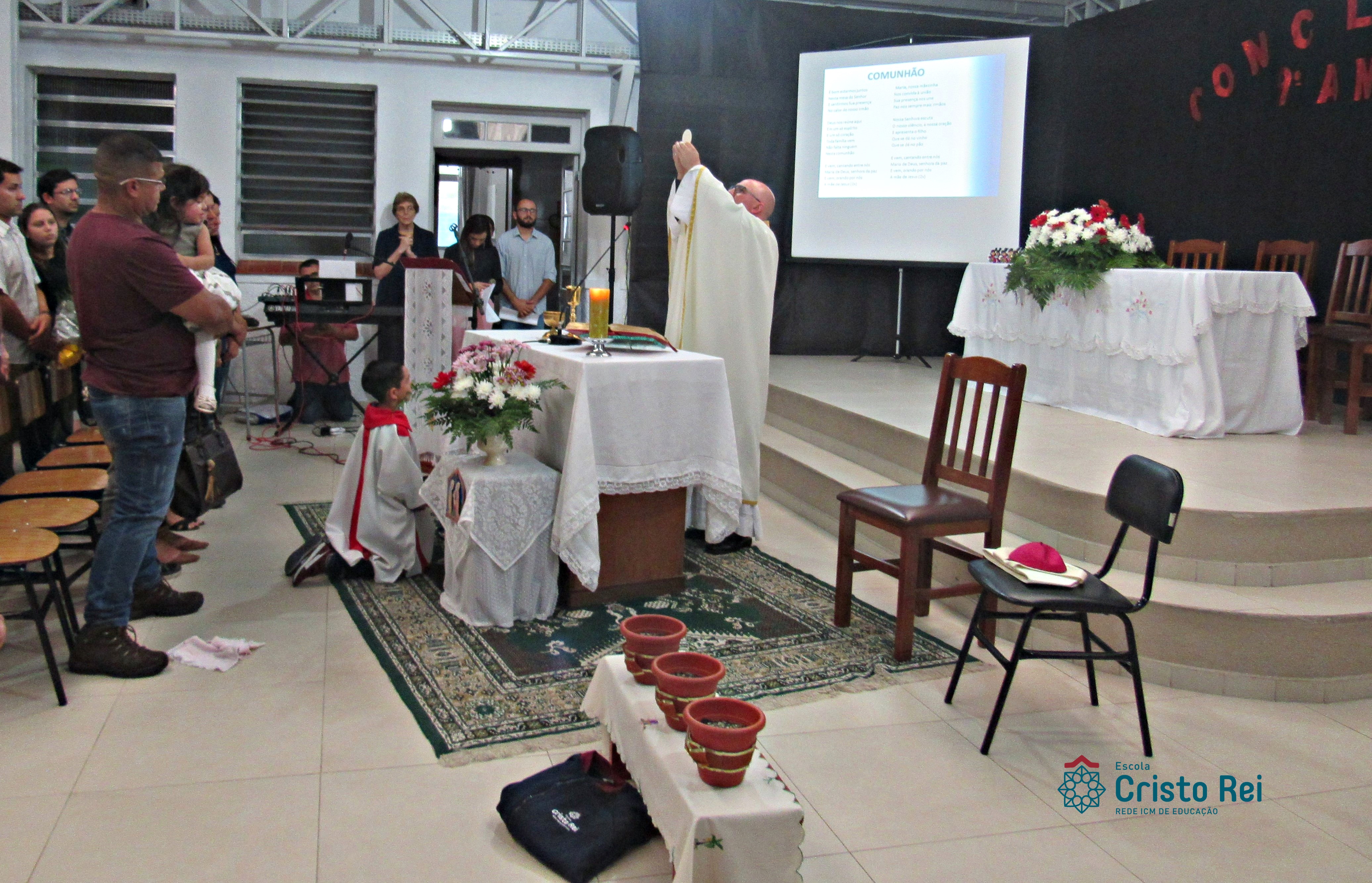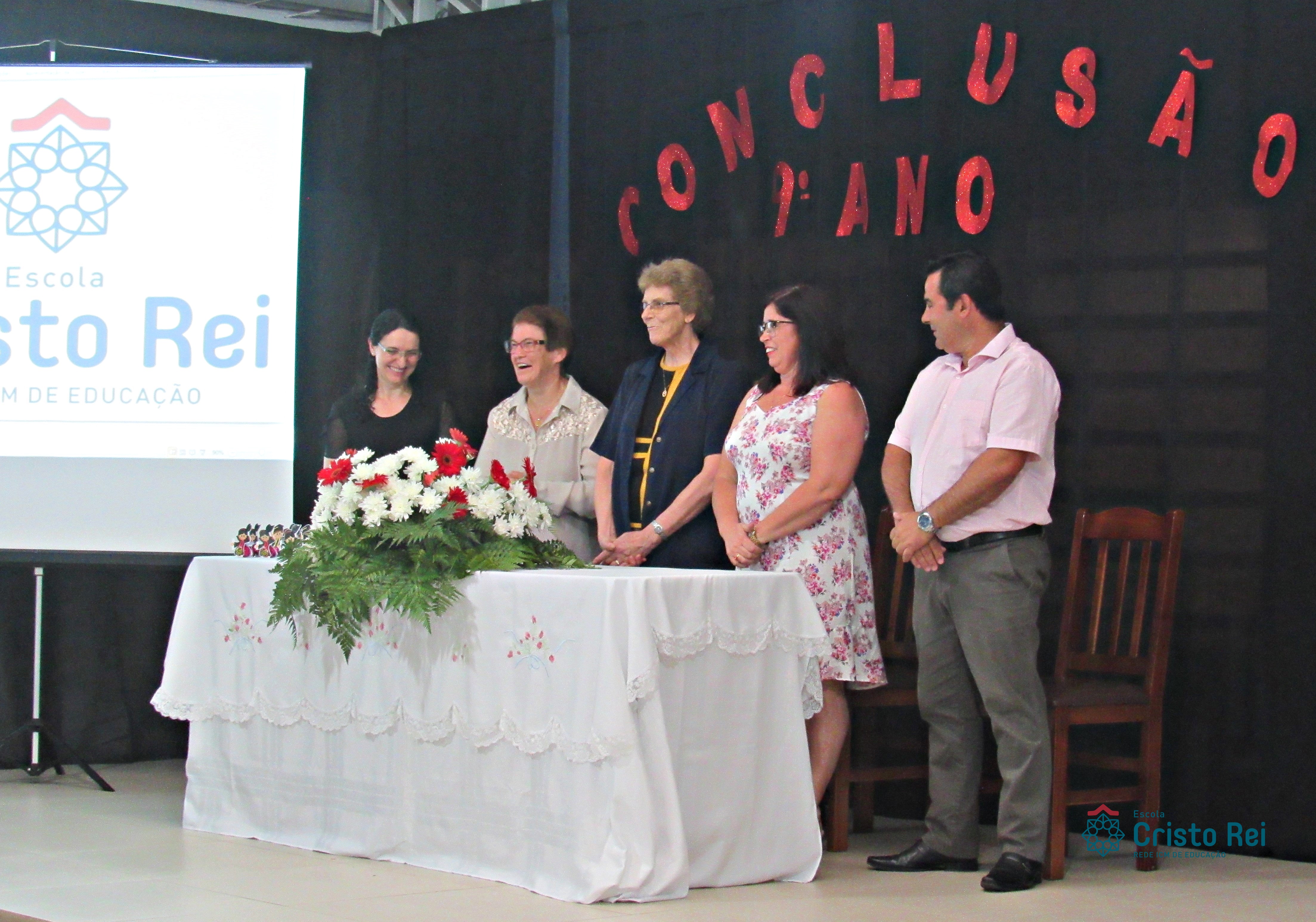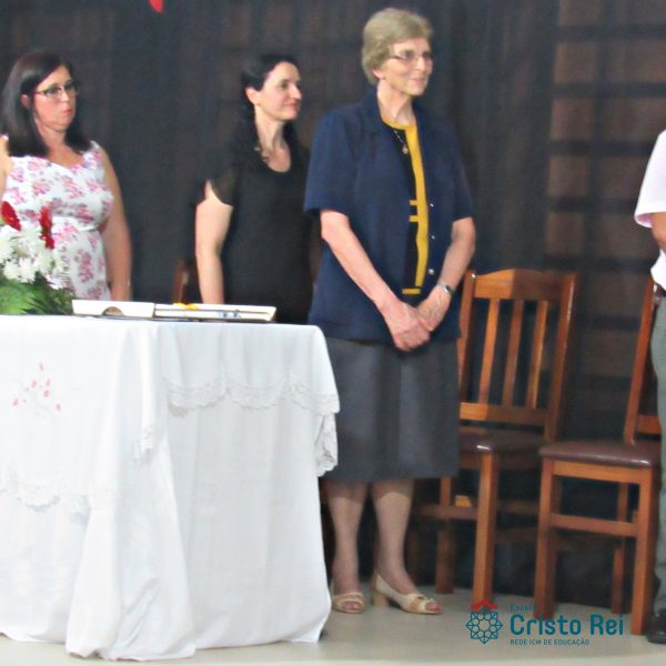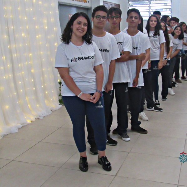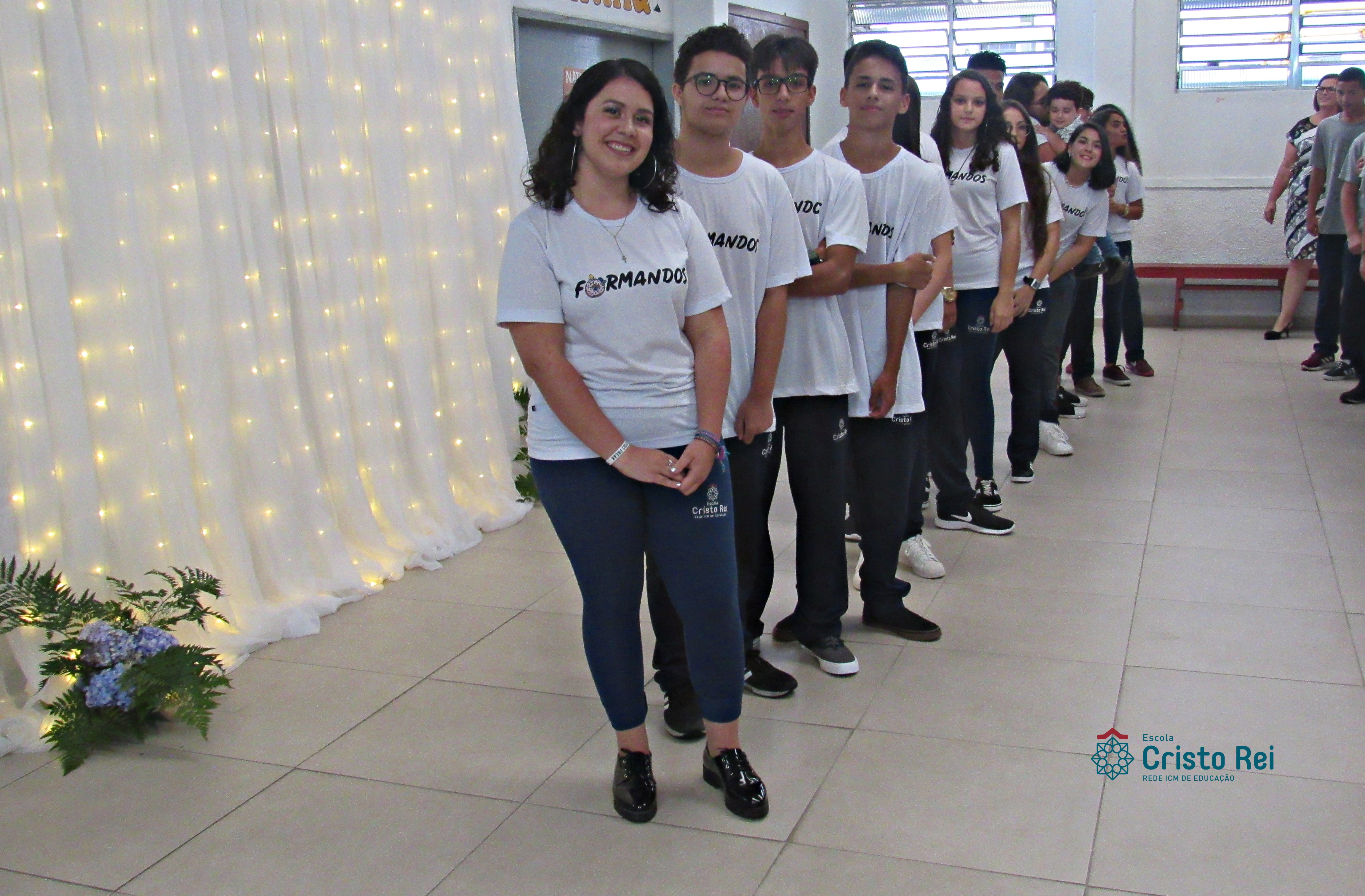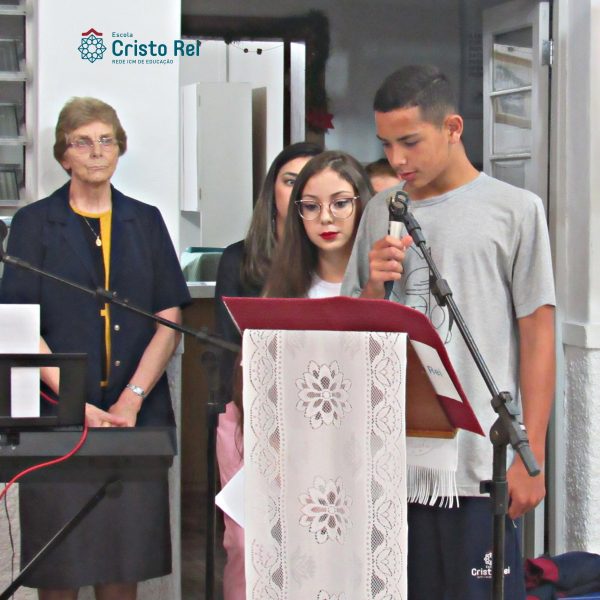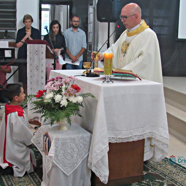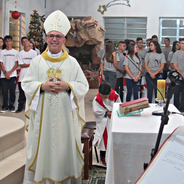 No corrente mês tivemos a conclusão do nono ano, a qual contou com uma Celebração Eucarística emocionante presidida pelo Bispo D. Ricardo Hoepers, com a participação da direção, professores, alunos e familiares. Dom Ricardo em sua mensagem destacou três pontos: a sintonia primeira com Deus pela oração, a relação com o próximo e a necessária saúde espiritual e corporal de cada um para uma vida feliz. Na cerimônia de entrega dos certificados a professora Regente Valdite Helena Caetano sintetizou em imagens e palavras o carinho com seus alunos. É sempre bom perceber o quanto a Escola além de proporcionar aprendizagem, também contribui para valorizar a vida com gestos de amizade, amor ao próximo, solidariedade, fortalecendo os vínculos afetivos.