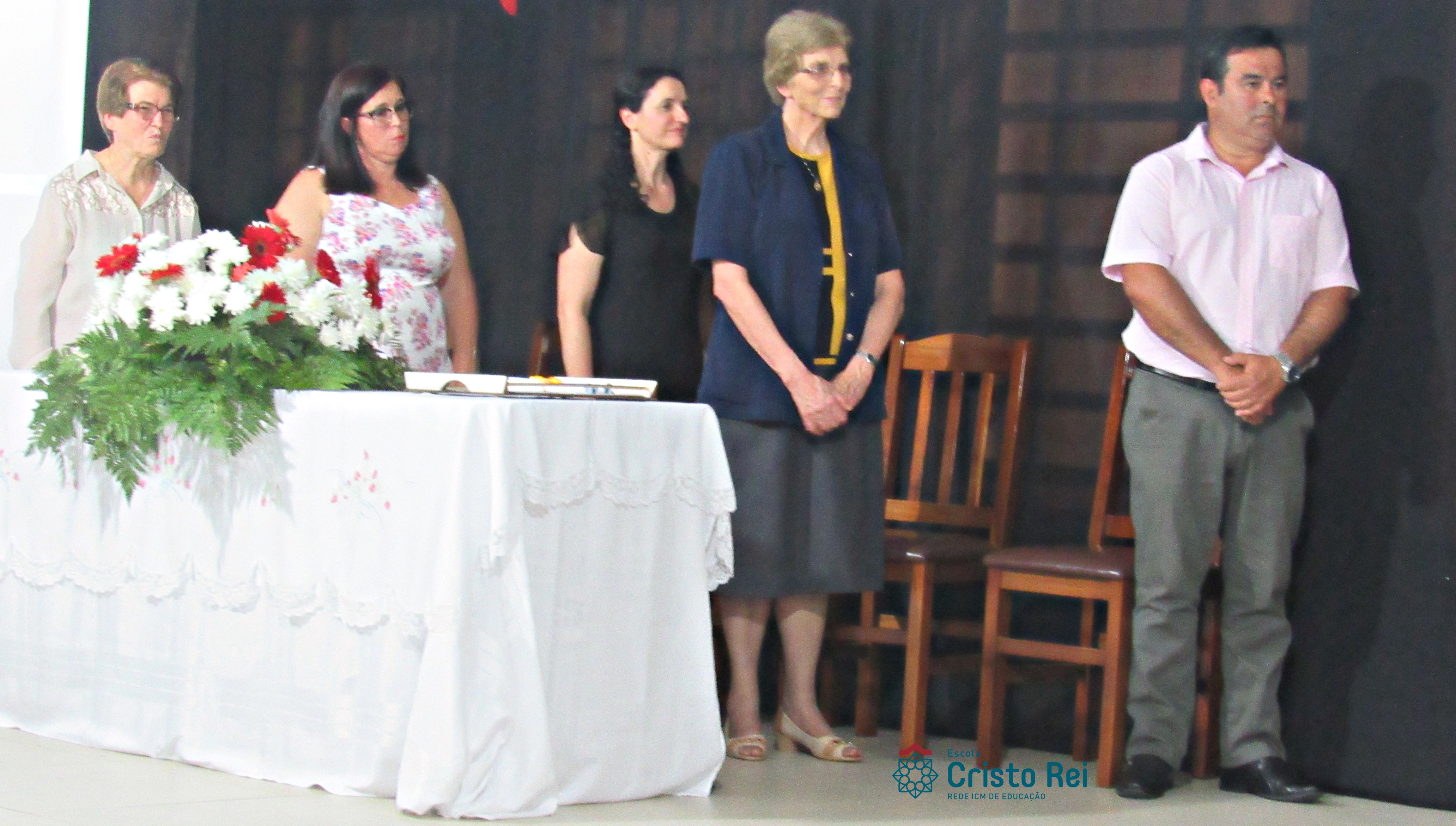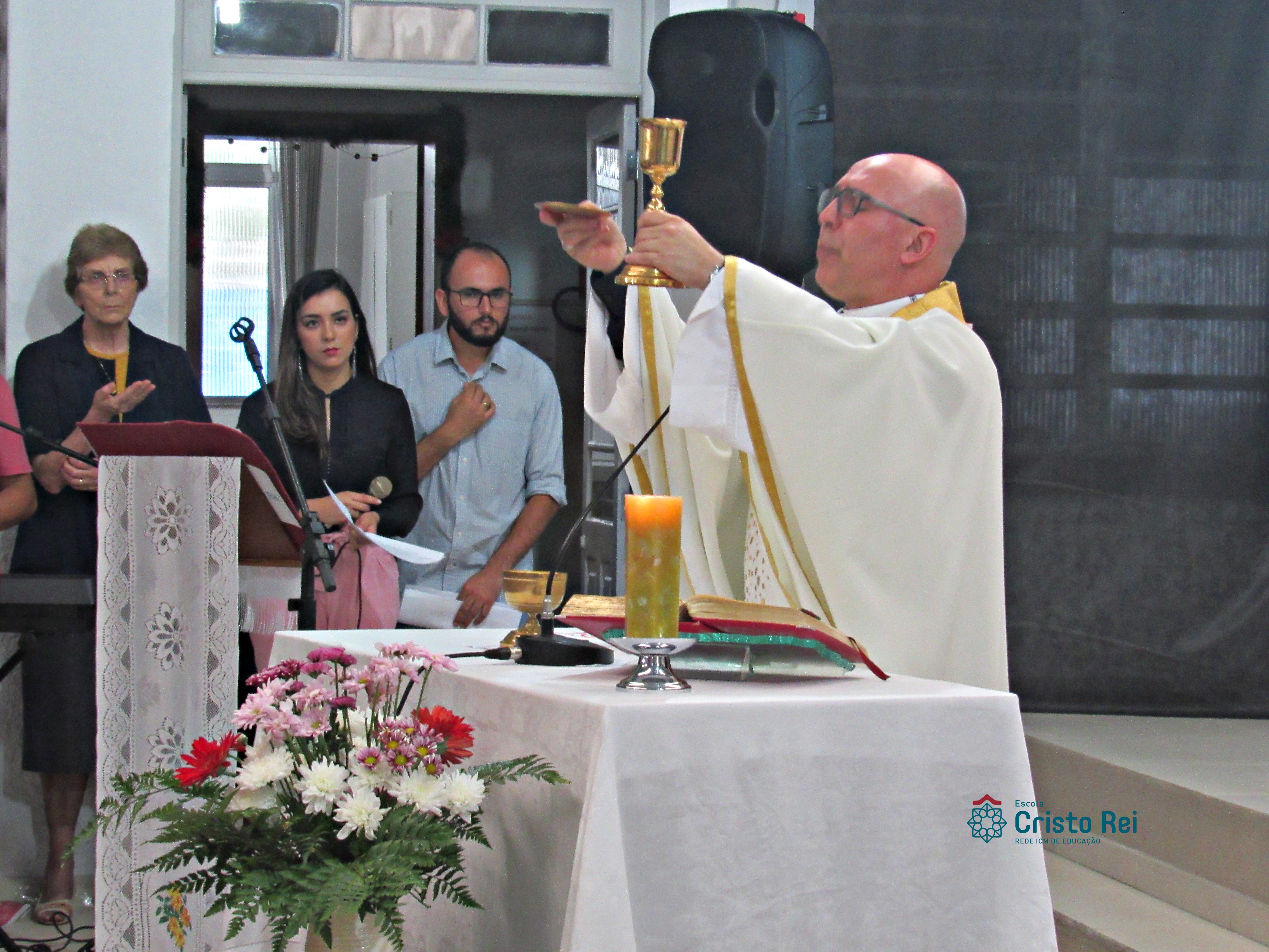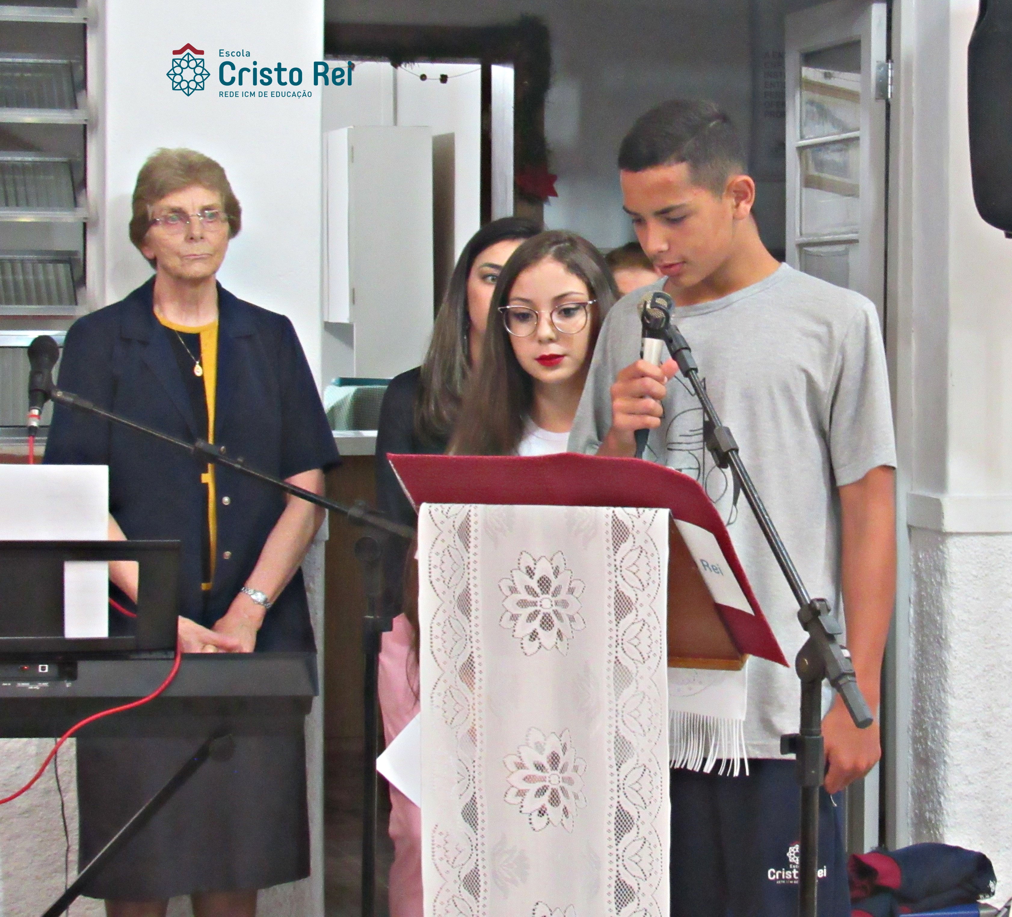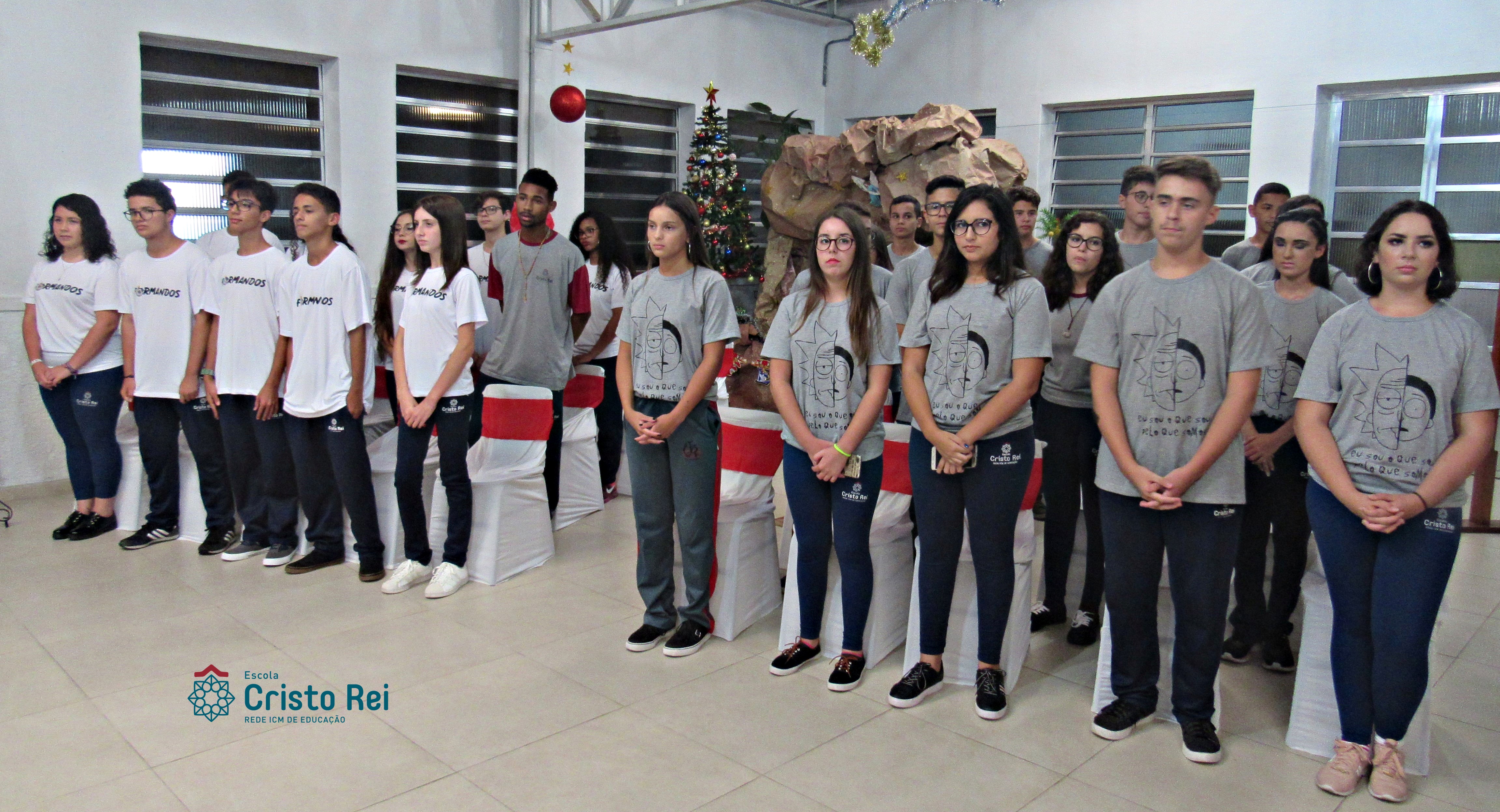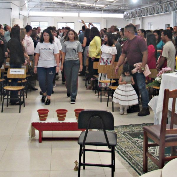No corrente mês tivemos a conclusão do nono ano, a qual contou com uma Celebração Eucarística emocionante presidida pelo Bispo D. Ricardo Hoepers, com a participação da direção, professores, alunos e familiares. Dom Ricardo em sua mensagem destacou três pontos: a sintonia primeira com Deus pela oração, a relação com o próximo e a necessária saúde espiritual e corporal de cada um para uma vida feliz. Na cerimônia de entrega dos certificados a professora Regente Valdite Helena Caetano sintetizou em imagens e palavras o carinho com seus alunos. É sempre bom perceber o quanto a Escola além de proporcionar aprendizagem, também contribui para valorizar a vida com gestos de amizade, amor ao próximo, solidariedade, fortalecendo os vínculos afetivos.