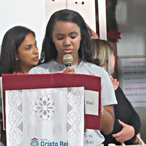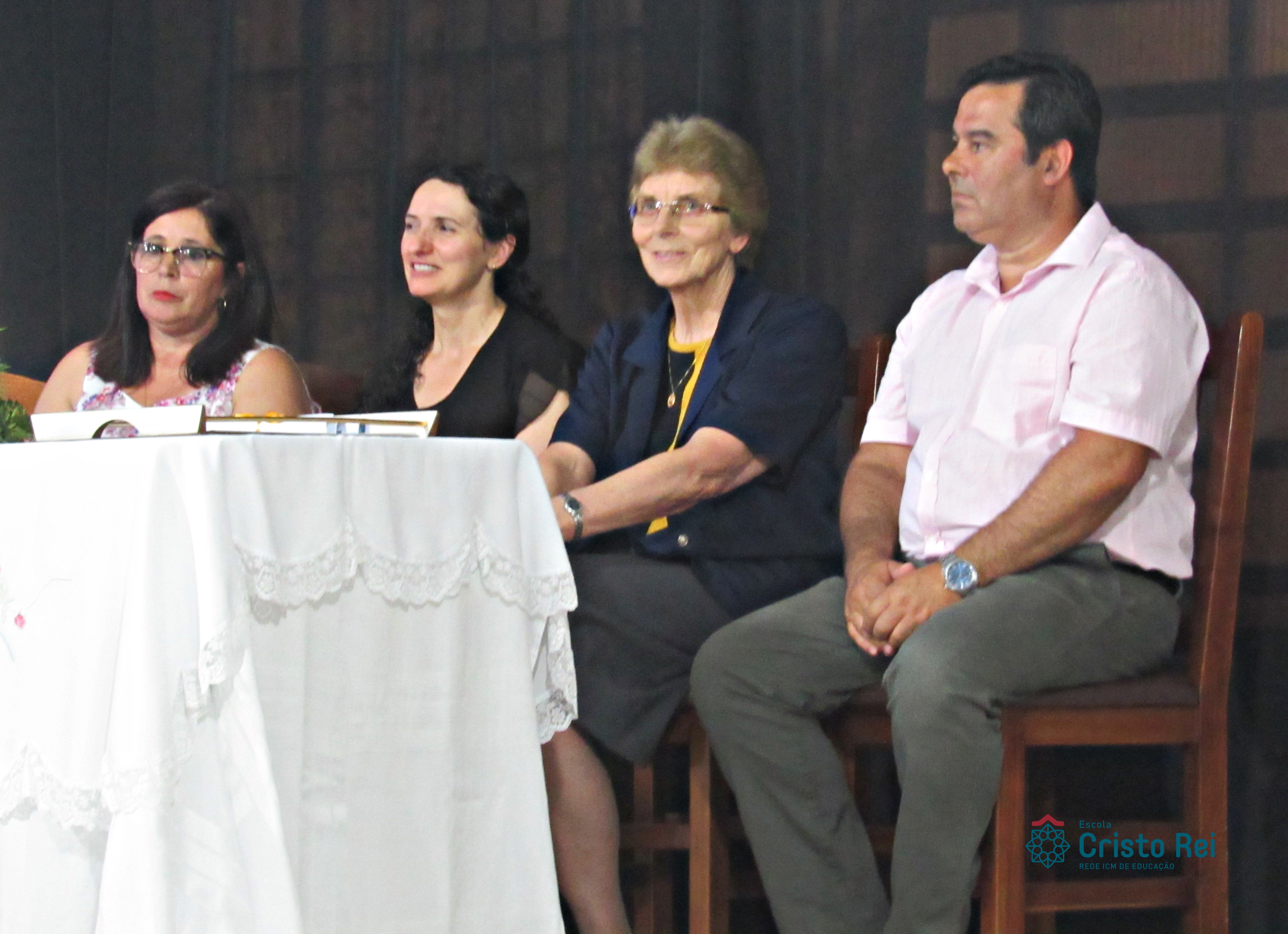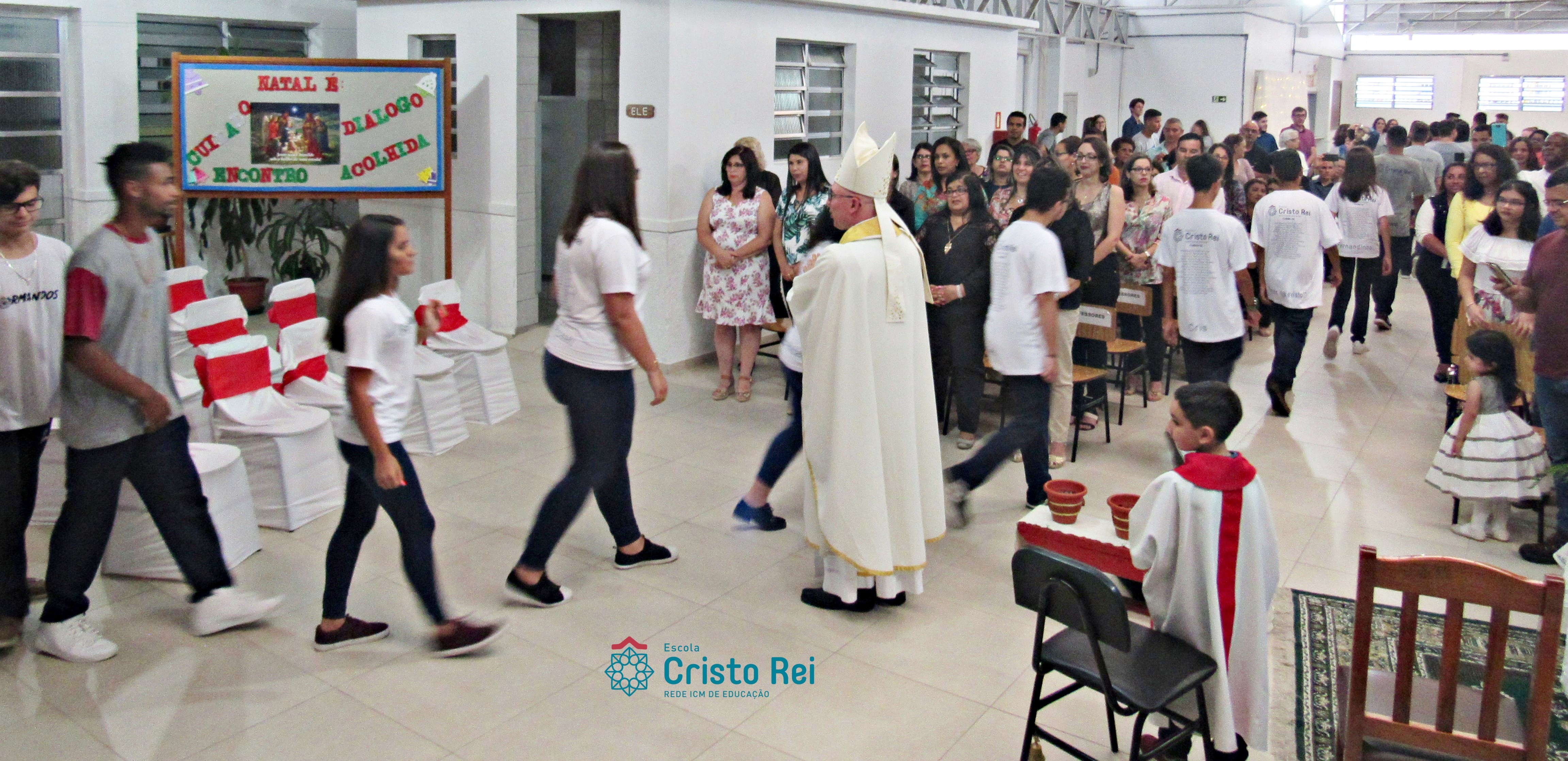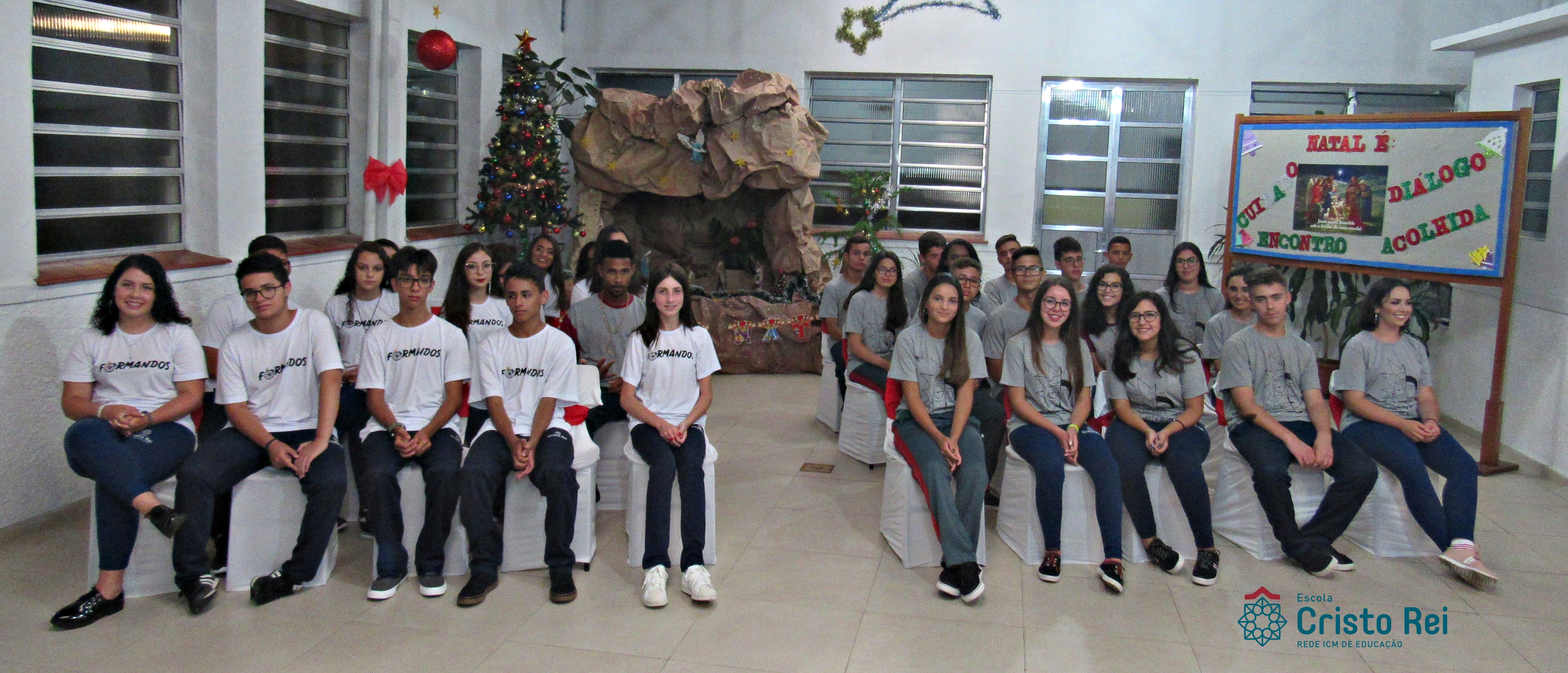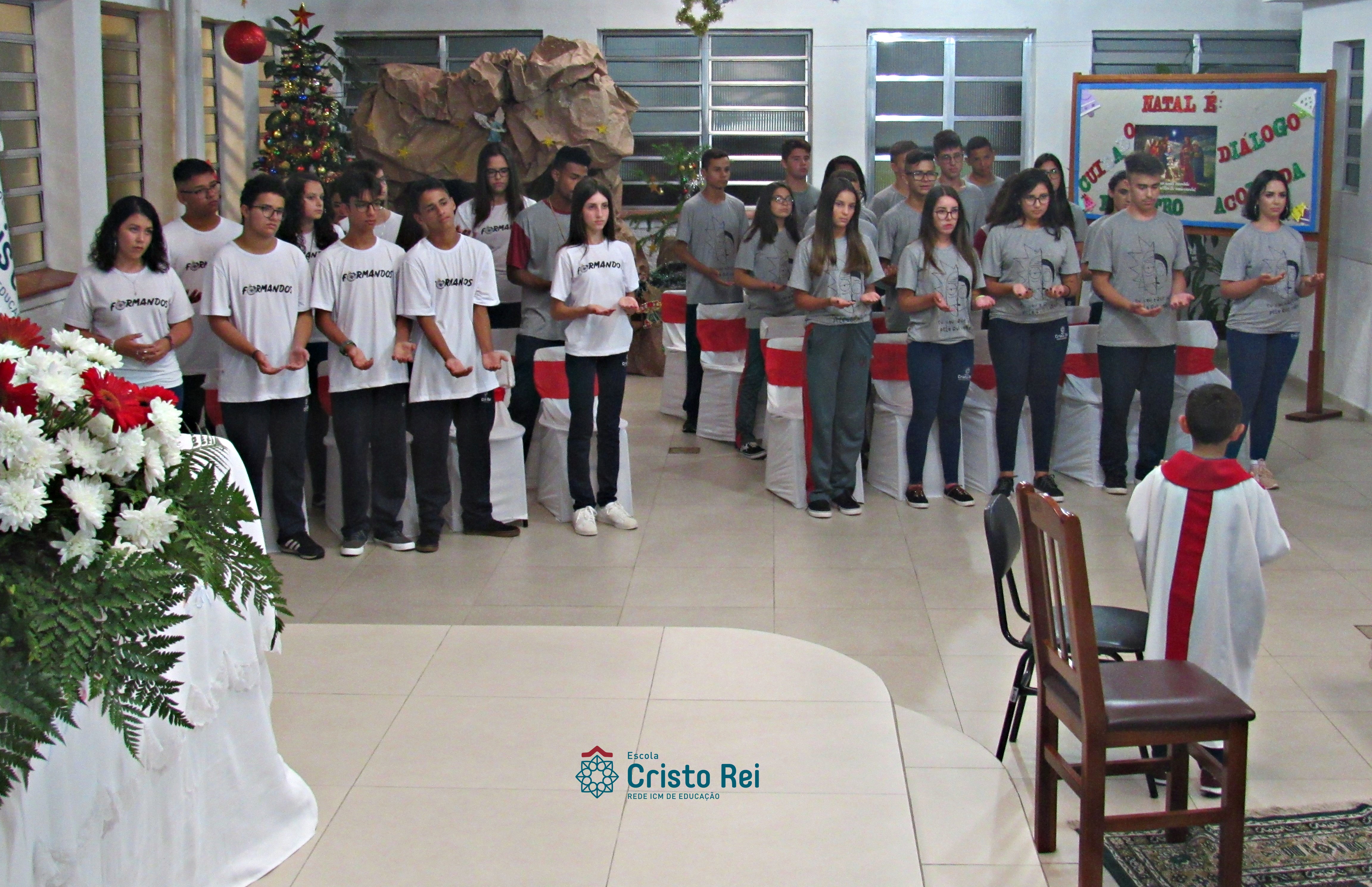 No corrente mês tivemos a conclusão do nono ano, a qual contou com uma Celebração Eucarística emocionante presidida pelo Bispo D. Ricardo Hoepers, com a participação da direção, professores, alunos e familiares. Dom Ricardo em sua mensagem destacou três pontos: a sintonia primeira com Deus pela oração, a relação com o próximo e a necessária saúde espiritual e corporal de cada um para uma vida feliz. Na cerimônia de entrega dos certificados a professora Regente Valdite Helena Caetano sintetizou em imagens e palavras o carinho com seus alunos. É sempre bom perceber o quanto a Escola além de proporcionar aprendizagem, também contribui para valorizar a vida com gestos de amizade, amor ao próximo, solidariedade, fortalecendo os vínculos afetivos.