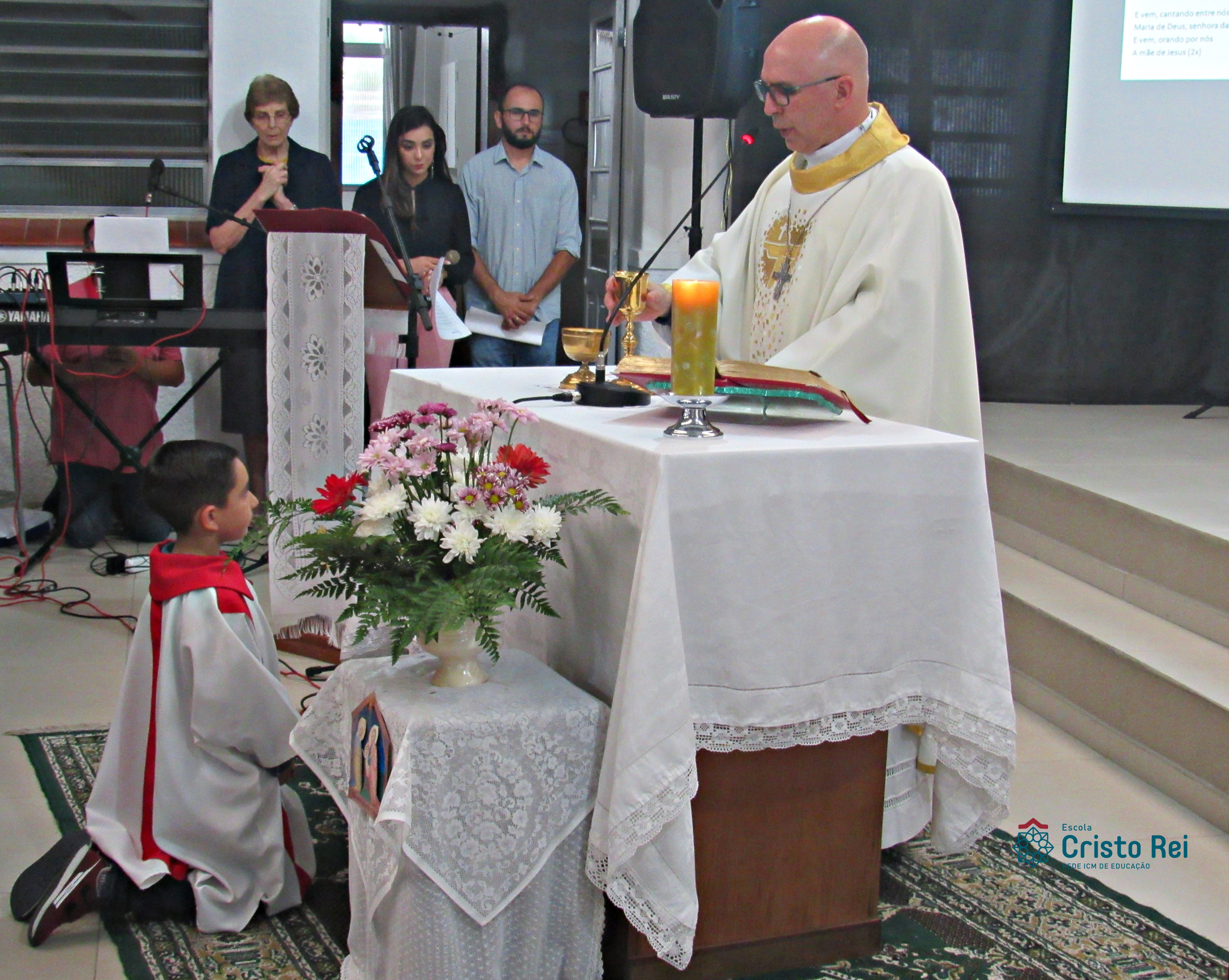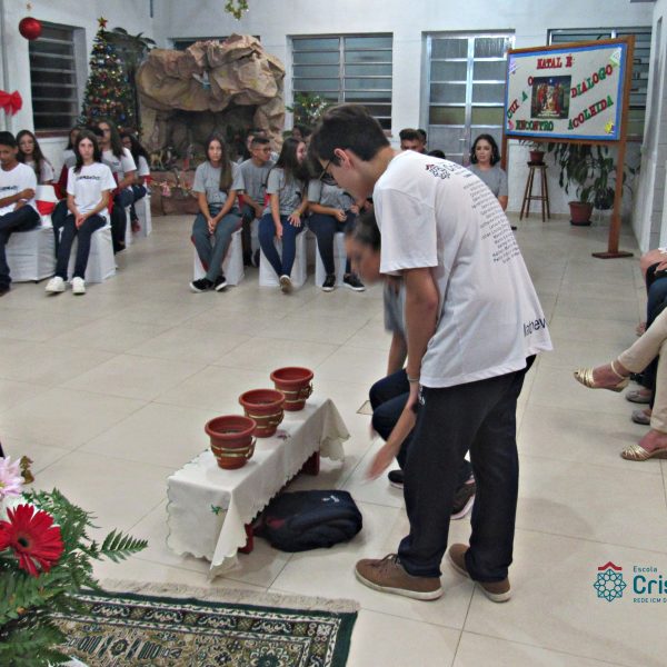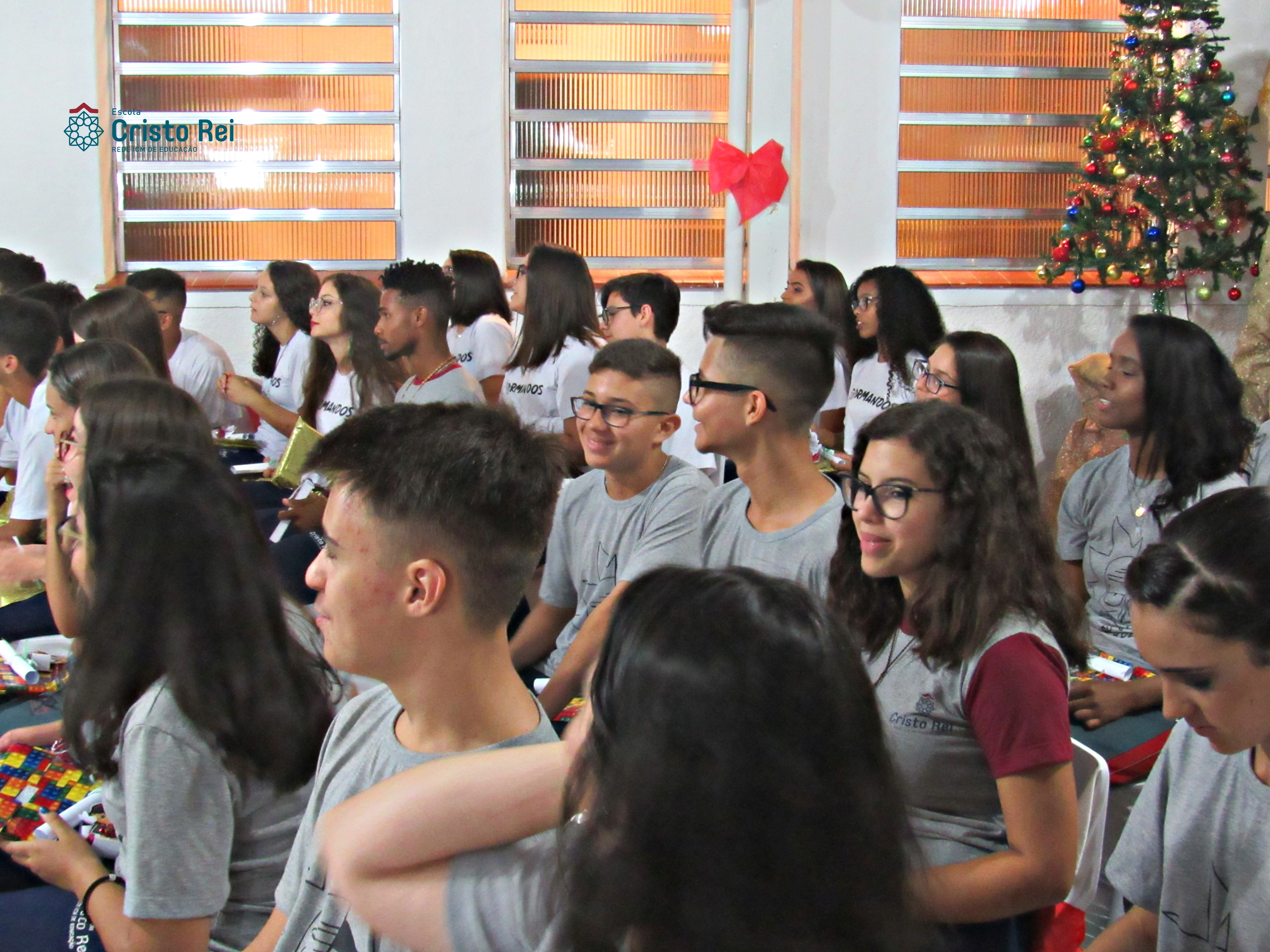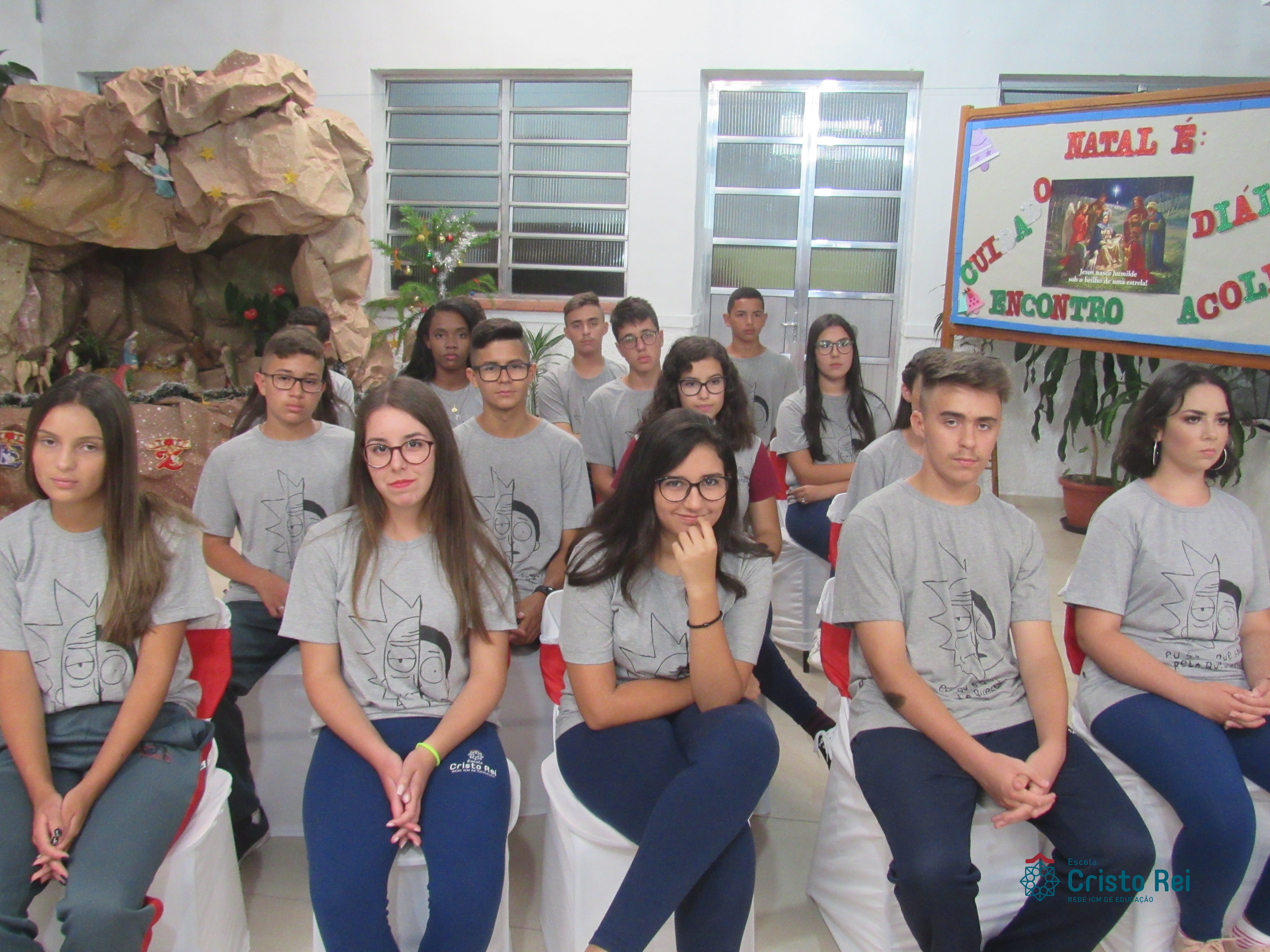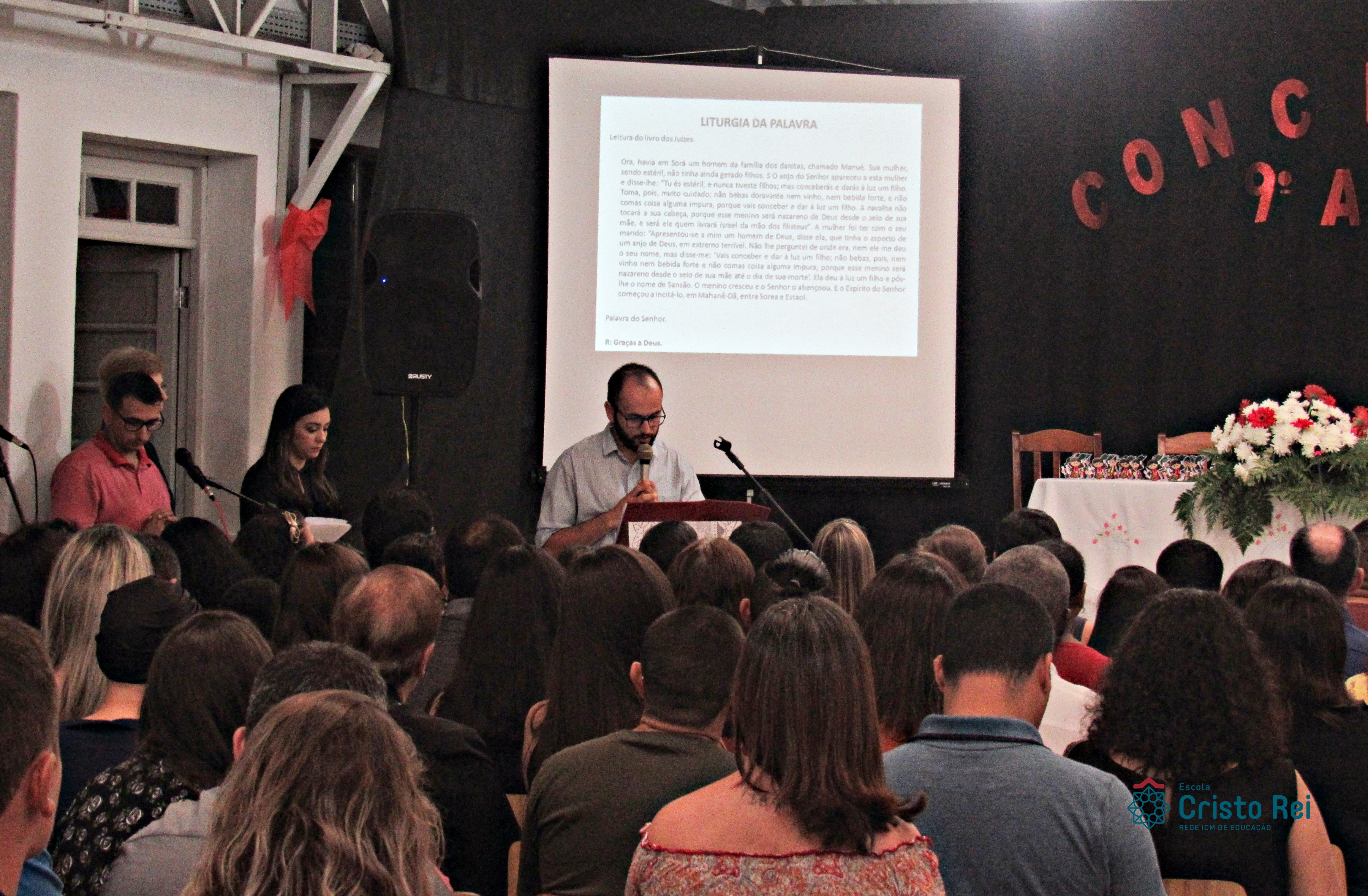 No corrente mês tivemos a conclusão do nono ano, a qual contou com uma Celebração Eucarística emocionante presidida pelo Bispo D. Ricardo Hoepers, com a participação da direção, professores, alunos e familiares. Dom Ricardo em sua mensagem destacou três pontos: a sintonia primeira com Deus pela oração, a relação com o próximo e a necessária saúde espiritual e corporal de cada um para uma vida feliz. Na cerimônia de entrega dos certificados a professora Regente Valdite Helena Caetano sintetizou em imagens e palavras o carinho com seus alunos. É sempre bom perceber o quanto a Escola além de proporcionar aprendizagem, também contribui para valorizar a vida com gestos de amizade, amor ao próximo, solidariedade, fortalecendo os vínculos afetivos.