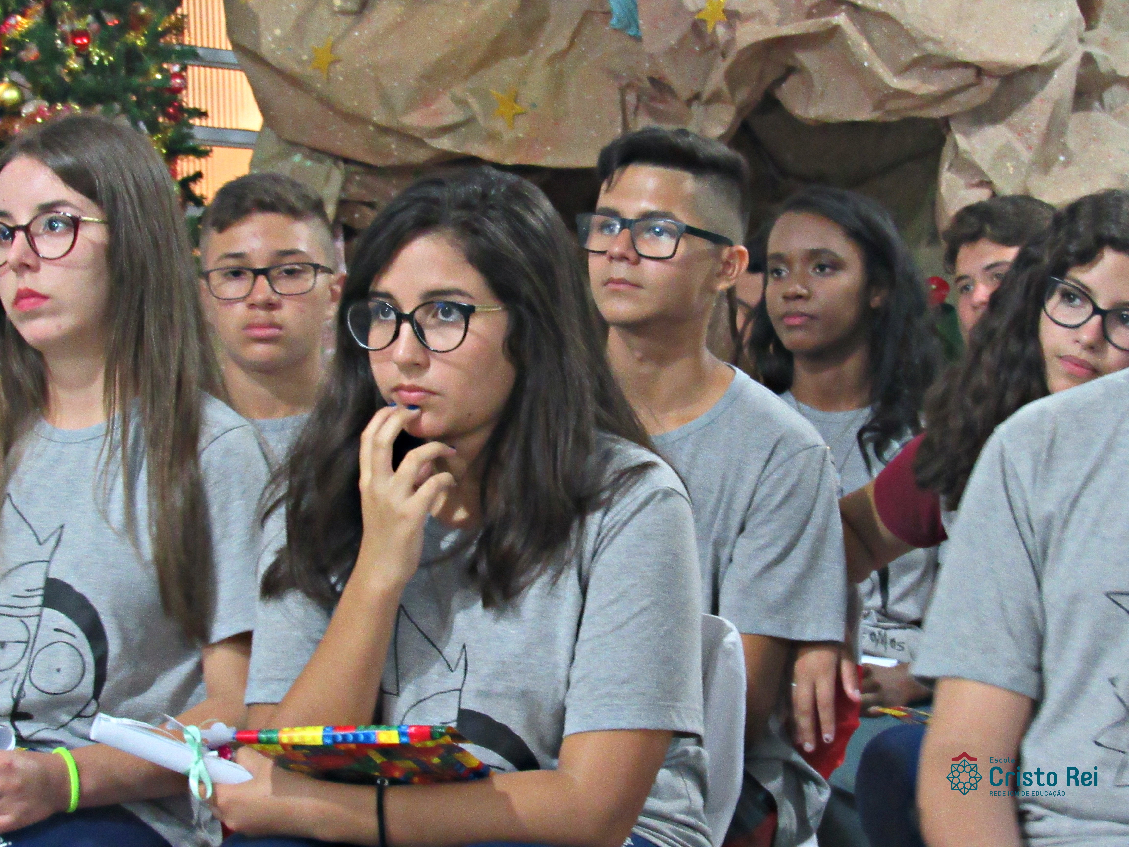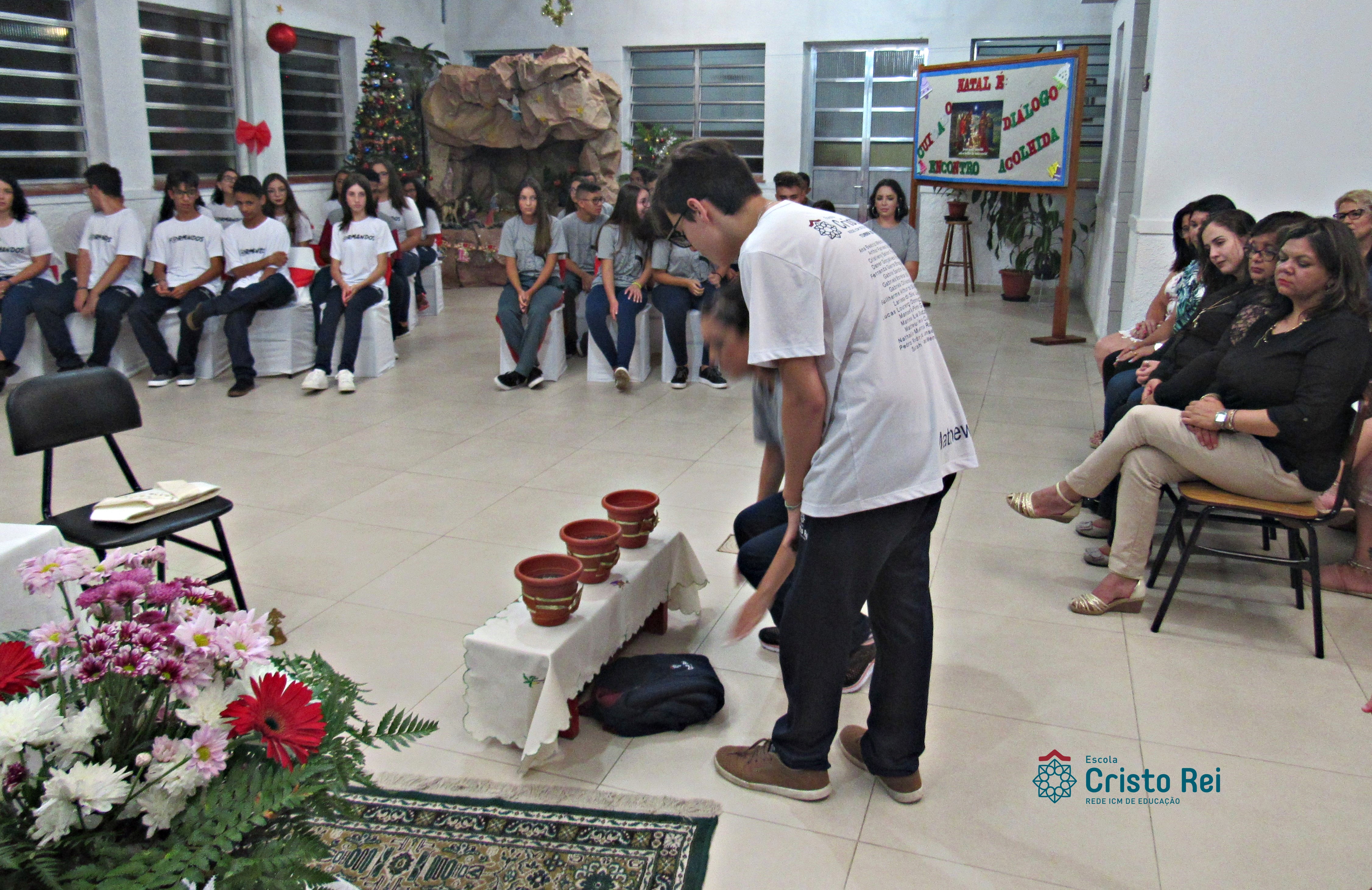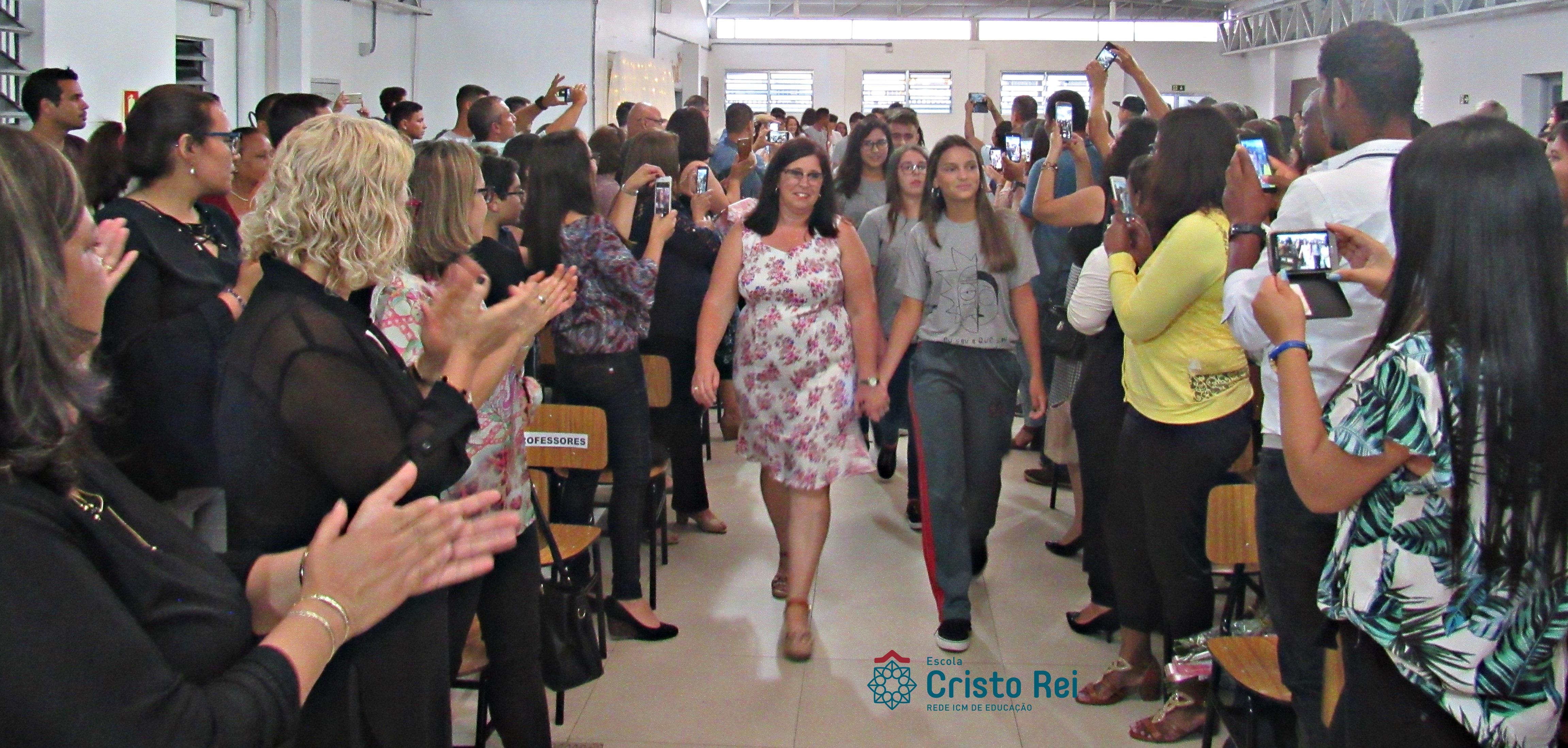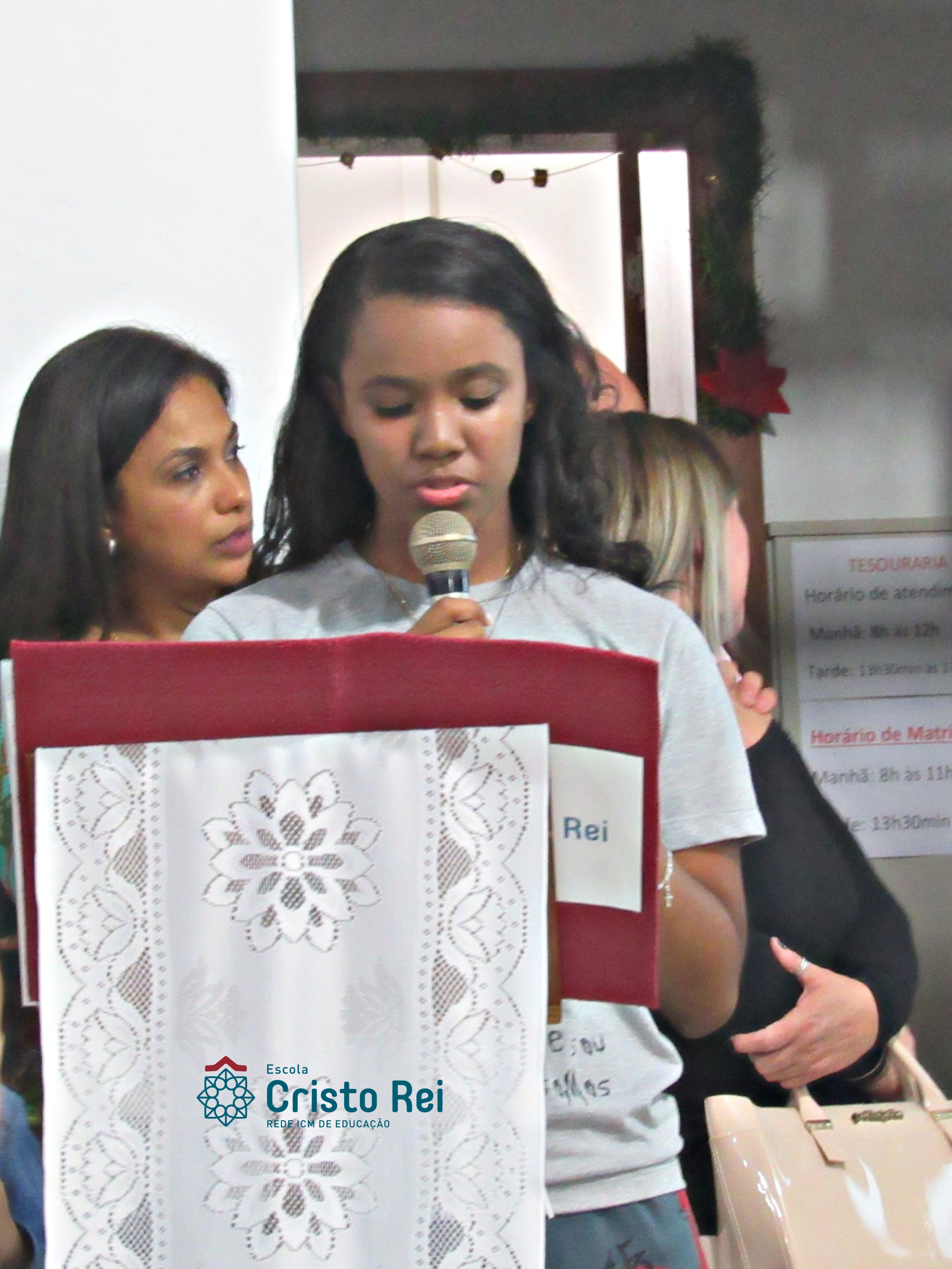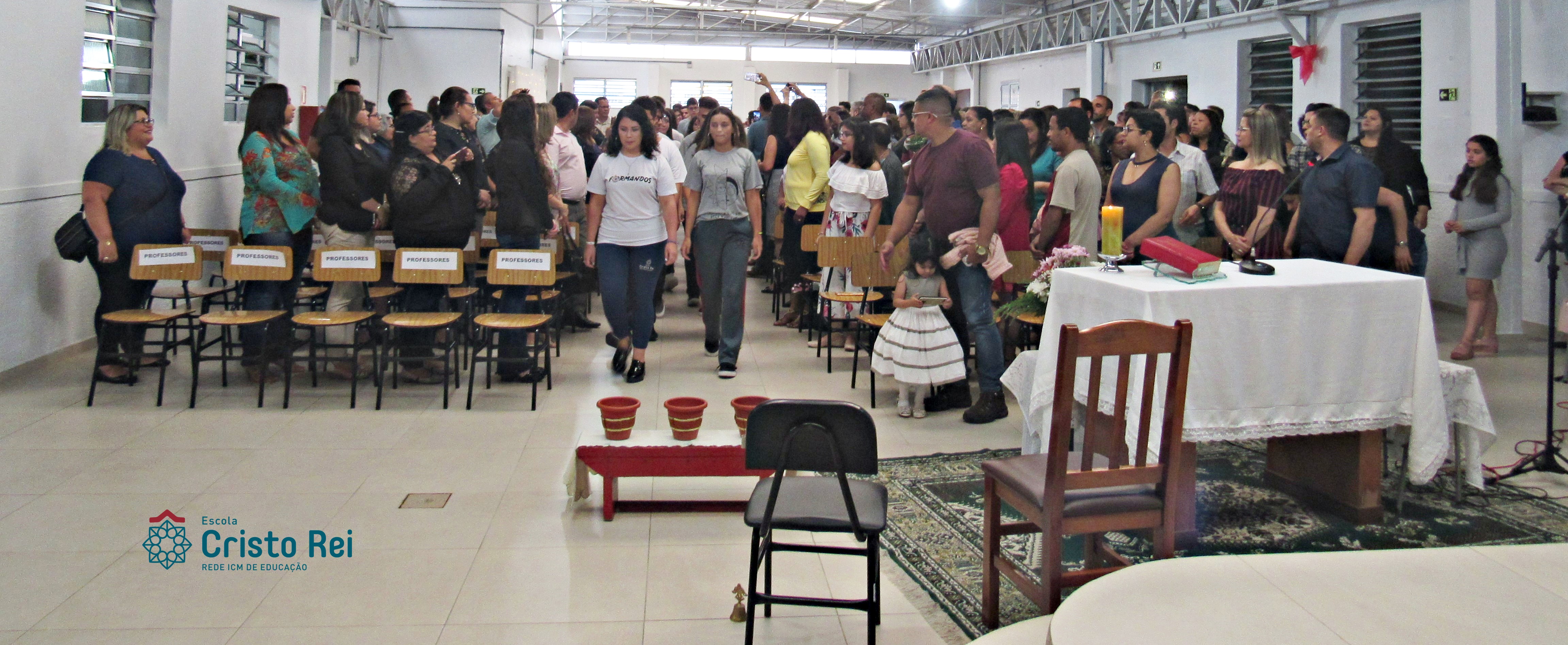 No corrente mês tivemos a conclusão do nono ano, a qual contou com uma Celebração Eucarística emocionante presidida pelo Bispo D. Ricardo Hoepers, com a participação da direção, professores, alunos e familiares. Dom Ricardo em sua mensagem destacou três pontos: a sintonia primeira com Deus pela oração, a relação com o próximo e a necessária saúde espiritual e corporal de cada um para uma vida feliz. Na cerimônia de entrega dos certificados a professora Regente Valdite Helena Caetano sintetizou em imagens e palavras o carinho com seus alunos. É sempre bom perceber o quanto a Escola além de proporcionar aprendizagem, também contribui para valorizar a vida com gestos de amizade, amor ao próximo, solidariedade, fortalecendo os vínculos afetivos.
