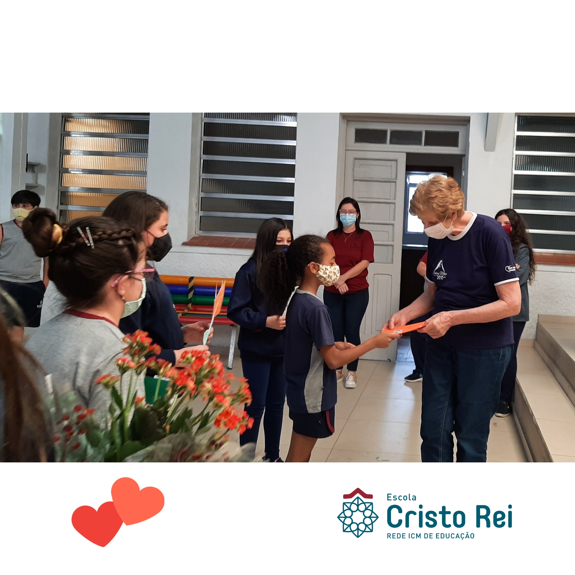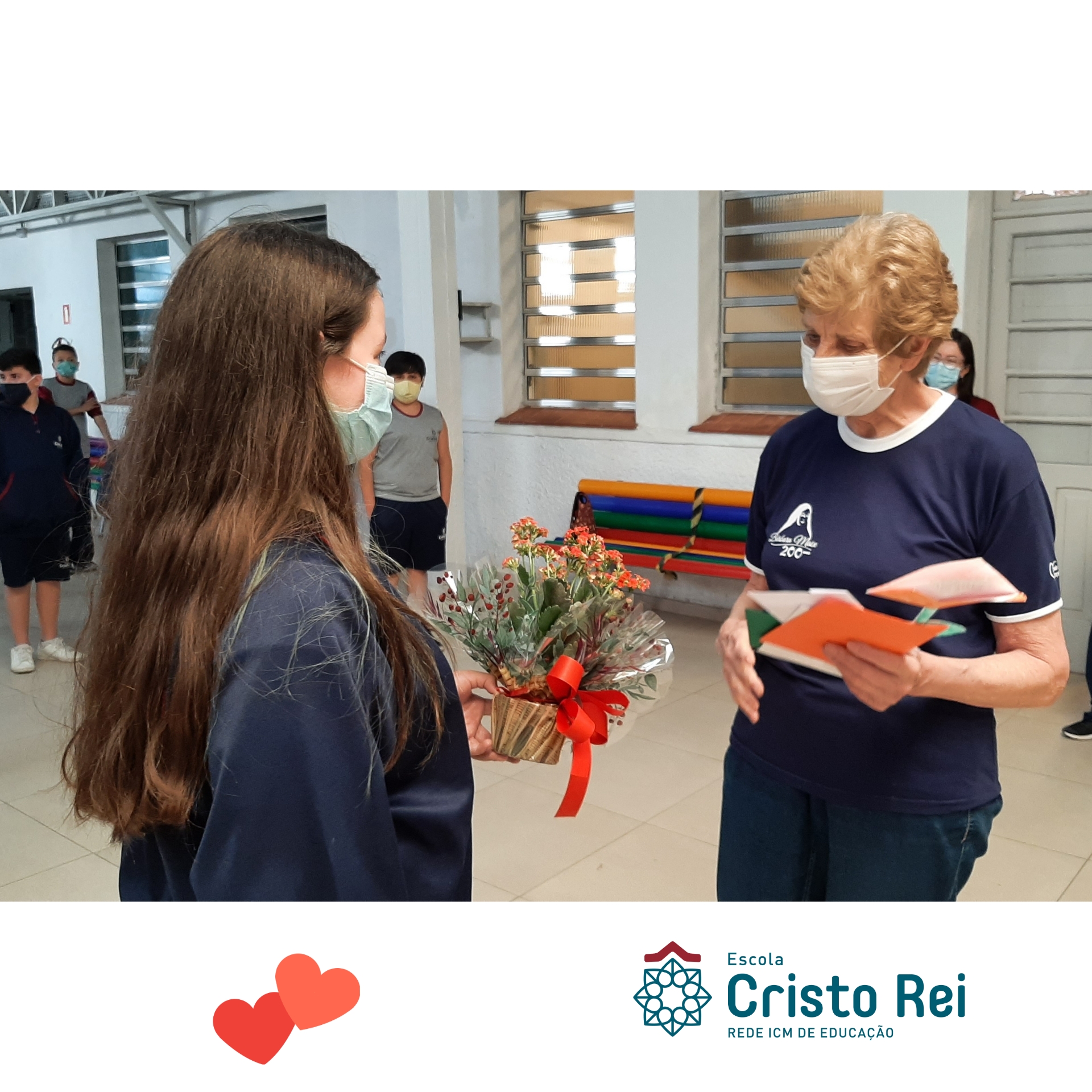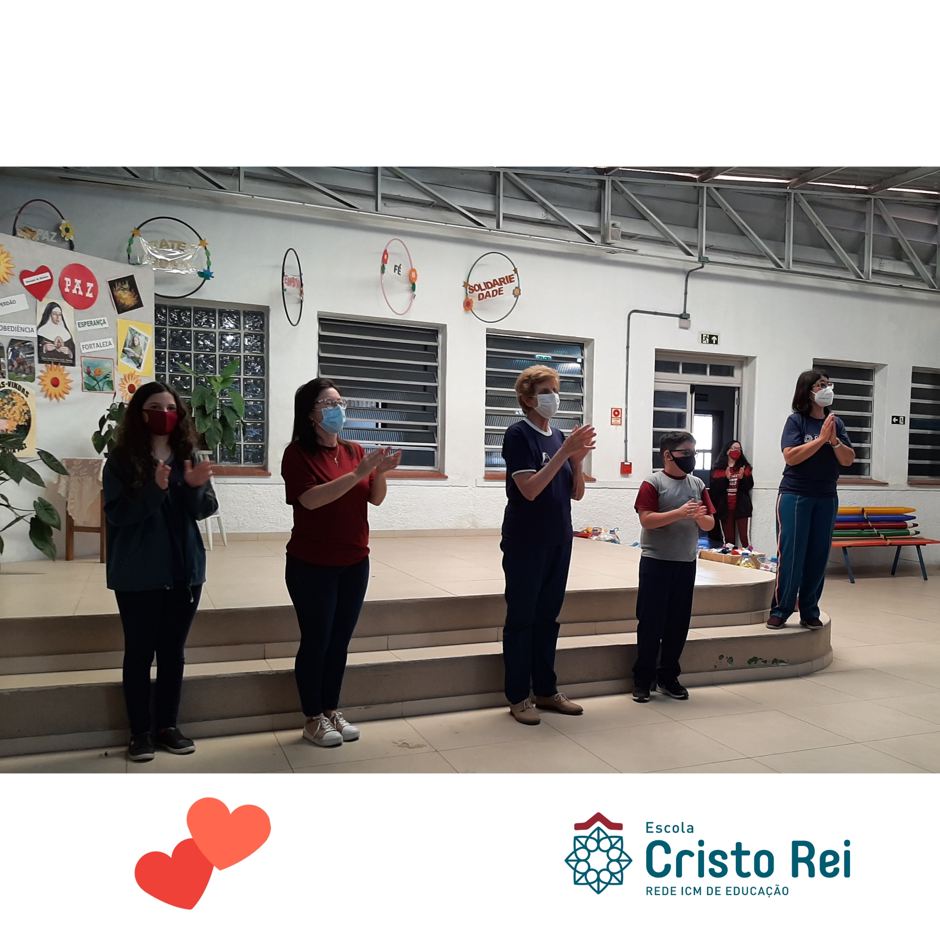 Para comemorar o Dia da nossa querida Diretora Irmã Serena Reichert e Vice-Diretora Cristiane Silveira, foi realizada uma pequena homenagem nos turnos manhã e tarde. Professores, colaboradores e estudantes reuniram-se para orar, cantar e reconhecer o amor e gratidão dedicados ao conduzir com carinho a nossa Escola.