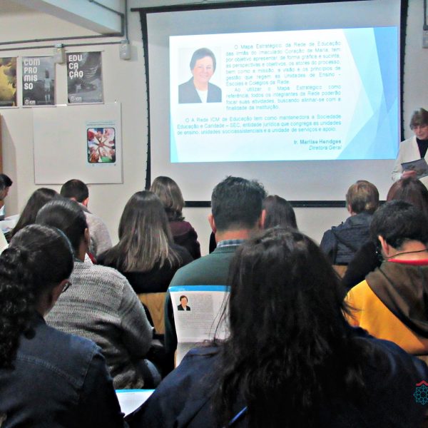Num momento especial todos os funcionários da Escola com as coordenações e direção reuniram-se no dia 2 de outubro para, conjuntamente, estudar e aprofundar o Mapa Estratégico da Rede ICM de Educação.