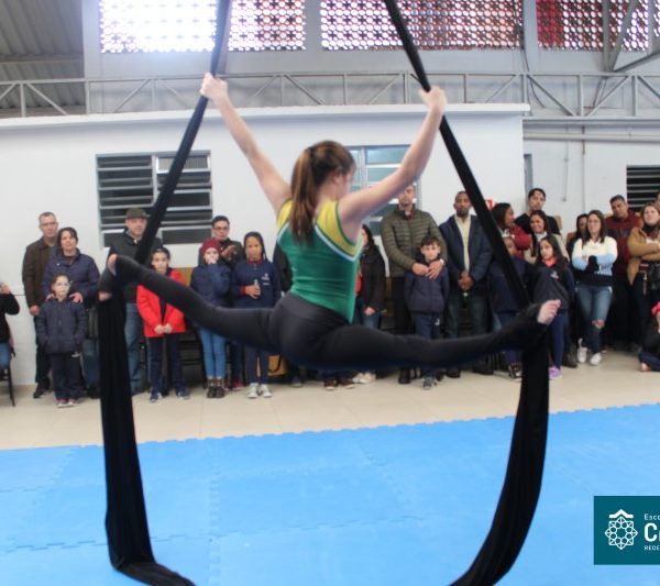 lúdicas: demonstração de ginástica artística e circo da Escola Semente Olímpica;