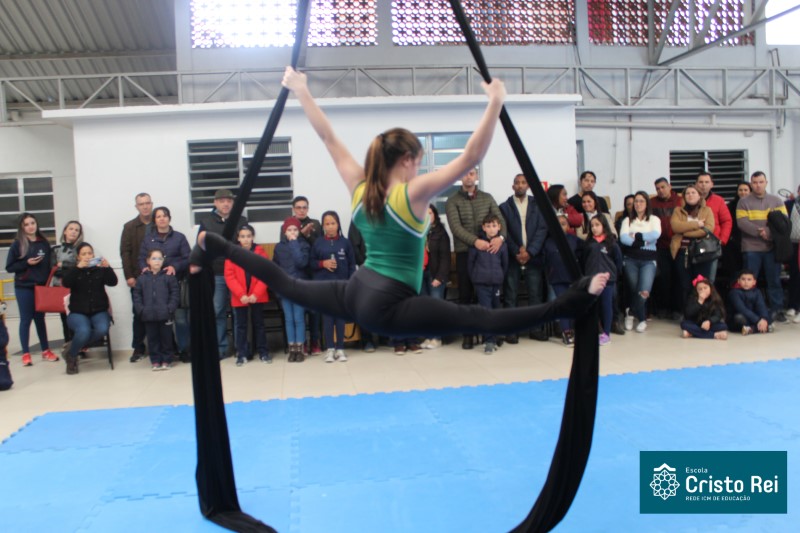 lúdicas: demonstração de ginástica artística e circo da Escola Semente Olímpica;