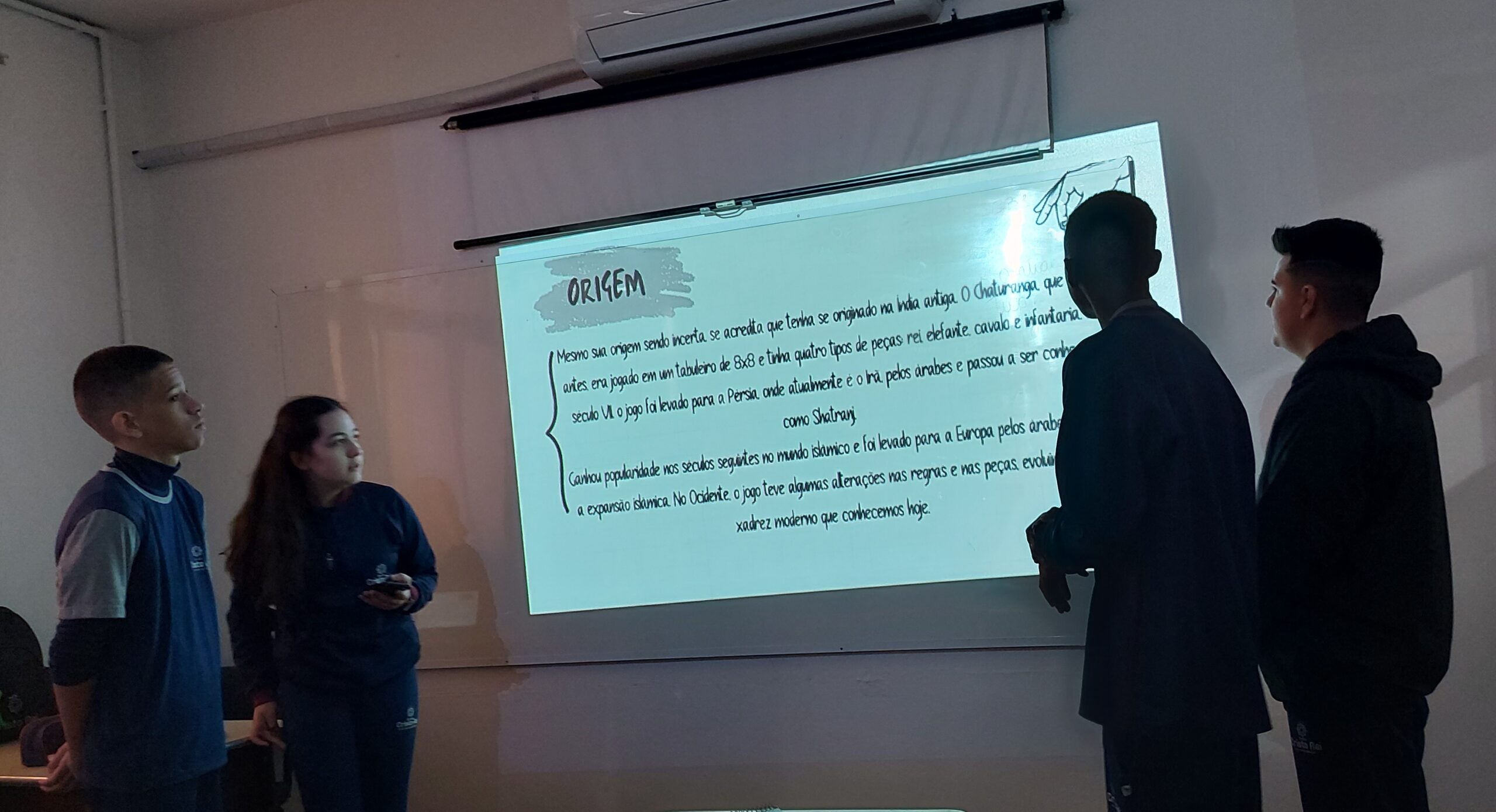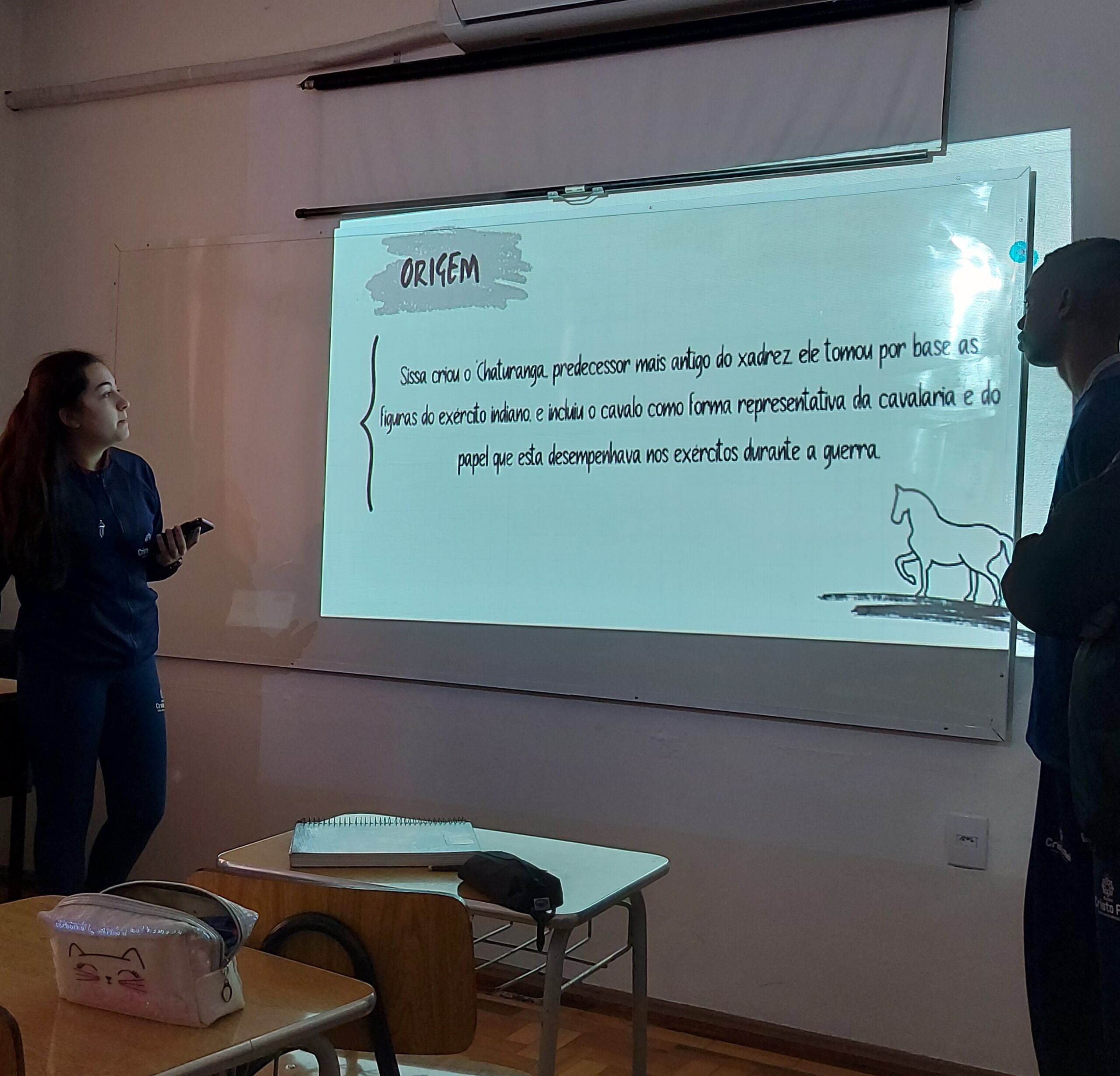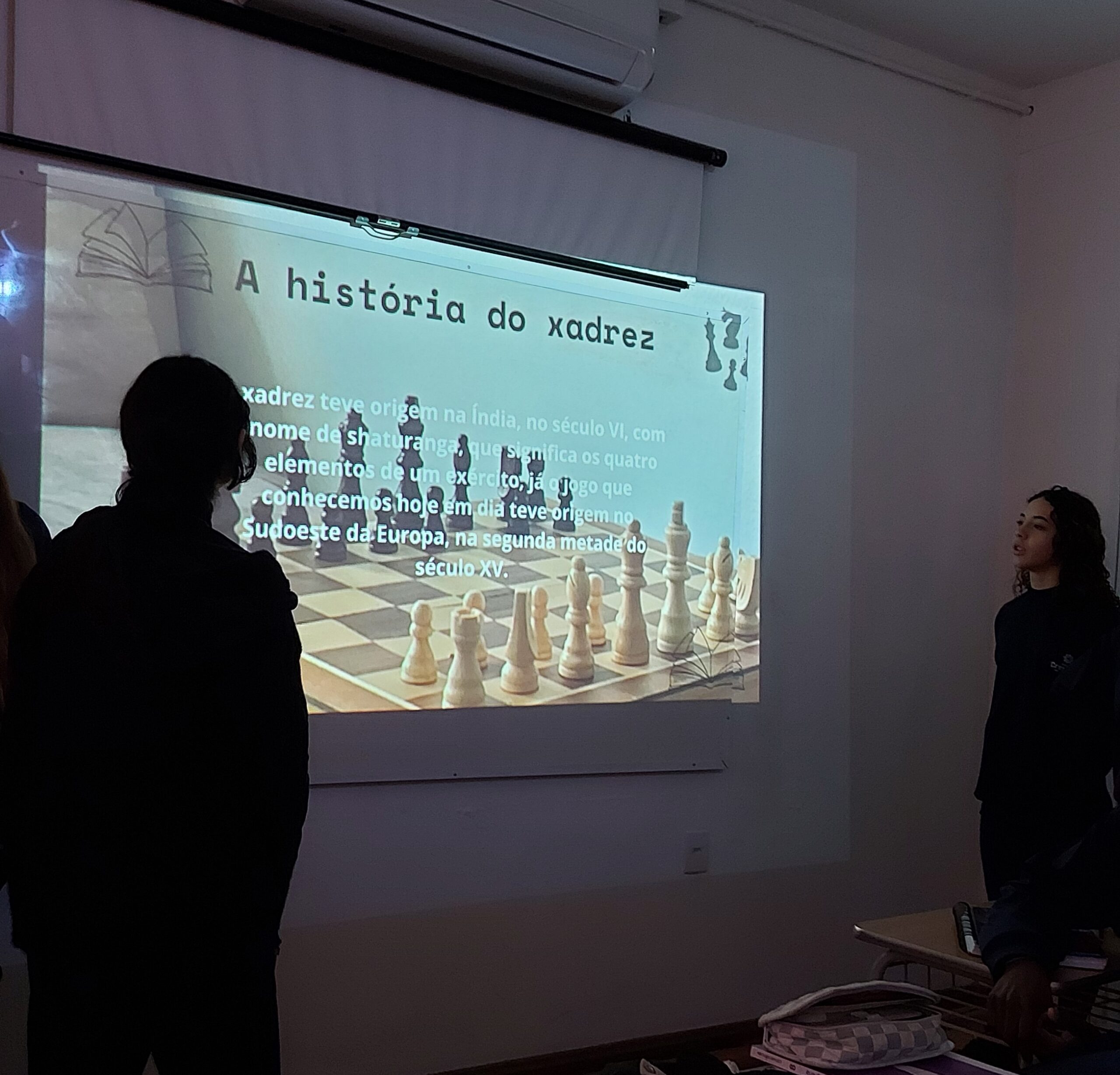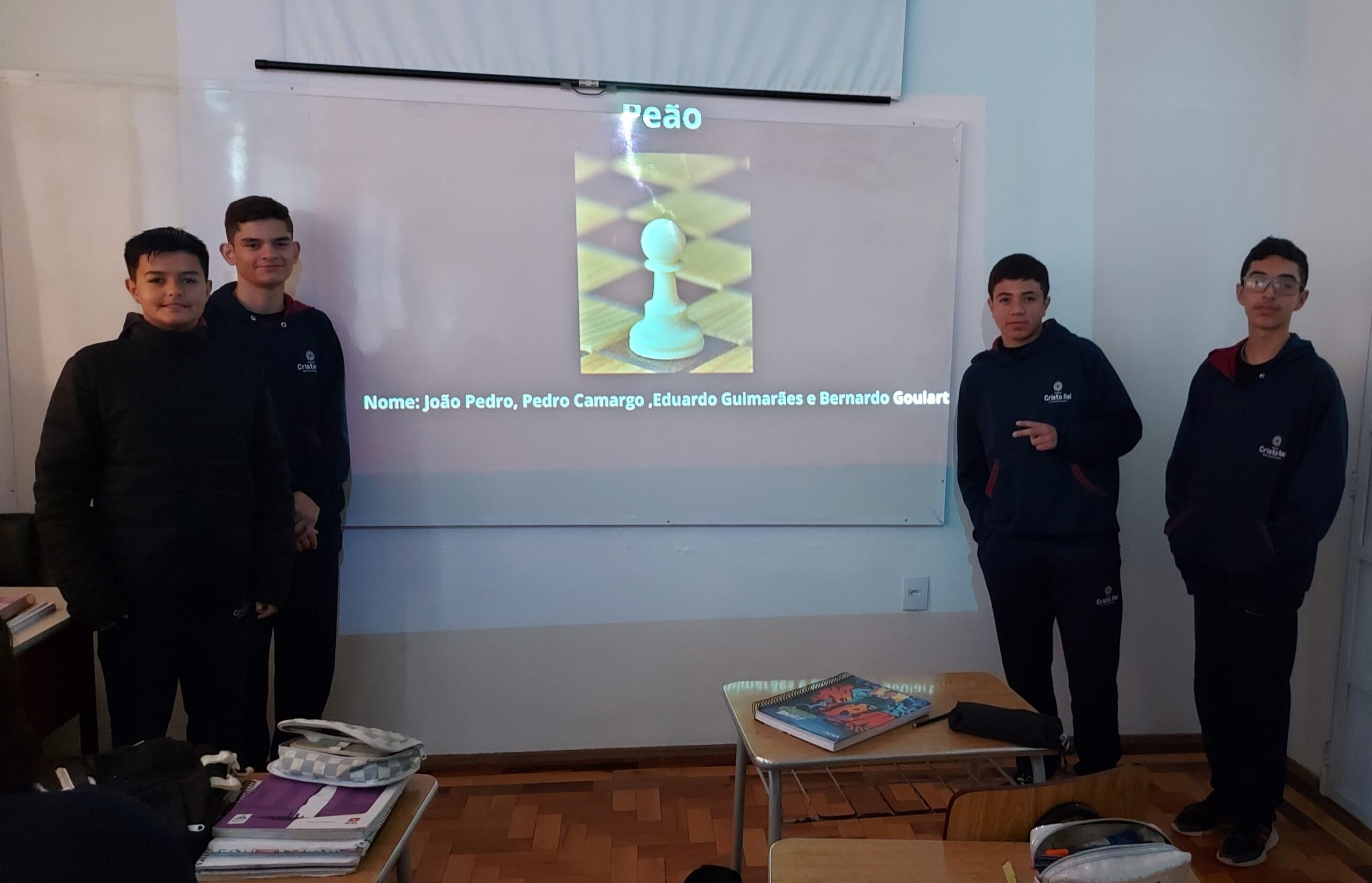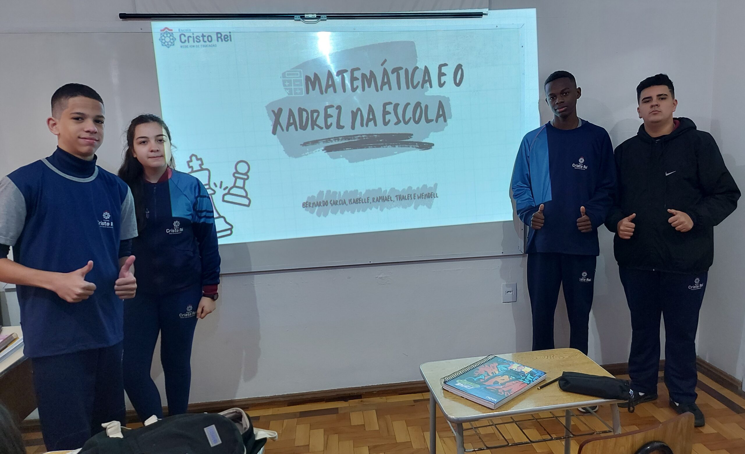 Xadrez, um jogo milenar que até hoje reúne milhões de pessoas para se sentar ao redor de uma mesa e disputar uma partida, a fim de realizar o tão famoso xeque-mate. Foi com esse intuito, que a professora de matemática, Valdite Caetano, realizou, com os alunos da turma 82, o projeto “Matemática e o Xadrez na Escola”. Os alunos tiveram de pesquisar as informações sobre esse jogo tão famoso e depois apresentar, de uma forma muito criativa, os ensinamentos que obtiveram para seus colegas. Logo após, a professora criou as ‘oficinas de xadrez’ onde os grupos ensinaram o jogo para outras turmas. Os alunos aprenderam muito além da história do xadrez, eles também desenvolveram a liderança, a empatia e a noção de como passar ensinamentos, preceitos básicos da Escola Cristo Rei.
