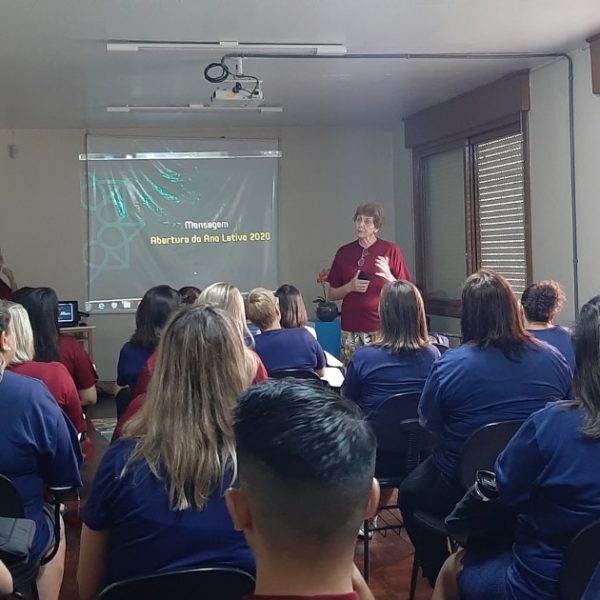 A vice-diretora geral e coordenadora do setor de Educação da Rede ICM, Irmã Elenar Luísa Berghahn, também esteve presente e incentivou todos a assumir com disposição o ano letivo 2020.
