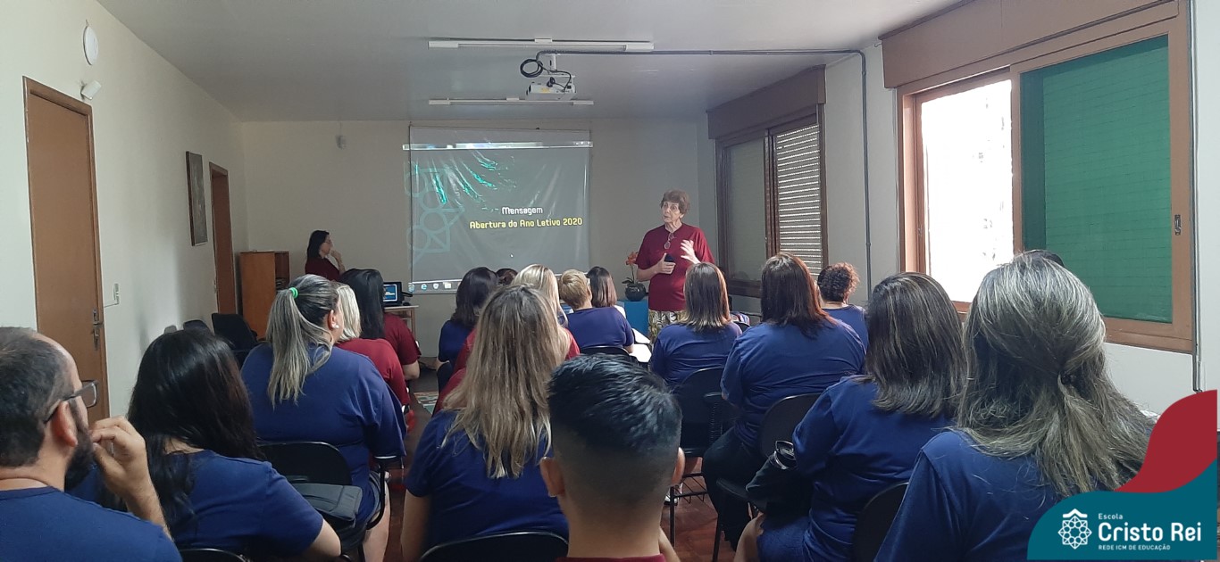 A vice-diretora geral e coordenadora do setor de Educação da Rede ICM, Irmã Elenar Luísa Berghahn, também esteve presente e incentivou todos a assumir com disposição o ano letivo 2020.