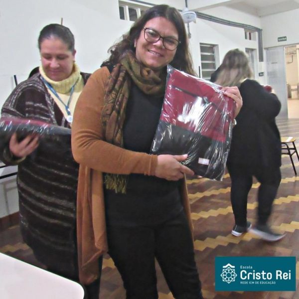 Na ocasião todos os funcionários da Escola foram brindados com um lindo conjunto de abrigo que identifica os profissionais da Rede ICM de Educação.