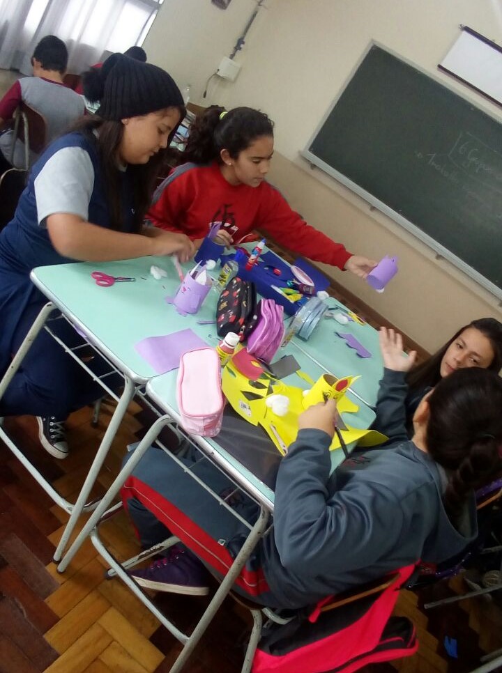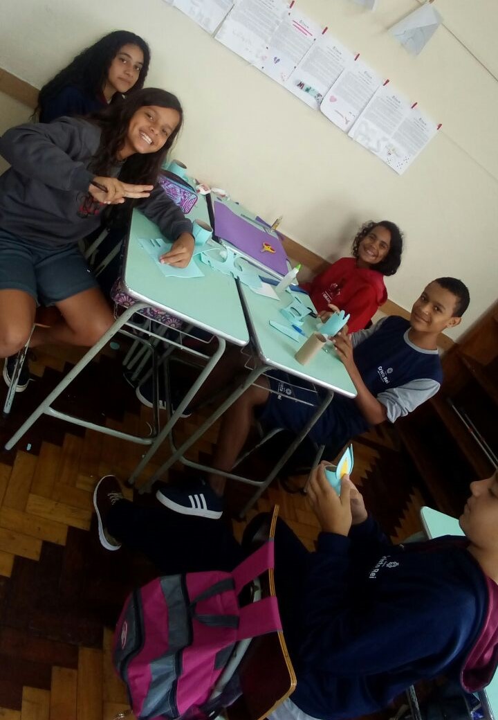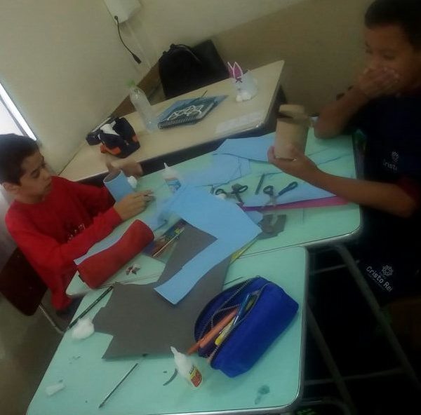 Na aula de Artes sob a orientação da professora Letícia Aikin foram confeccionados com os estudantes do 6º ano coelhinhos utilizando material reciclável e EVA. O resultado foi uma aula divertida e produções muito criativas.