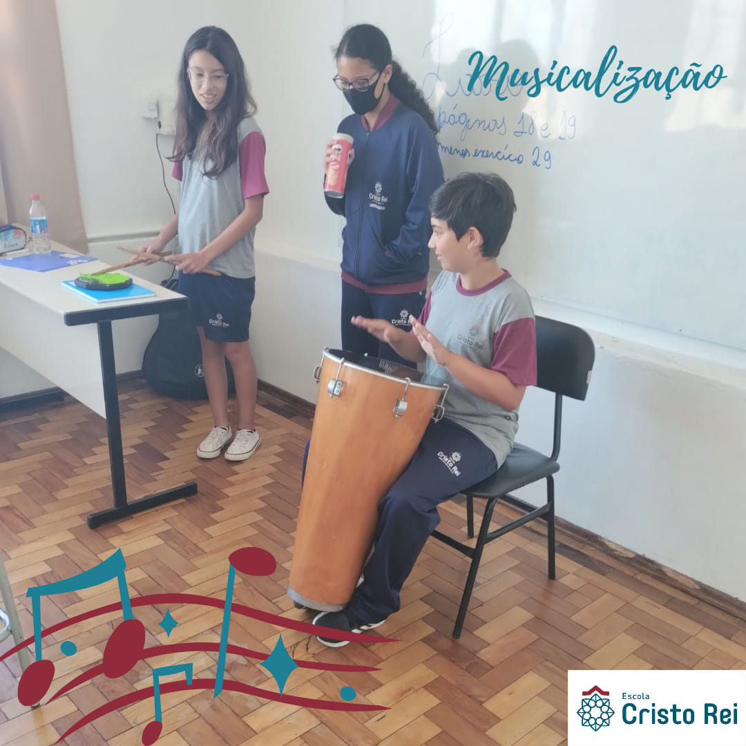 Protagonismo e diversidade cultural – Através do componente de musicalização, o professor trabalhou com a turma 71 a origem do samba no Brasil, que teve como principal influência a cultura africana. Para isso, além das aulas expositivas utilizou instrumentos percussivos como: cubana e chocalho para reproduzir alguns ritmos africanos.