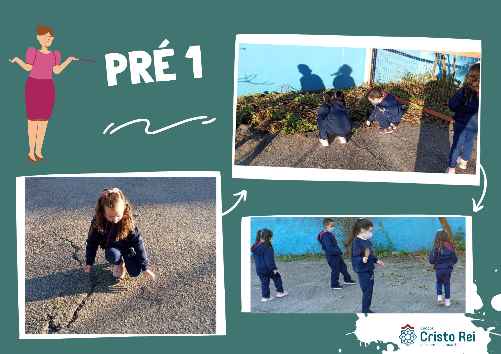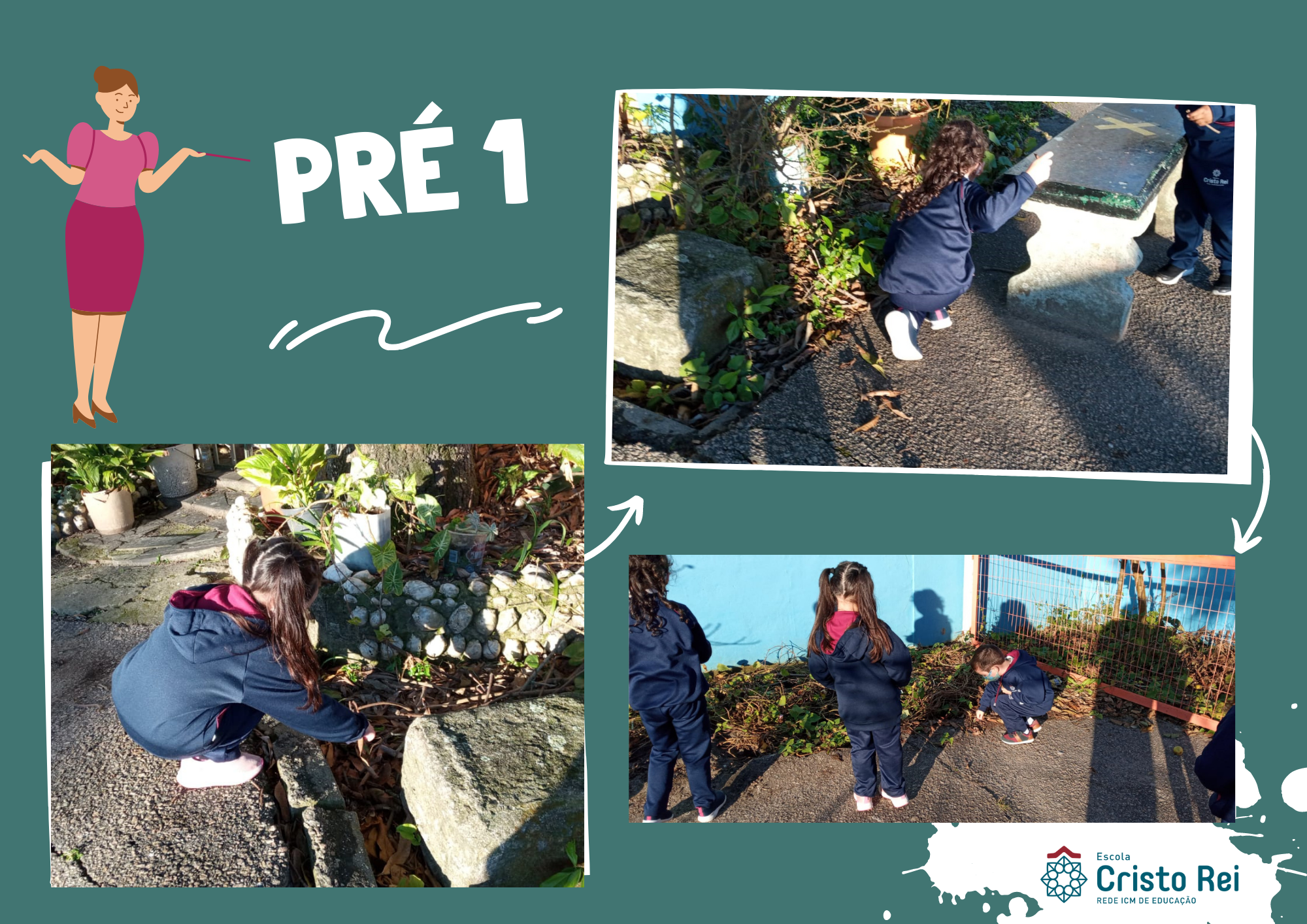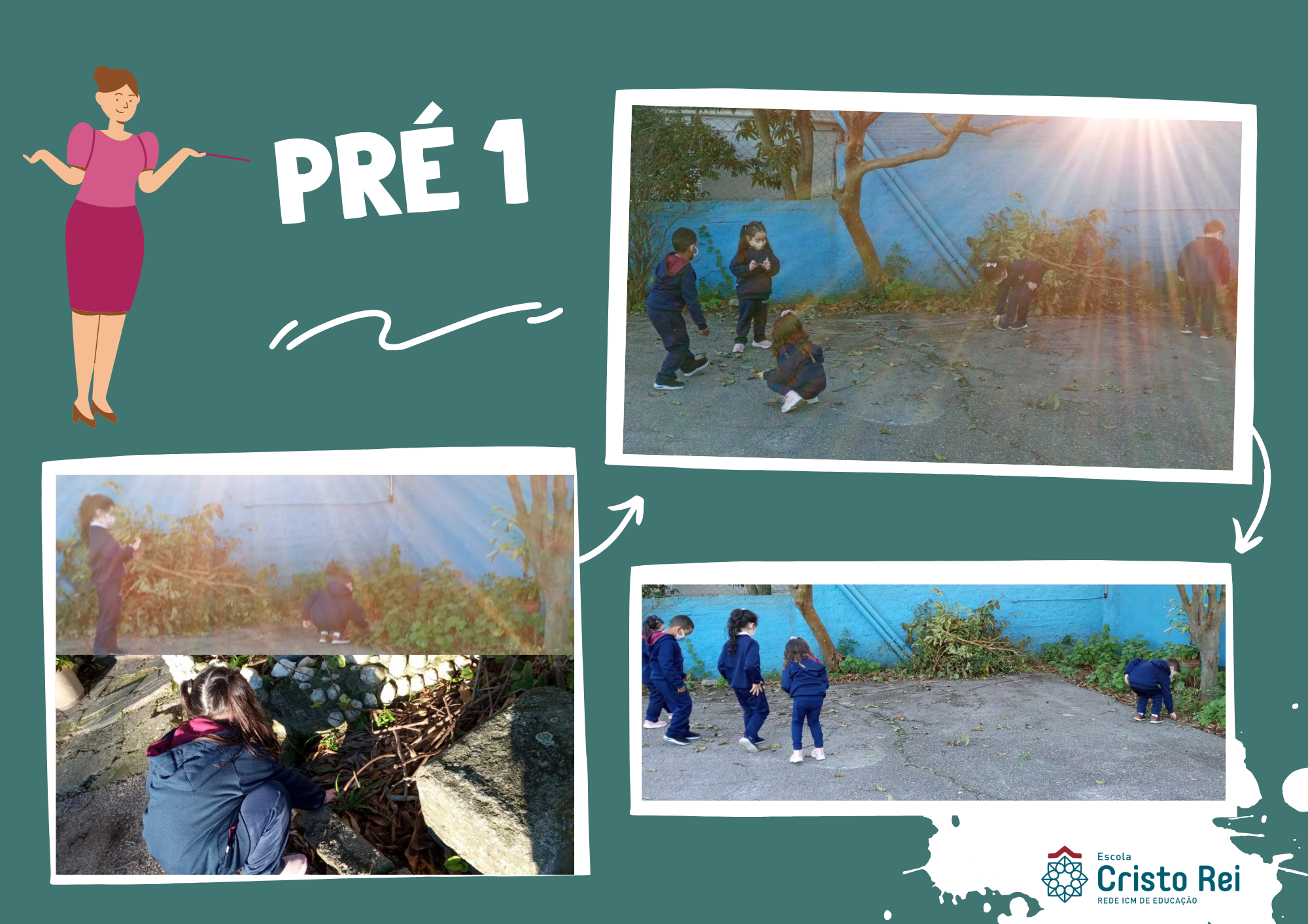 A Natureza traz uma infinidade de possibilidades para as crianças deixarem fluir a imaginação. Os pequenos do Pré 1 foram desafiados a explorar e criar com material coletado no pátio da Escola.