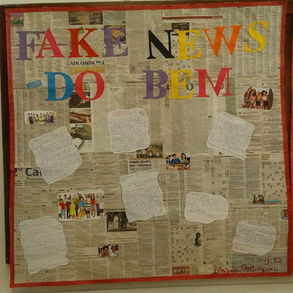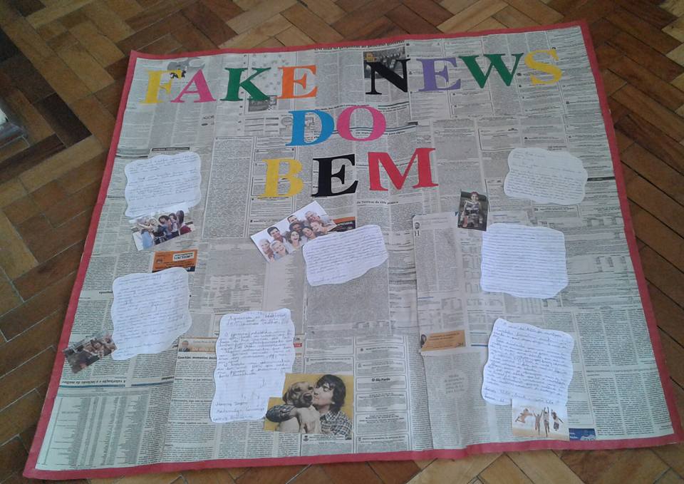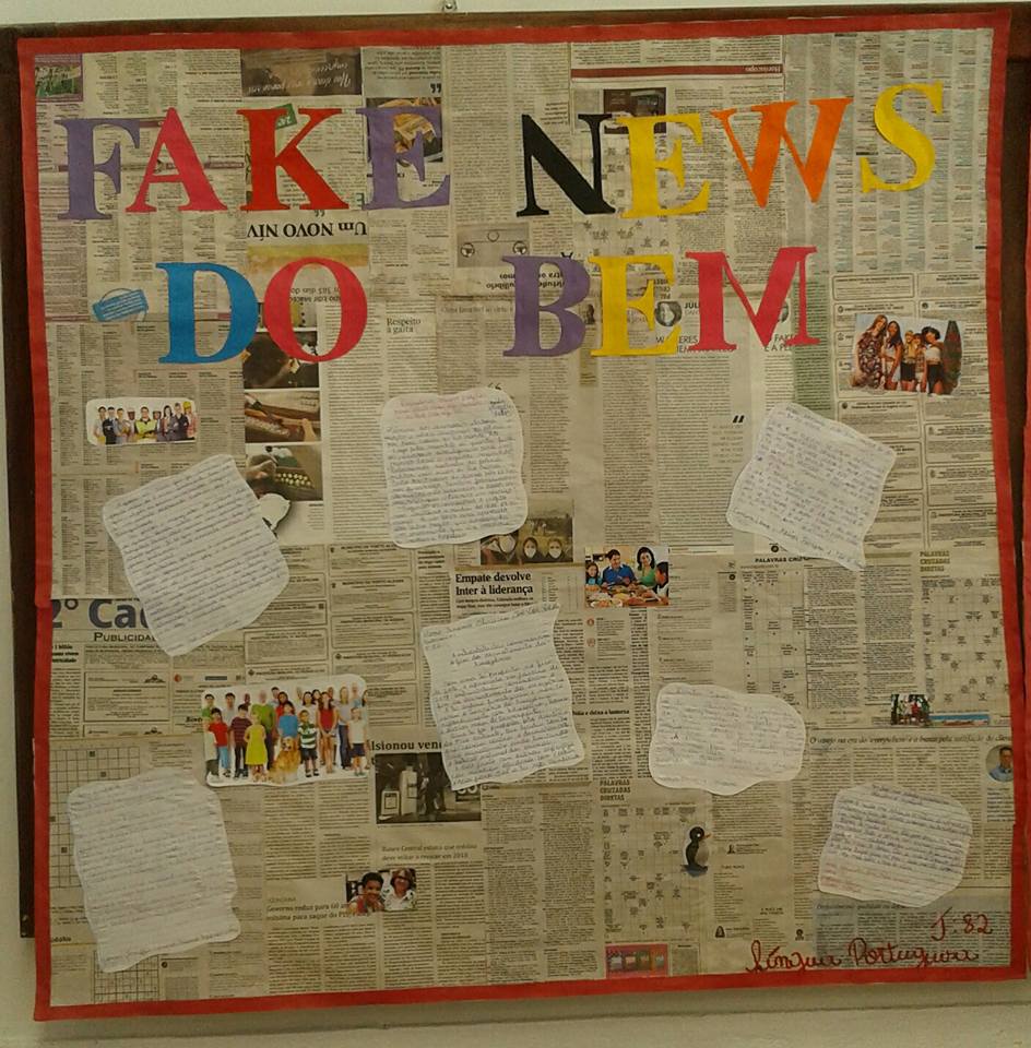 Para ilustrar as atividades os alunos construíram um painel intitulado “Fake News do Bem”, onde criaram notícias fakes com teor positivo e benéfico para a coletividade.