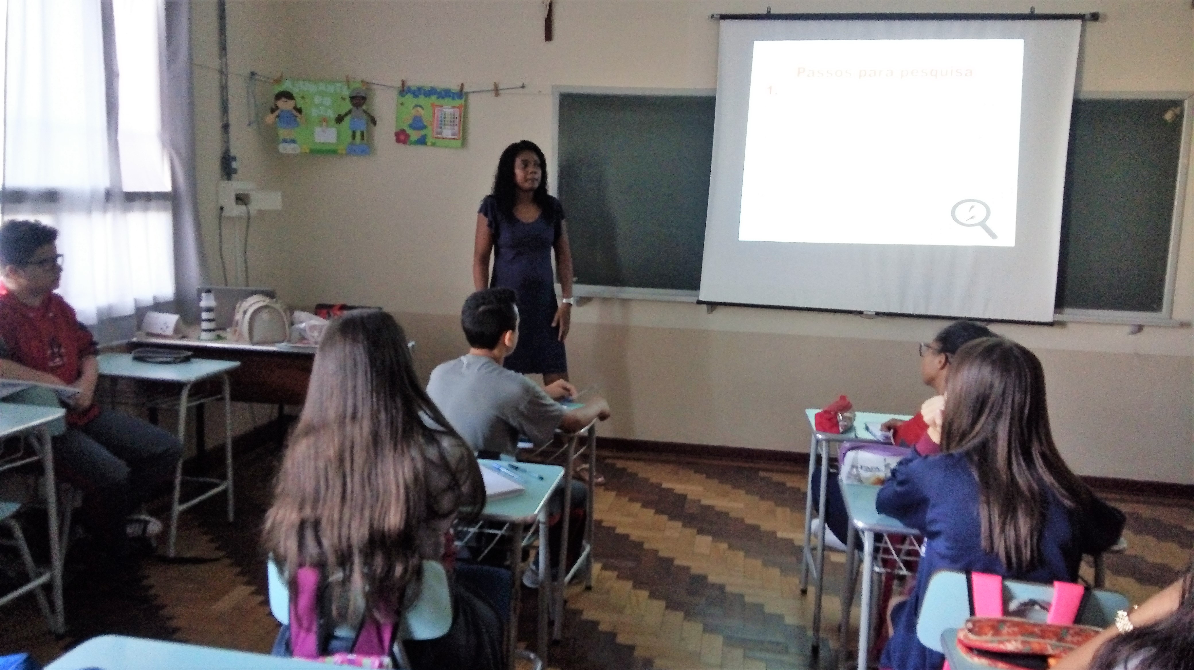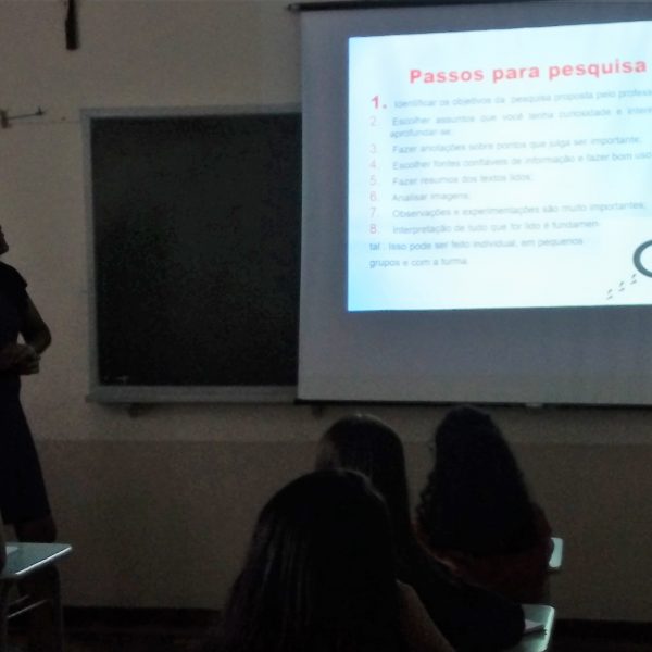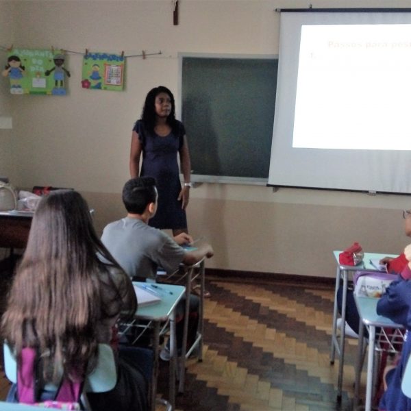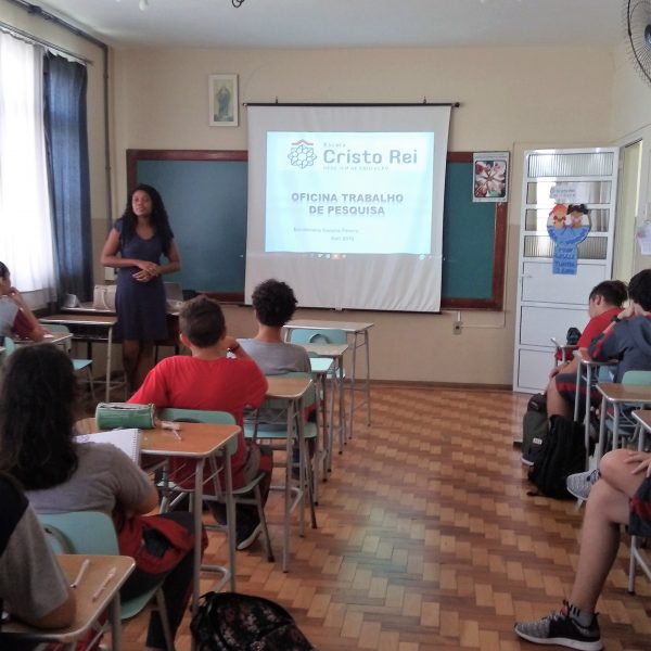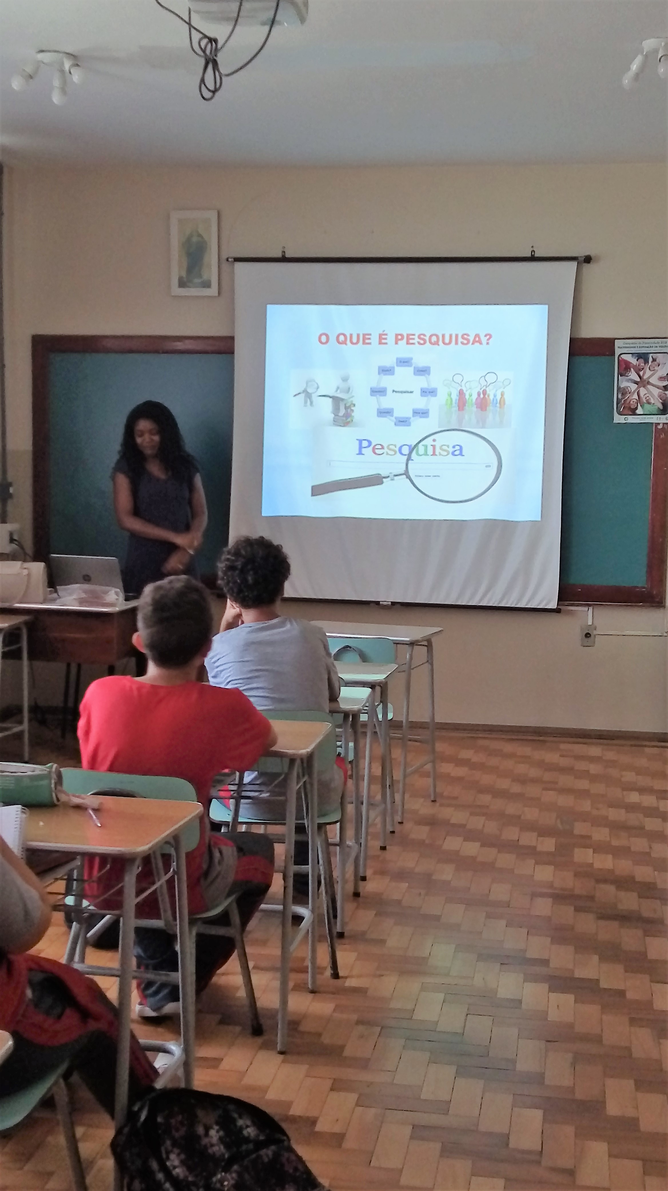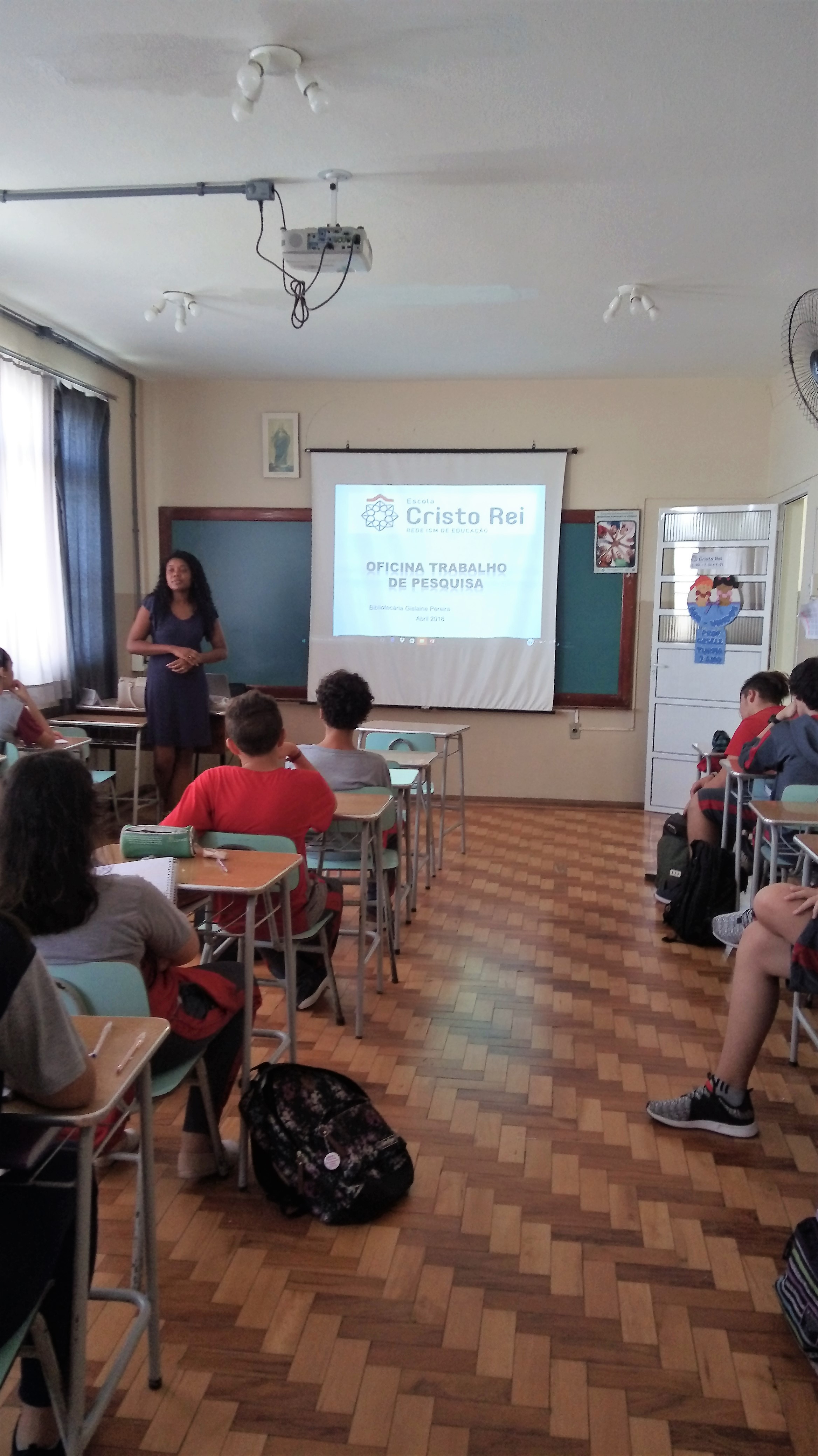 Realização da “Oficina trabalho de pesquisa” com alunos do 7º ano ao 9º ano. O objetivo de orientá-los na busca de informações em fontes confiáveis para realizar uma pesquisa de qualidade. E incentivar na utilização das normas técnicas da ABNT para melhor padronização dos trabalhos de pesquisa.