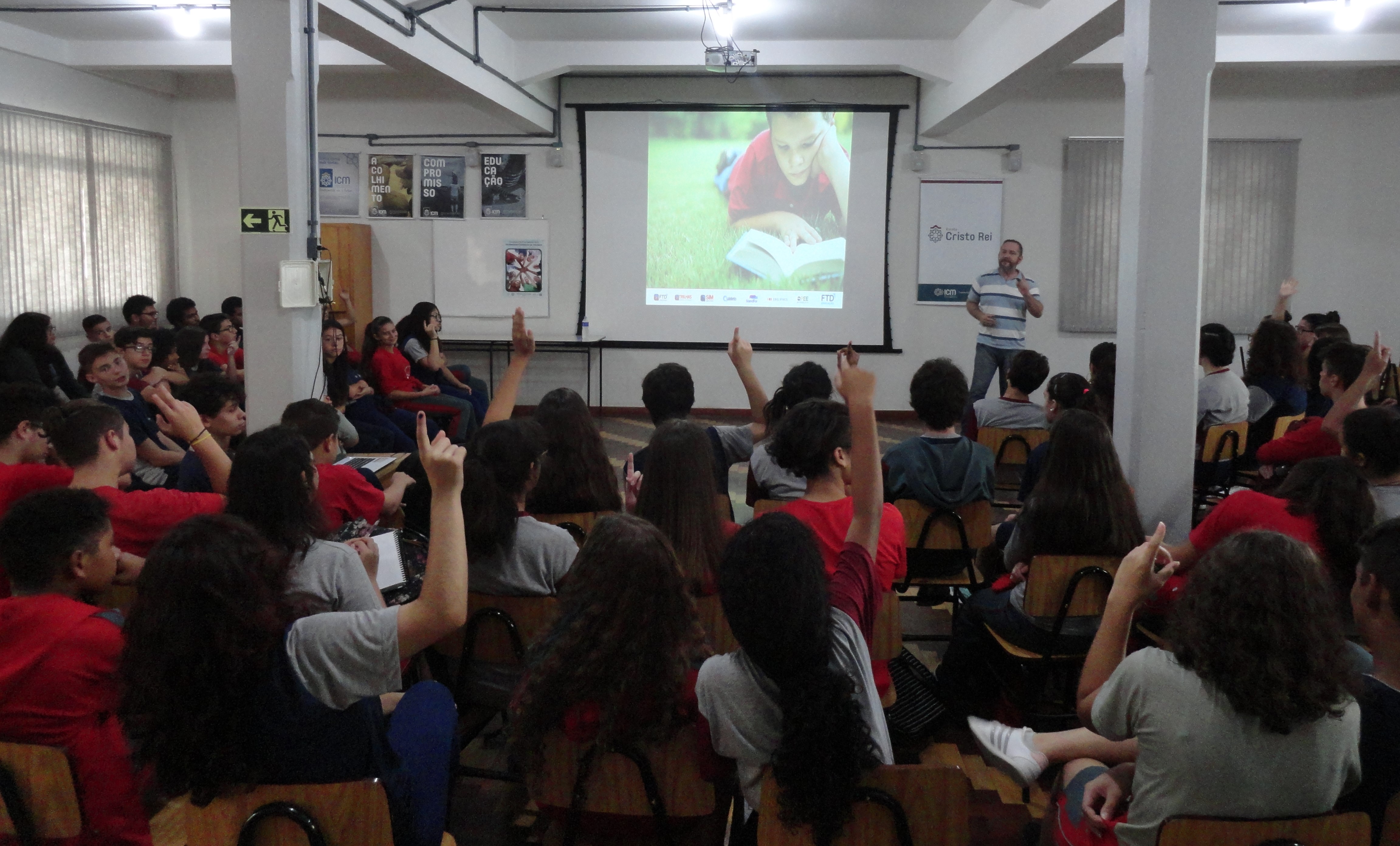 Hoje, a Rede ICM de Educação Escola Cristo Rei, recebeu a visita do consultor da FTD Paulo Lima, que realizou uma palestra com os alunos dos 8º e 9º anos sobre hábitos de Estudo. Foi um momento de sensibilizar os alunos quanto a necessidade de modificar suas atitudes em busca da organização e comprometimento com o seu aprendizado.