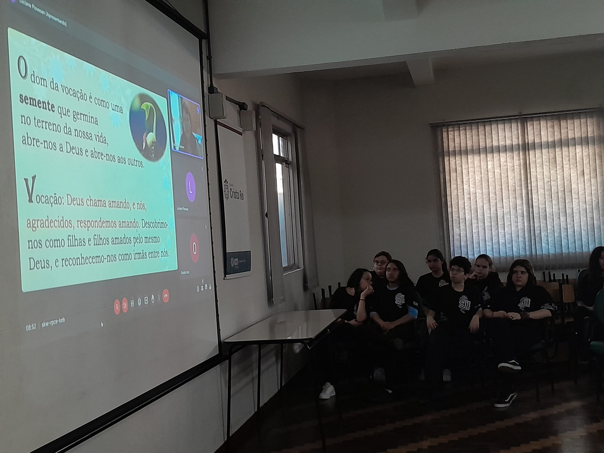 Dando início a um estudo de fundamental importância, Irmã Luciane Piovesan da Província Maria Mãe de Deus, nas aulas de Formação Extra curricular, na modalidade online, trabalhou o tema: A origem e o sentido da vocação, discernimento, no escolha profissional, os desafios da modernidade e o compromisso cristão no futuro de suas vidas.