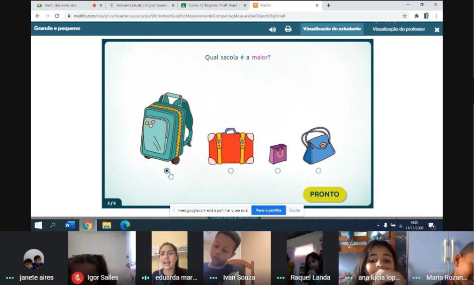 Com uma proposta lúdica a Rede ICM proporcionou aos estudantes duas novas plataformas: Matific e Elefante Letrado. As turmas do 1º ano se divertiram fazendo uso das plataformas no encontro via meet, momento esse recheado de aprendizados.